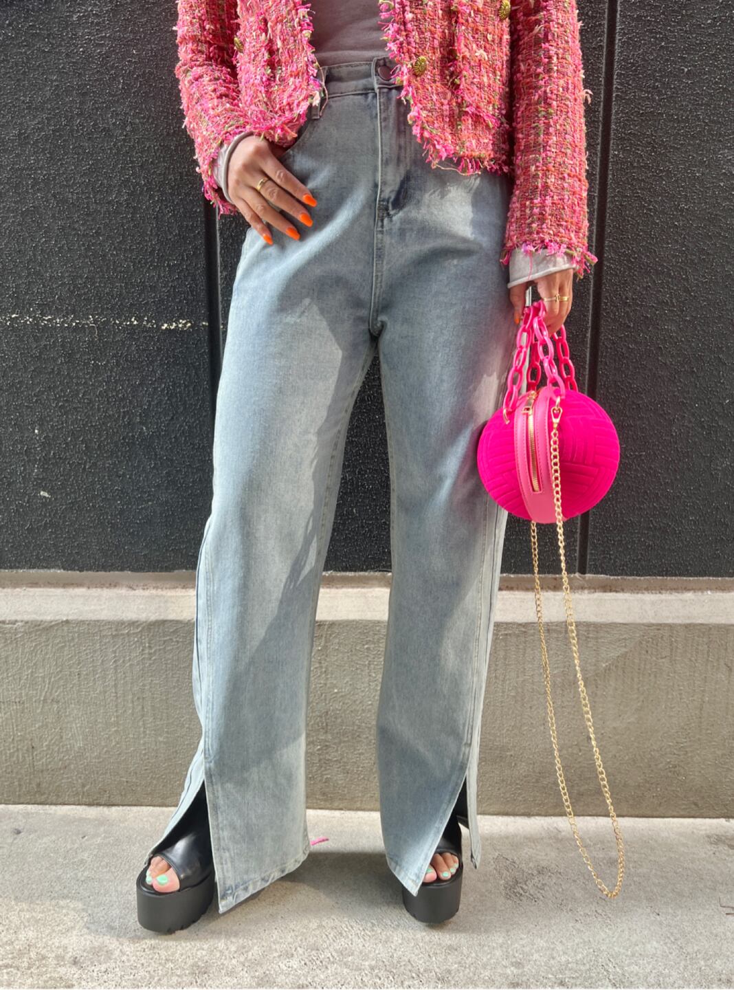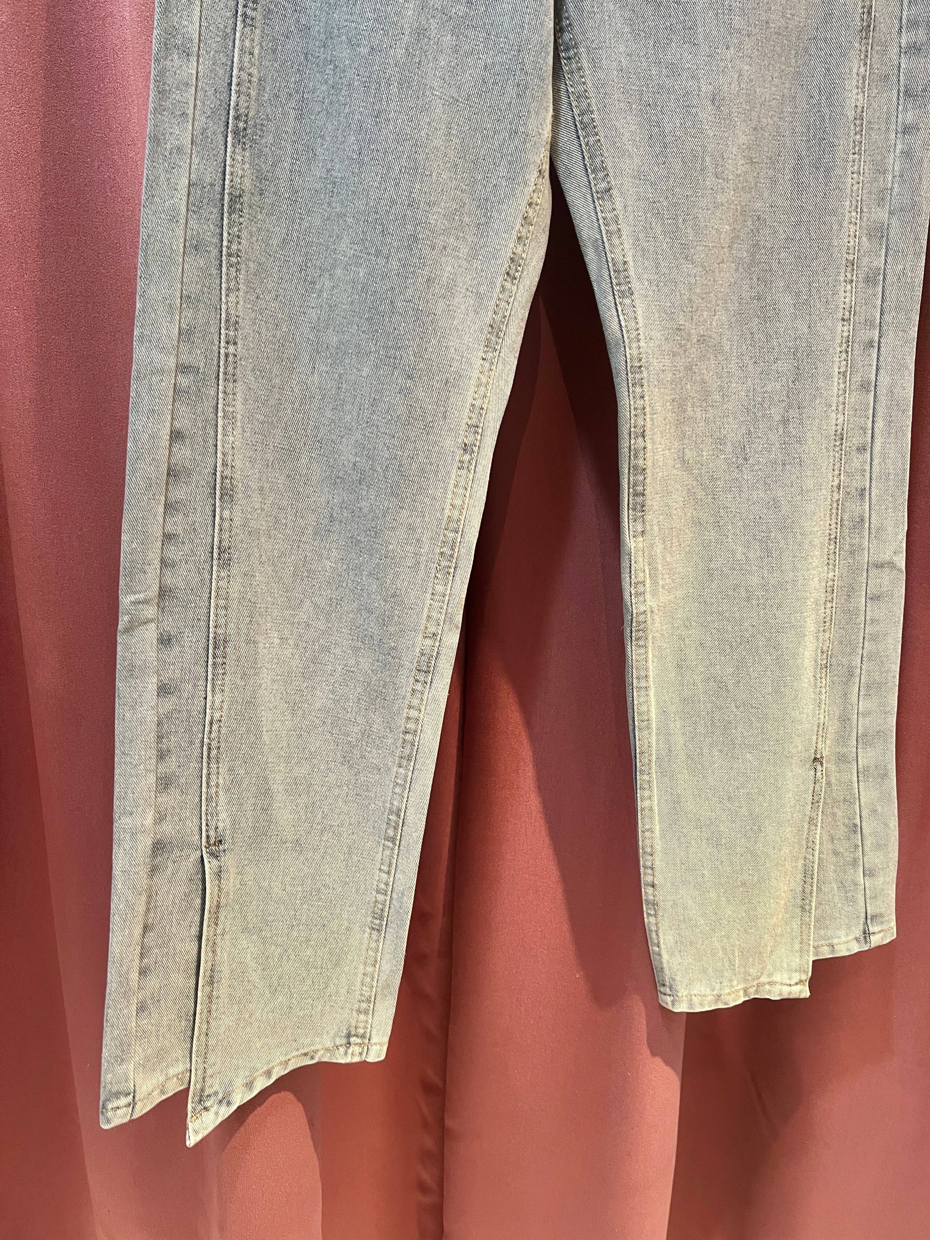 front slit straight denim pants デニム パンツ ストレート スリット ライトブルー カジュアル