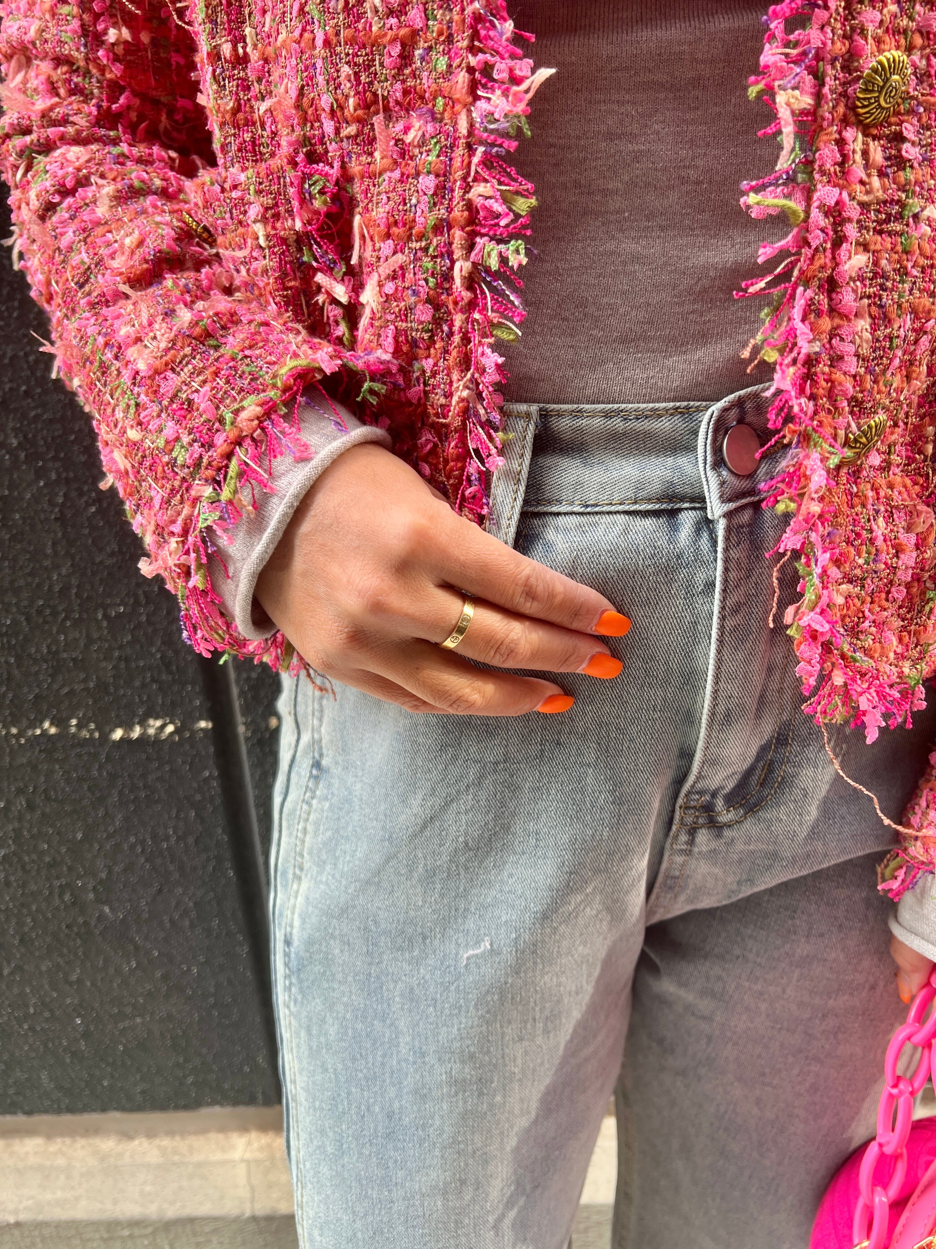 ライトブルーのデニムパンツ。