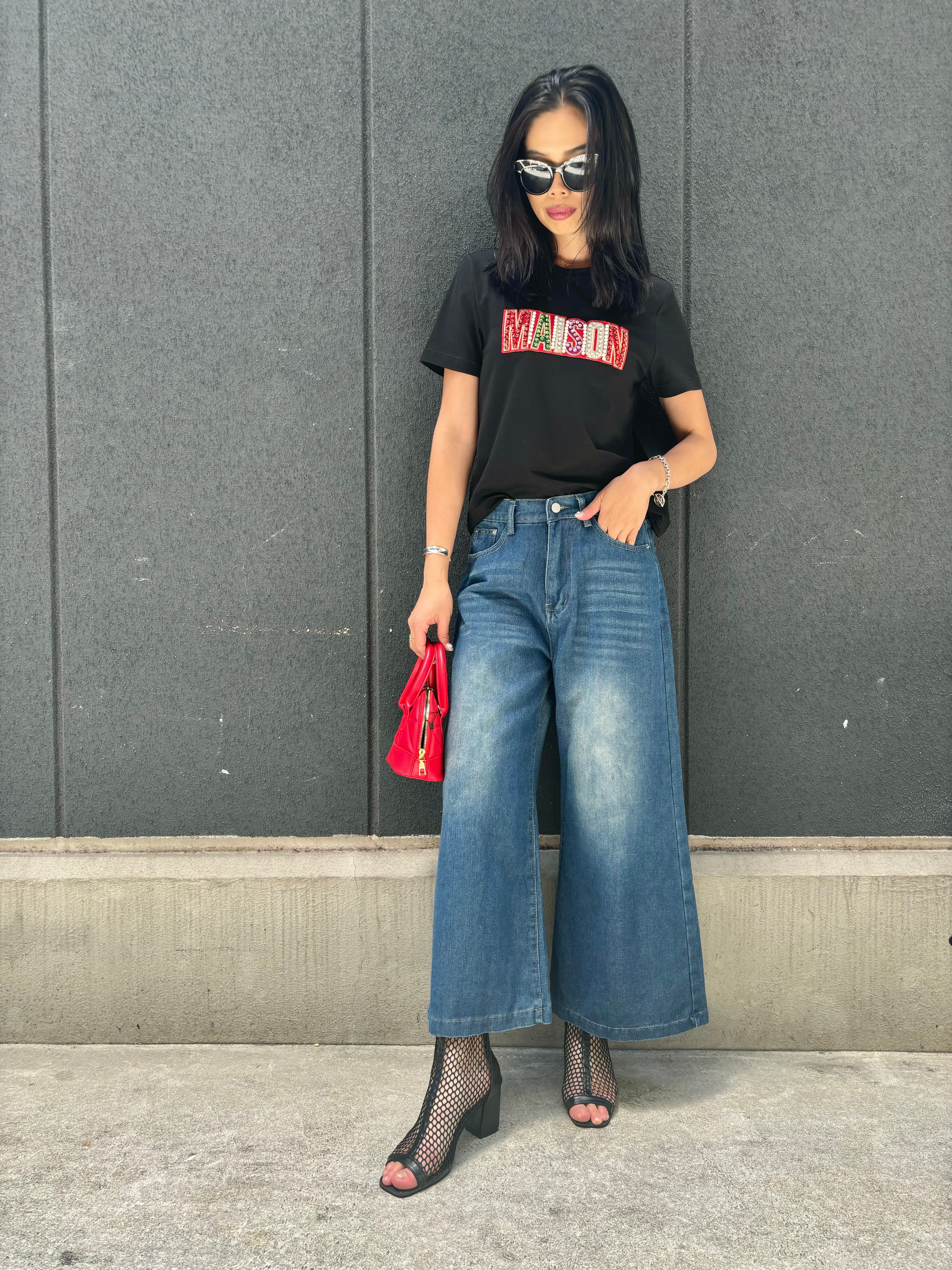 このボリュームワイドデニムパンツは、日本人女性の体型に合わせて作られています。