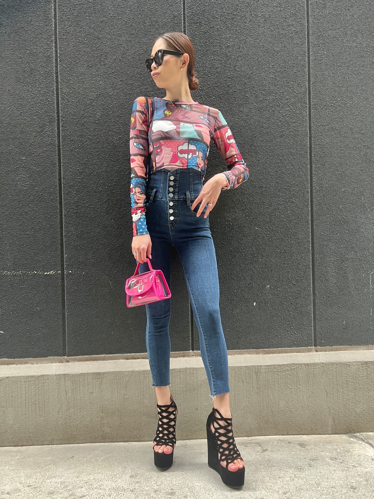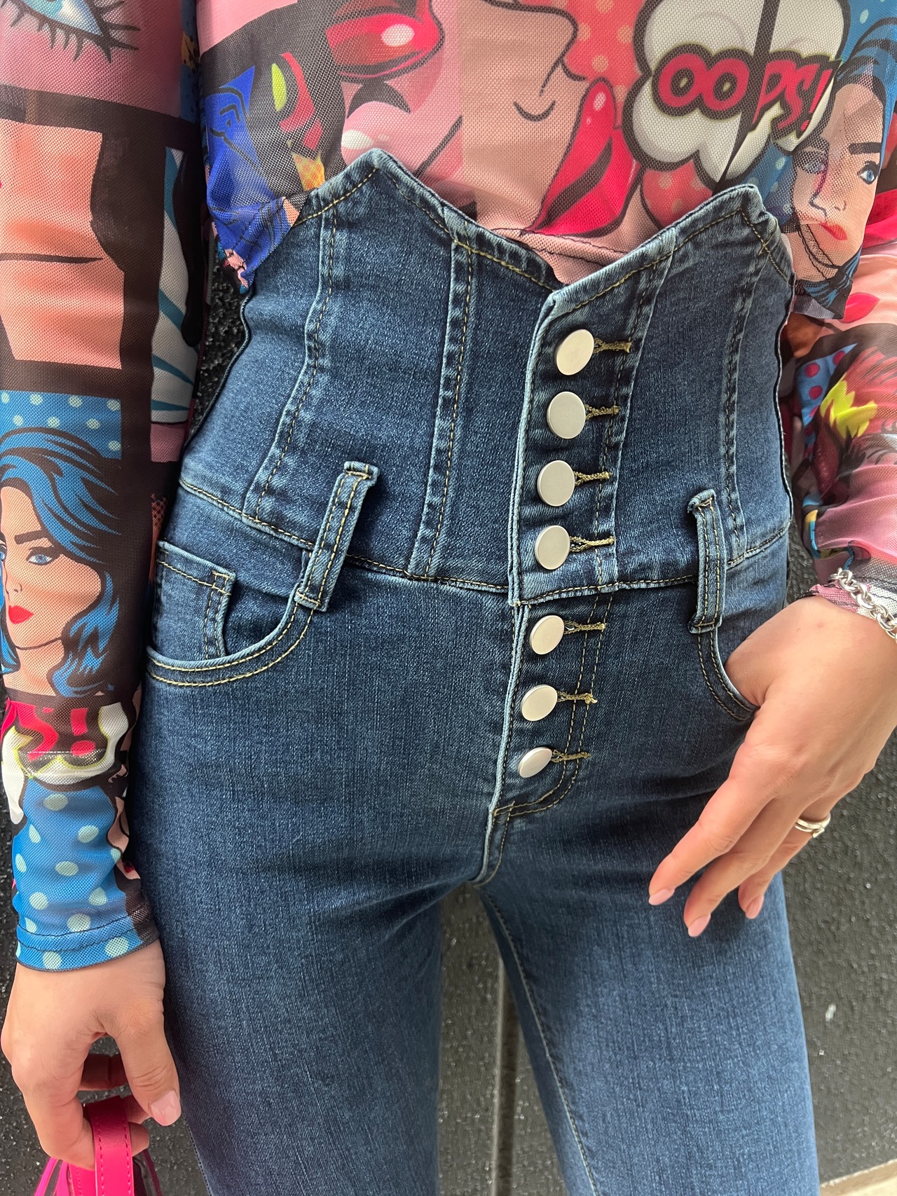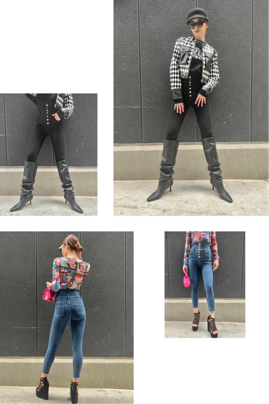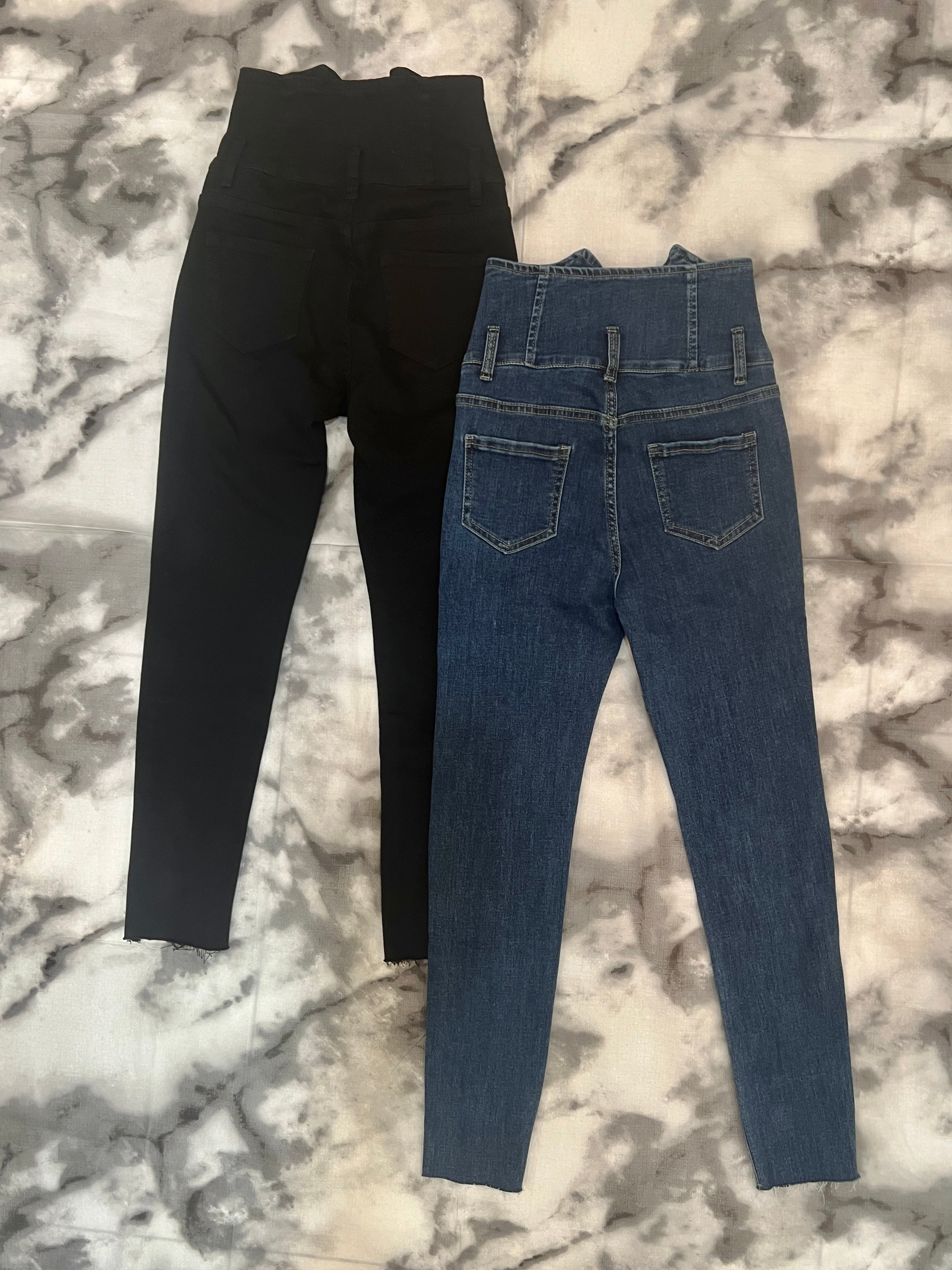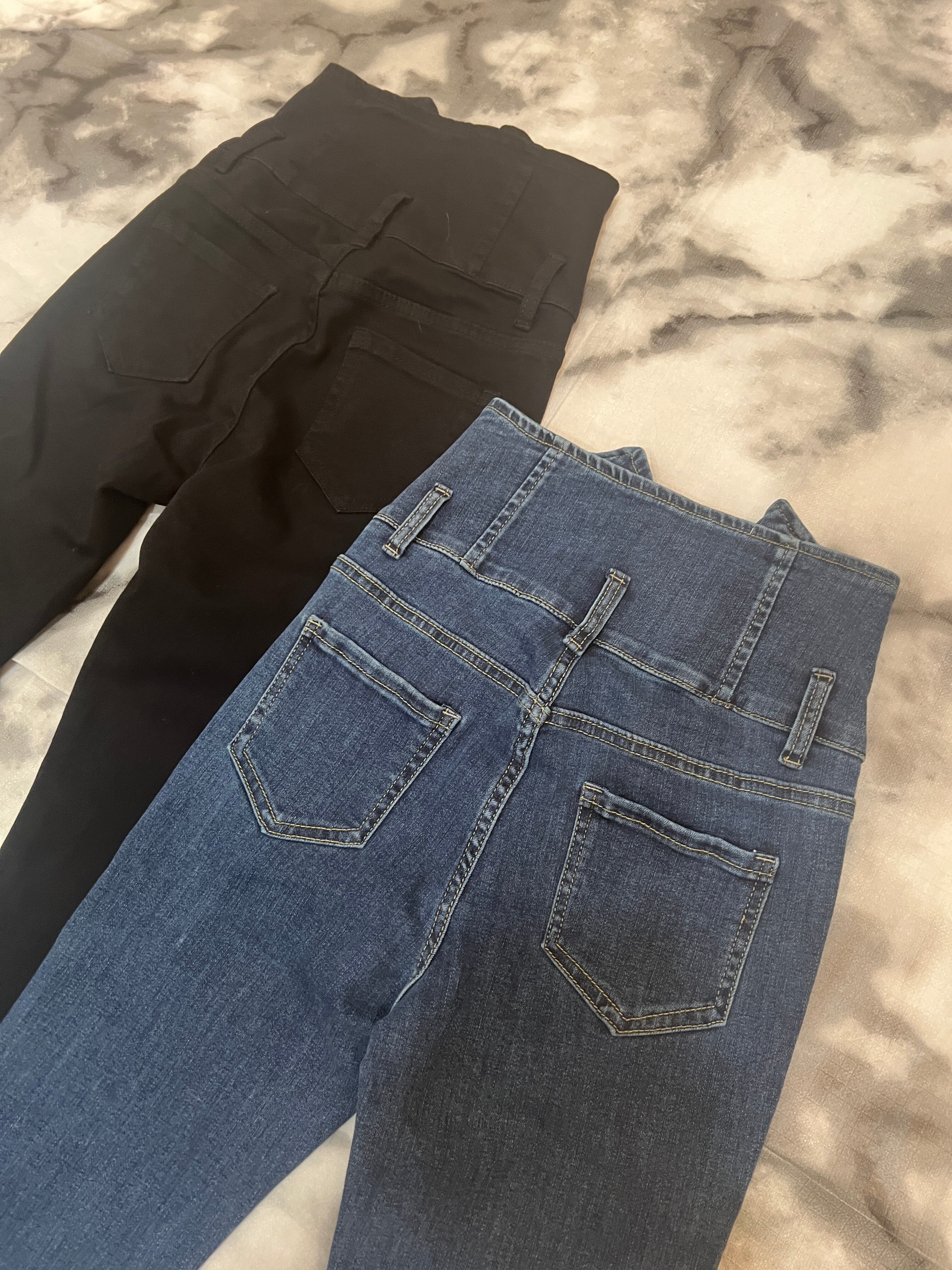 high waist stretch denim skinny pants デニム パンツ ハイウエスト ボタン スキニー 細見え 脚長効果 ストレッチ