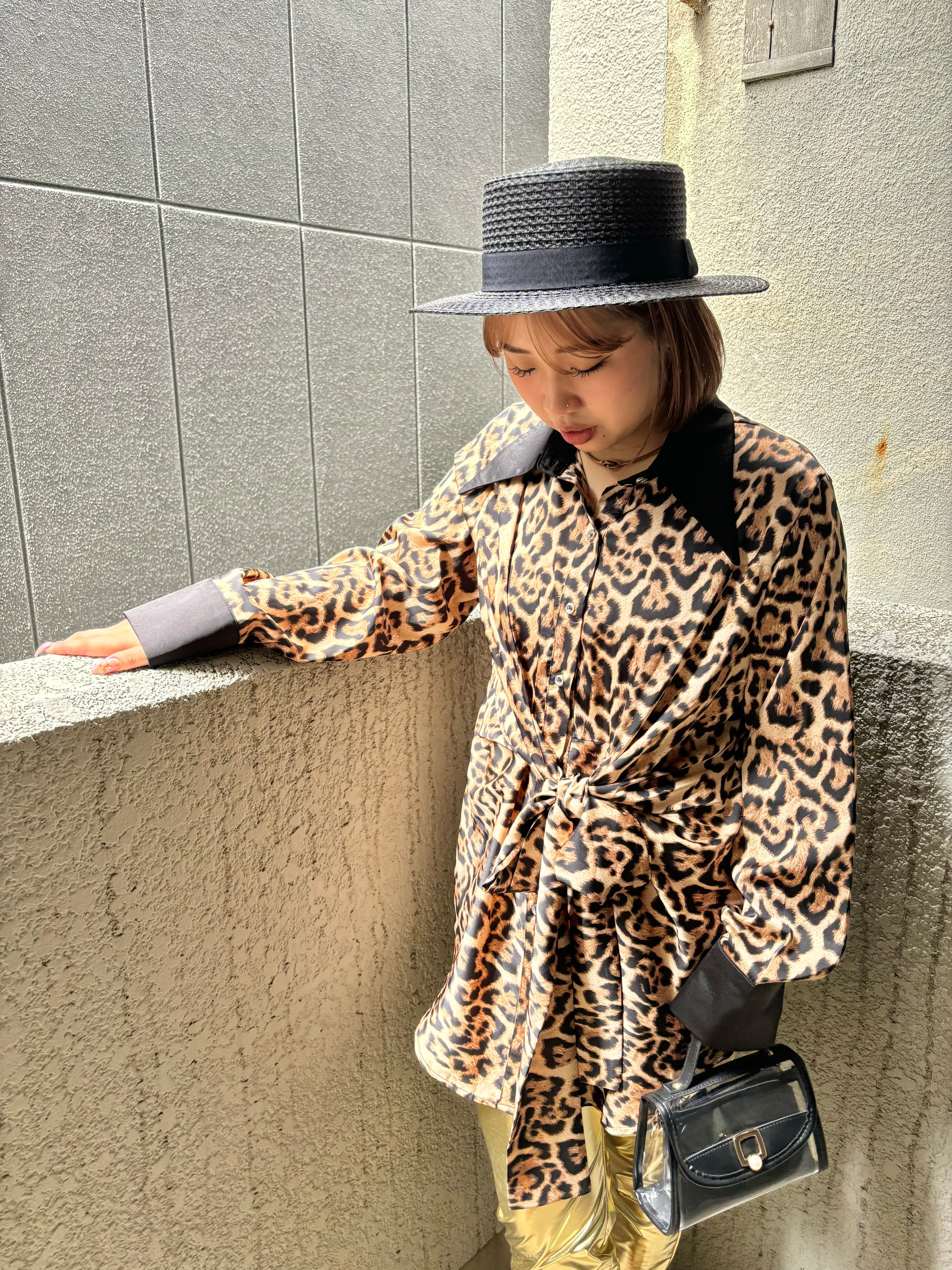 satin print front design shirt シャツ サテン 前結び バイカラー