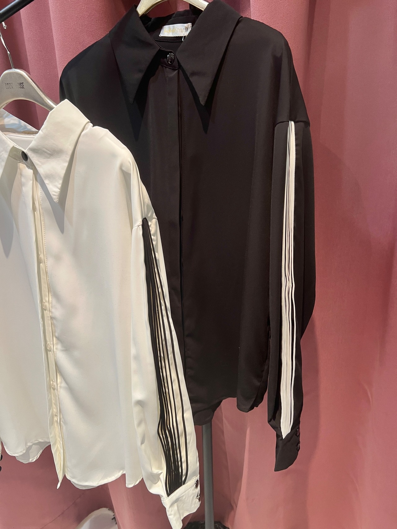 design sleeve shirt シャツ デザインシャツ 白黒 バイカラー デザインスリーブ