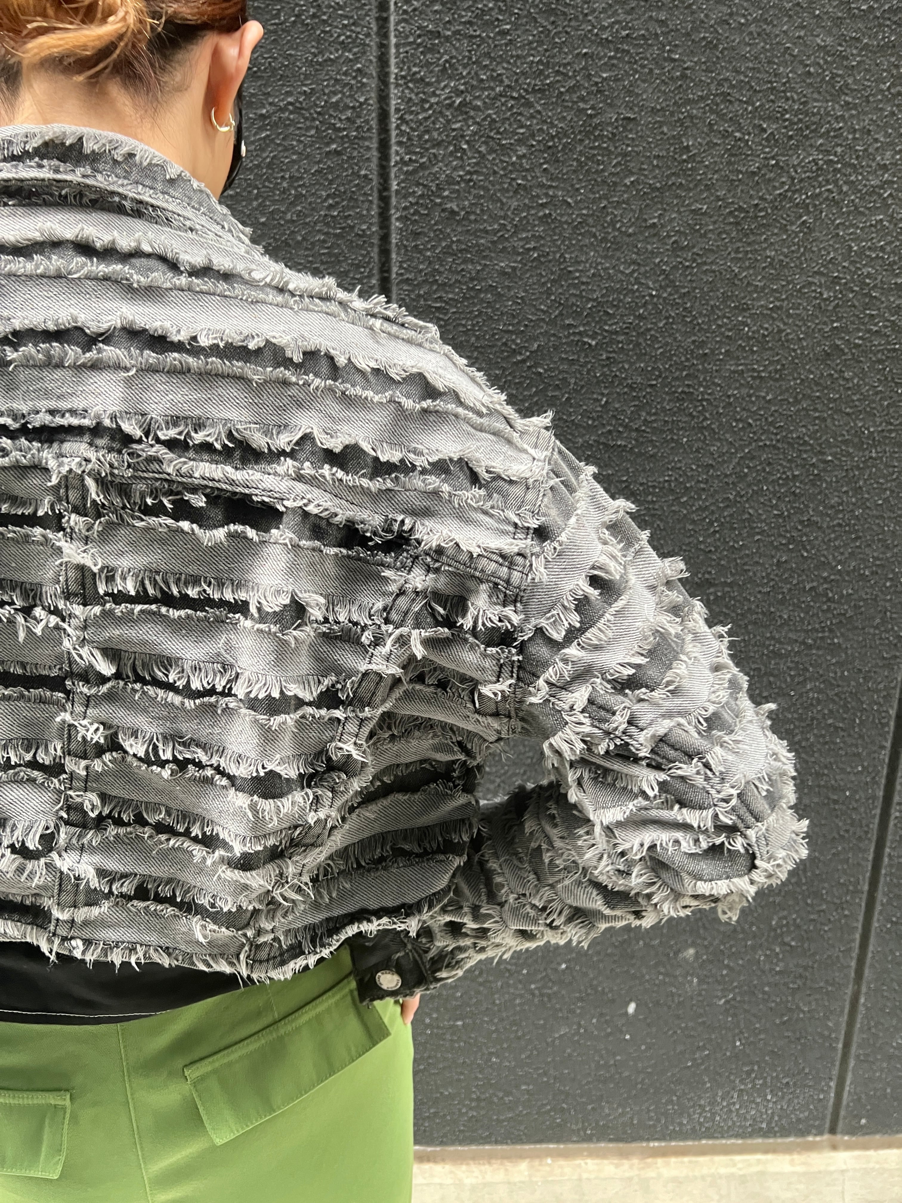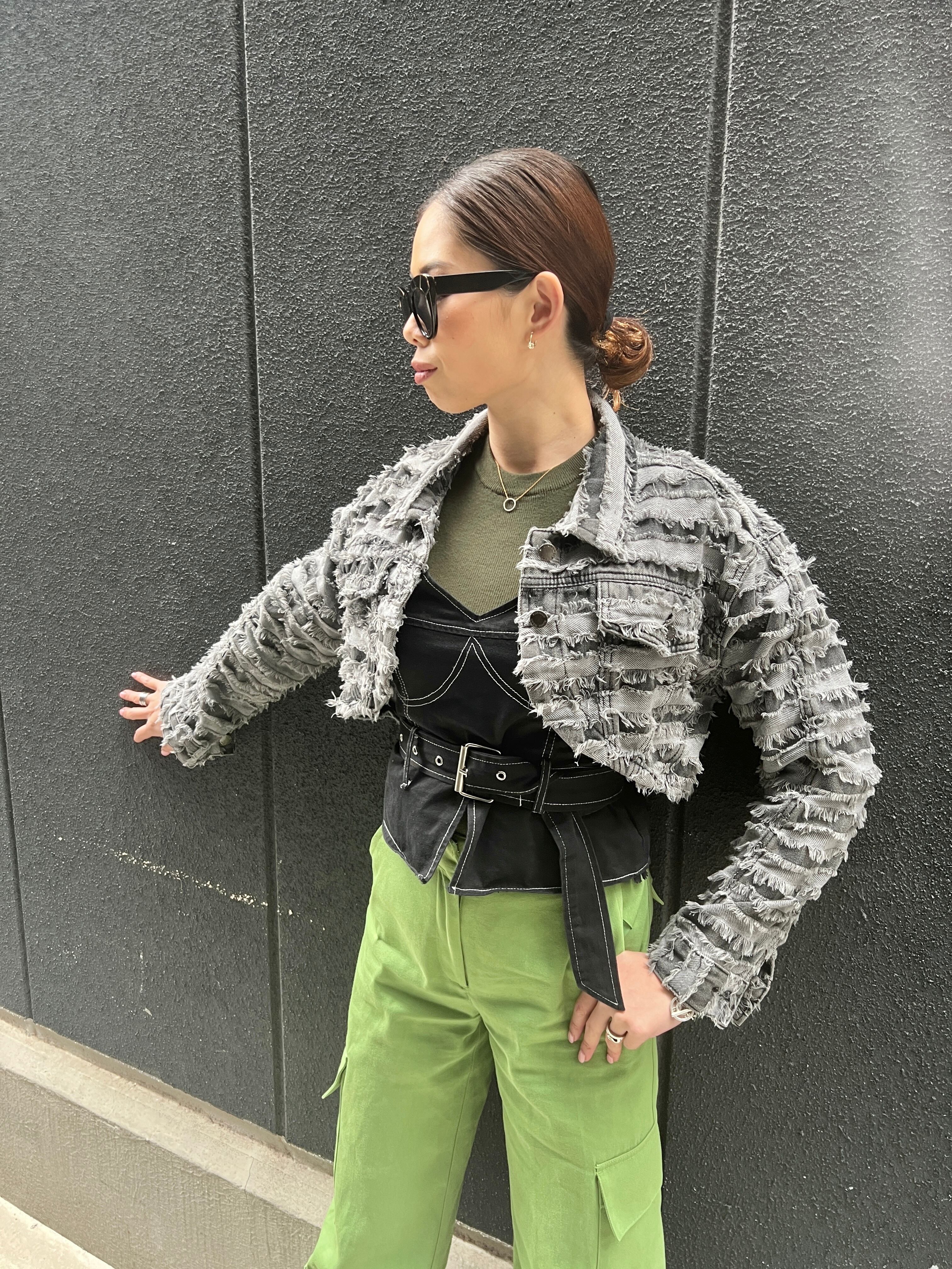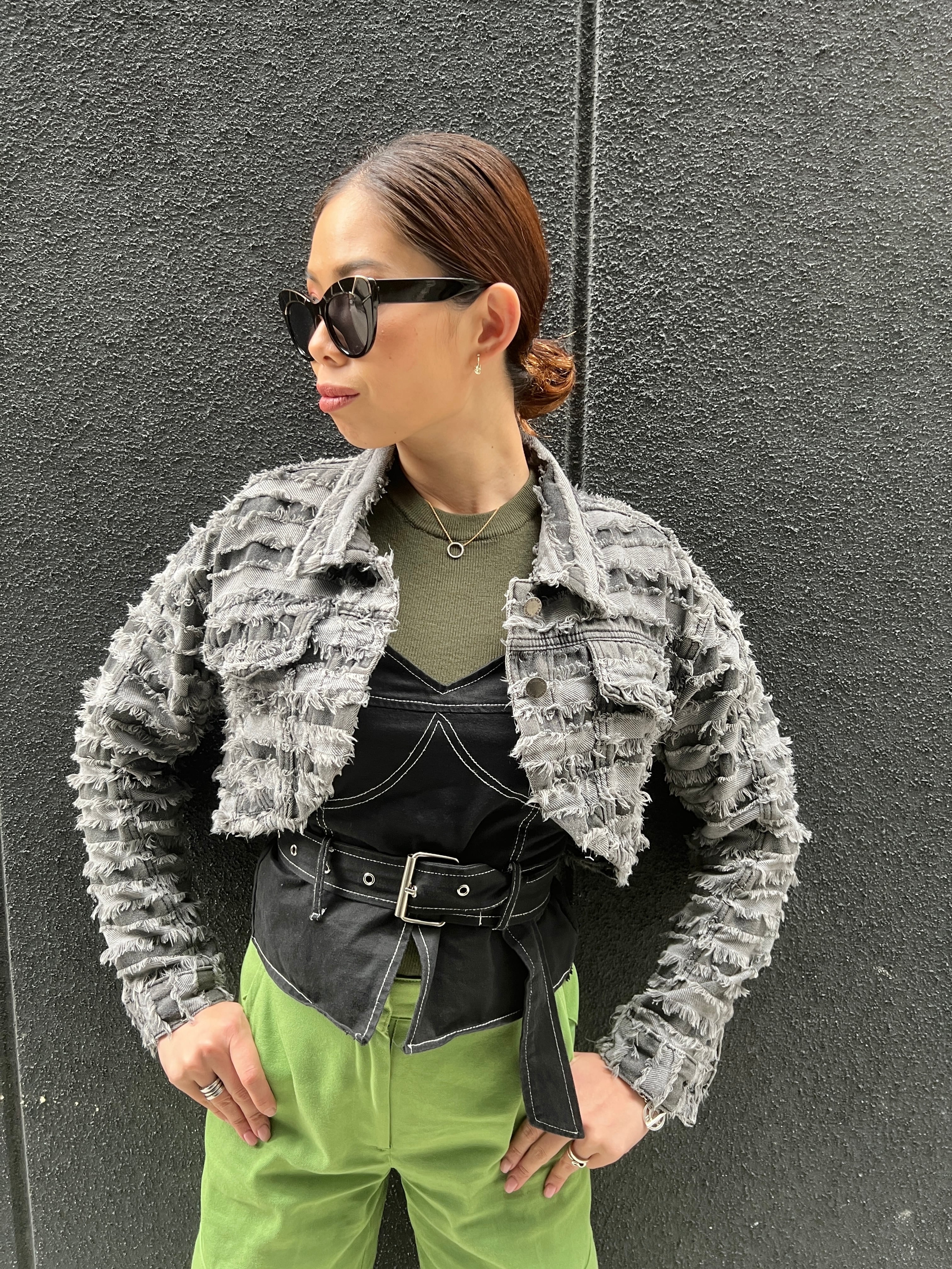 border fringe short denim jacket デニム ジャケット ボーダー フリンジ ショート丈
