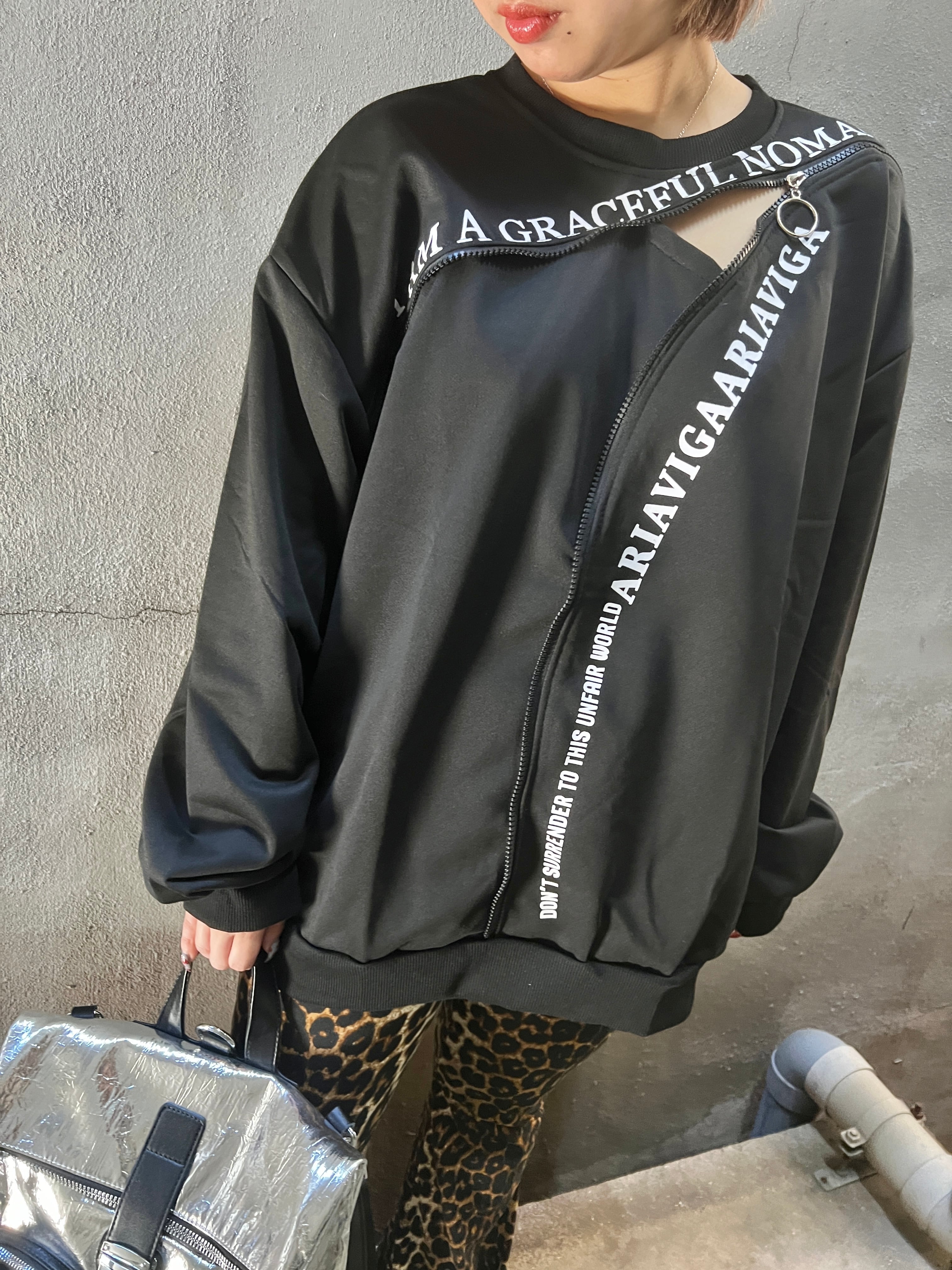 2way zip text print design pullover tops トップス プルオーバー ジップ テキスト プリント オーバーサイズ カジュアル