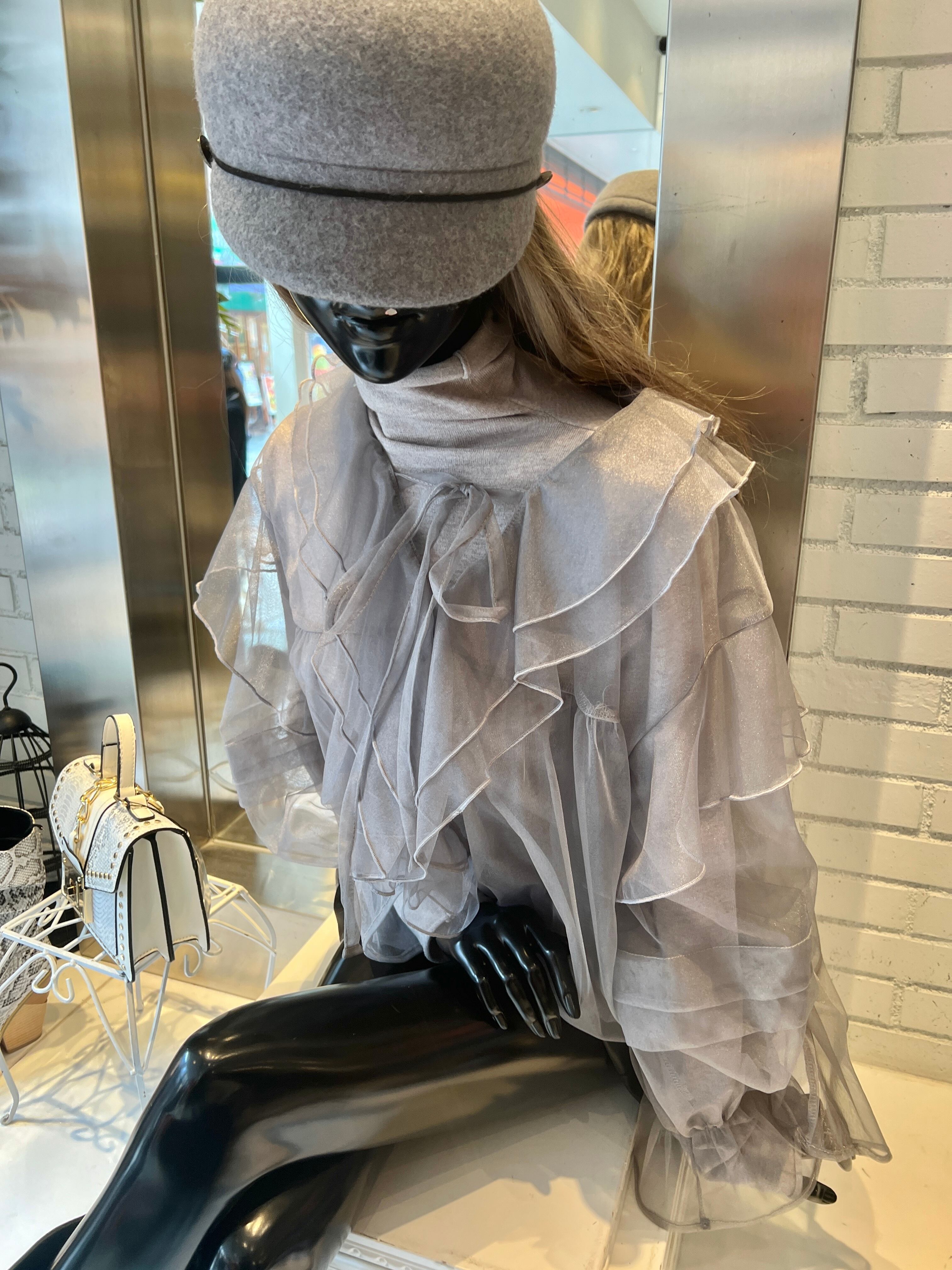 shiny organdy frill design tops トップス デザイントップス チュール フリル リボン 重ね着 レイヤード