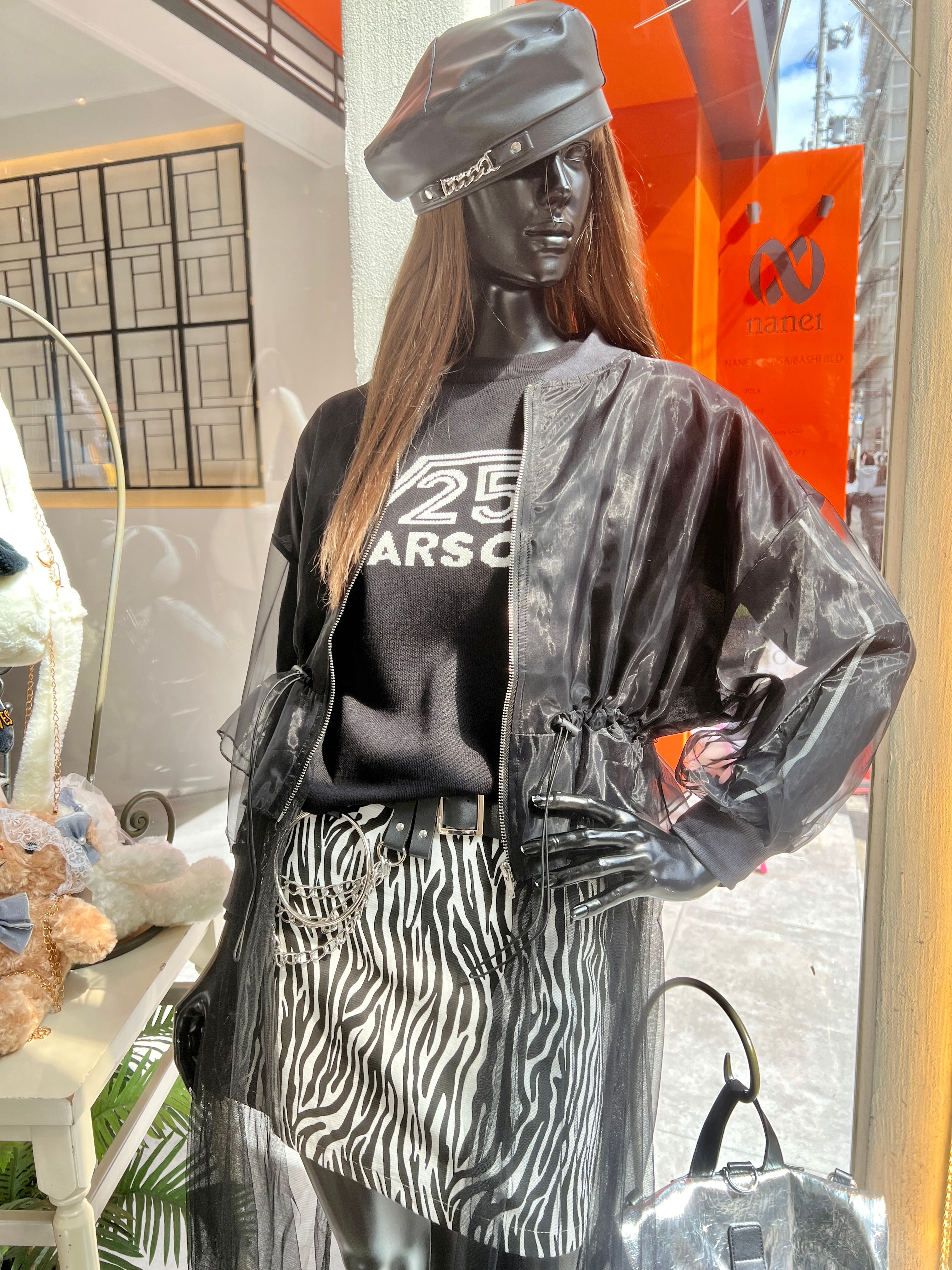 オーガンジー素材のブルゾンにチュールがドッキングしたデザイン!!