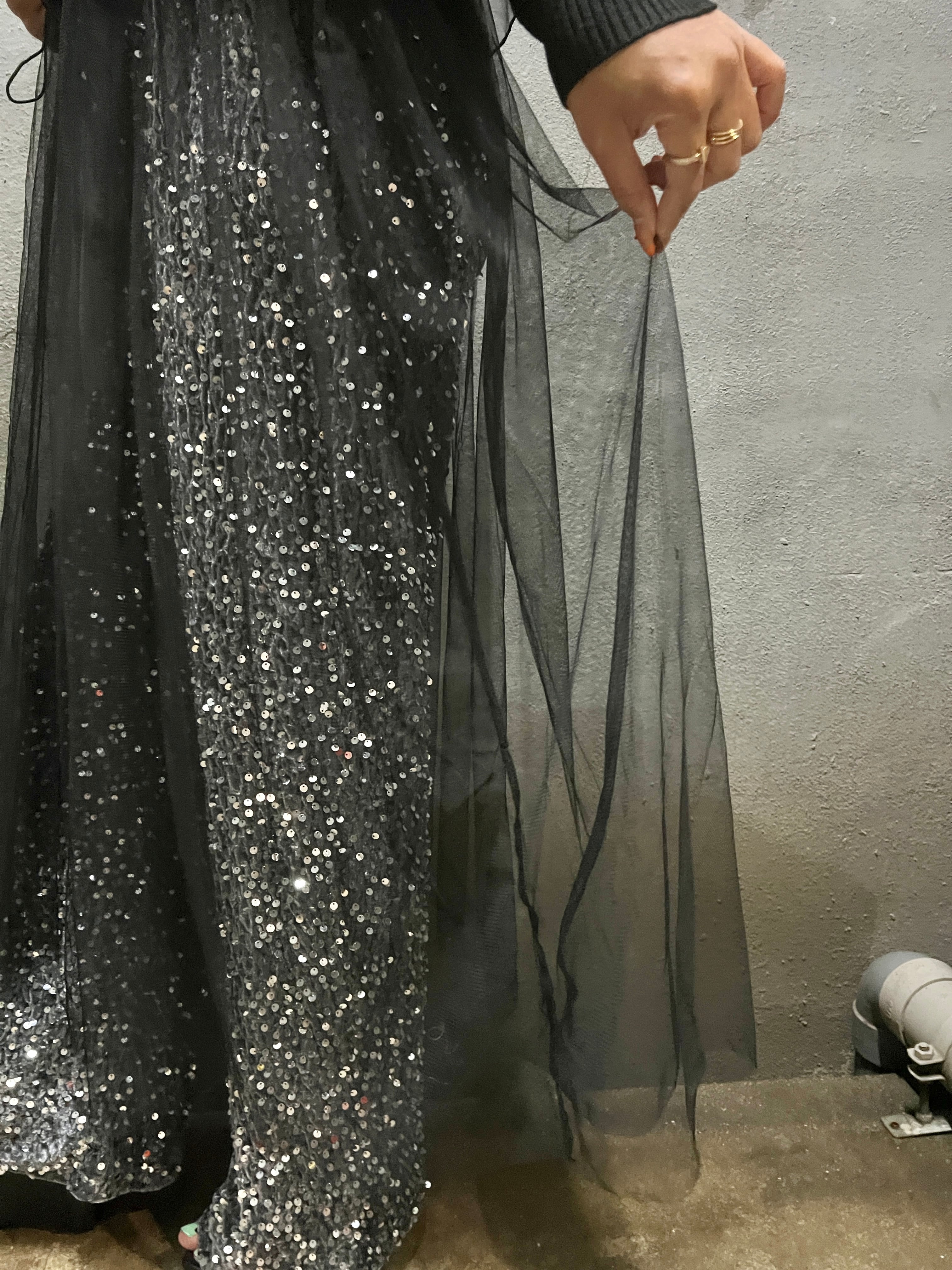チュールの長さがあるので、パンツやスカート、ワンピースなど、
