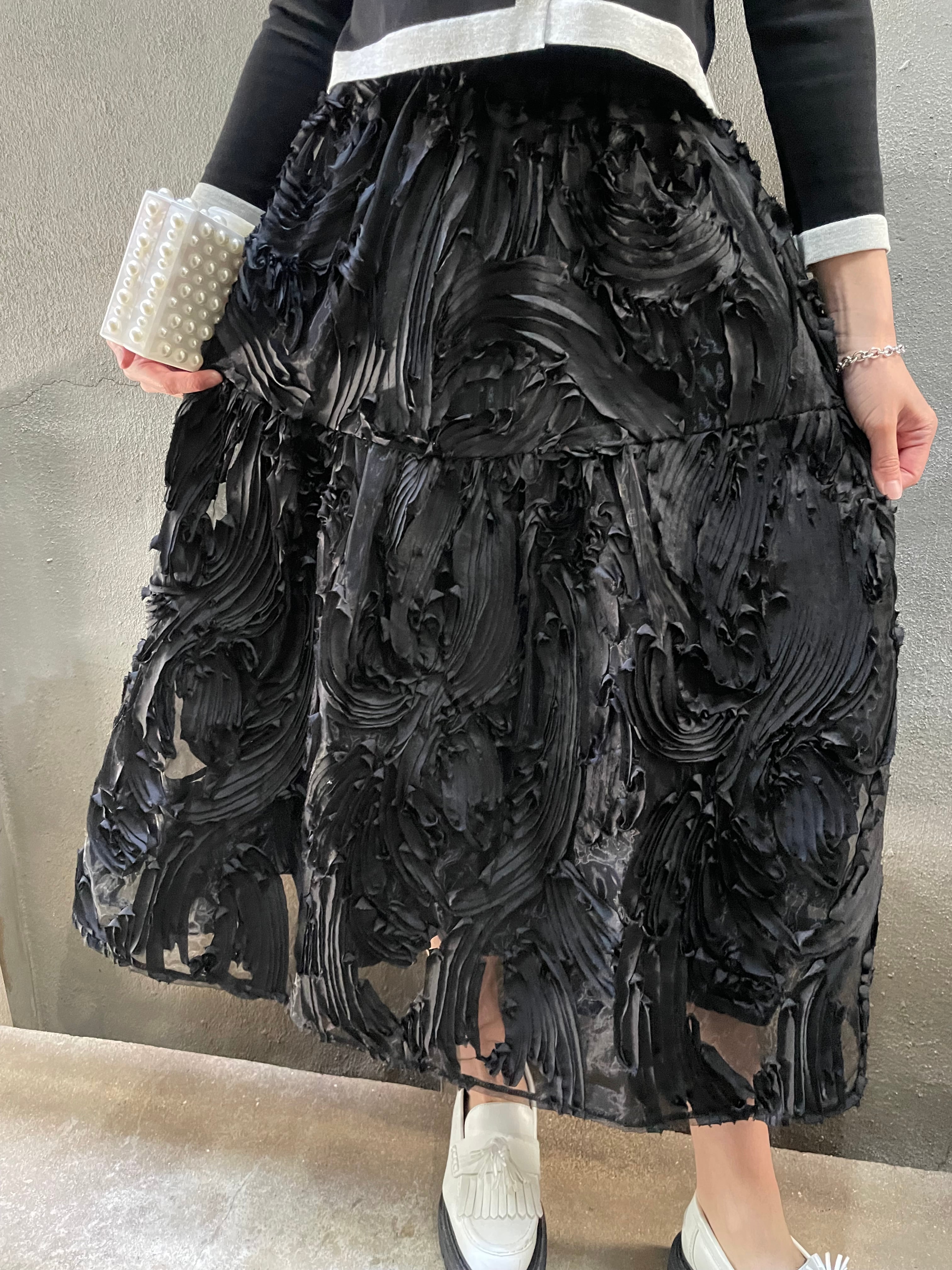 3D organdy flare design skirt スカート デザインスカート ゴムウエスト 立体的 オーガンジー フレアー