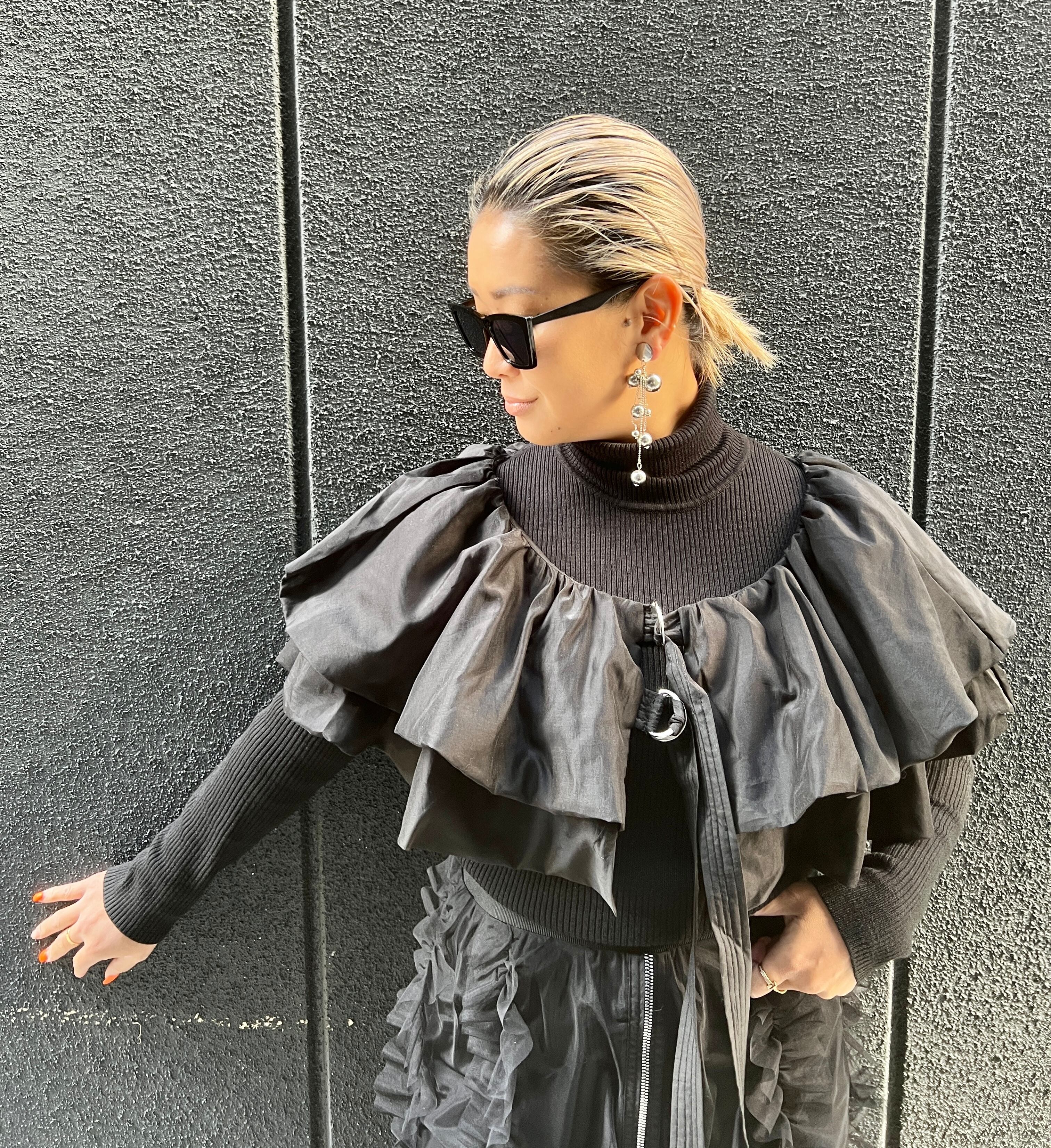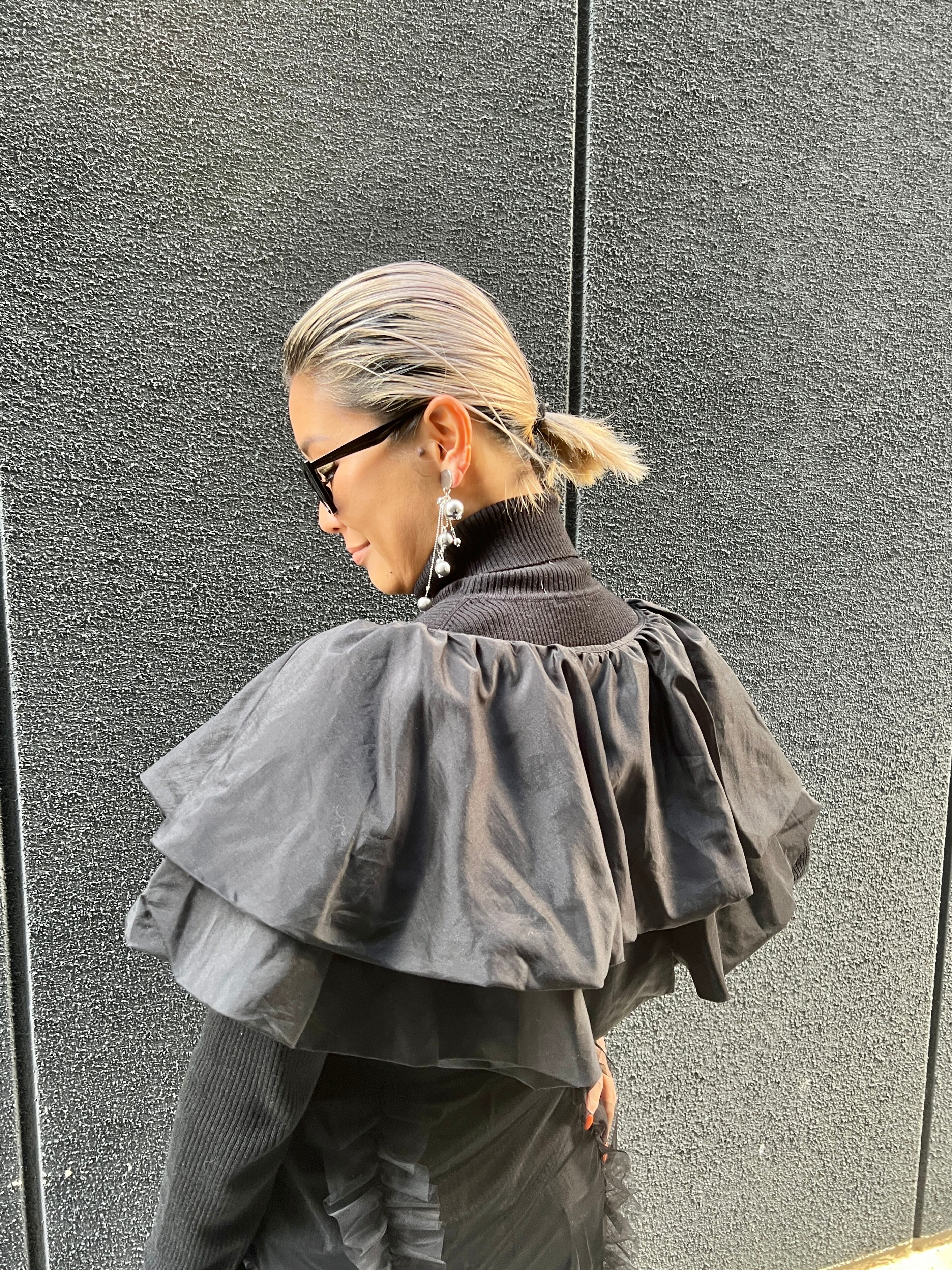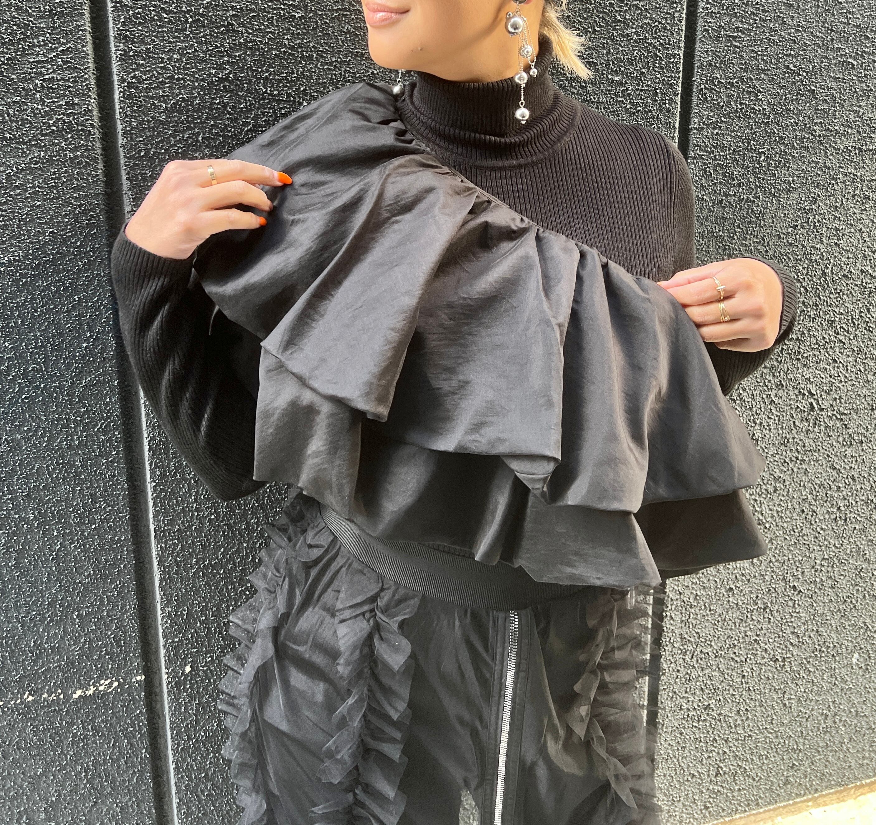 frill design tops トップス スカート ワンショルダー 多機能 重ね着 レイヤード フリル ブラック 黒