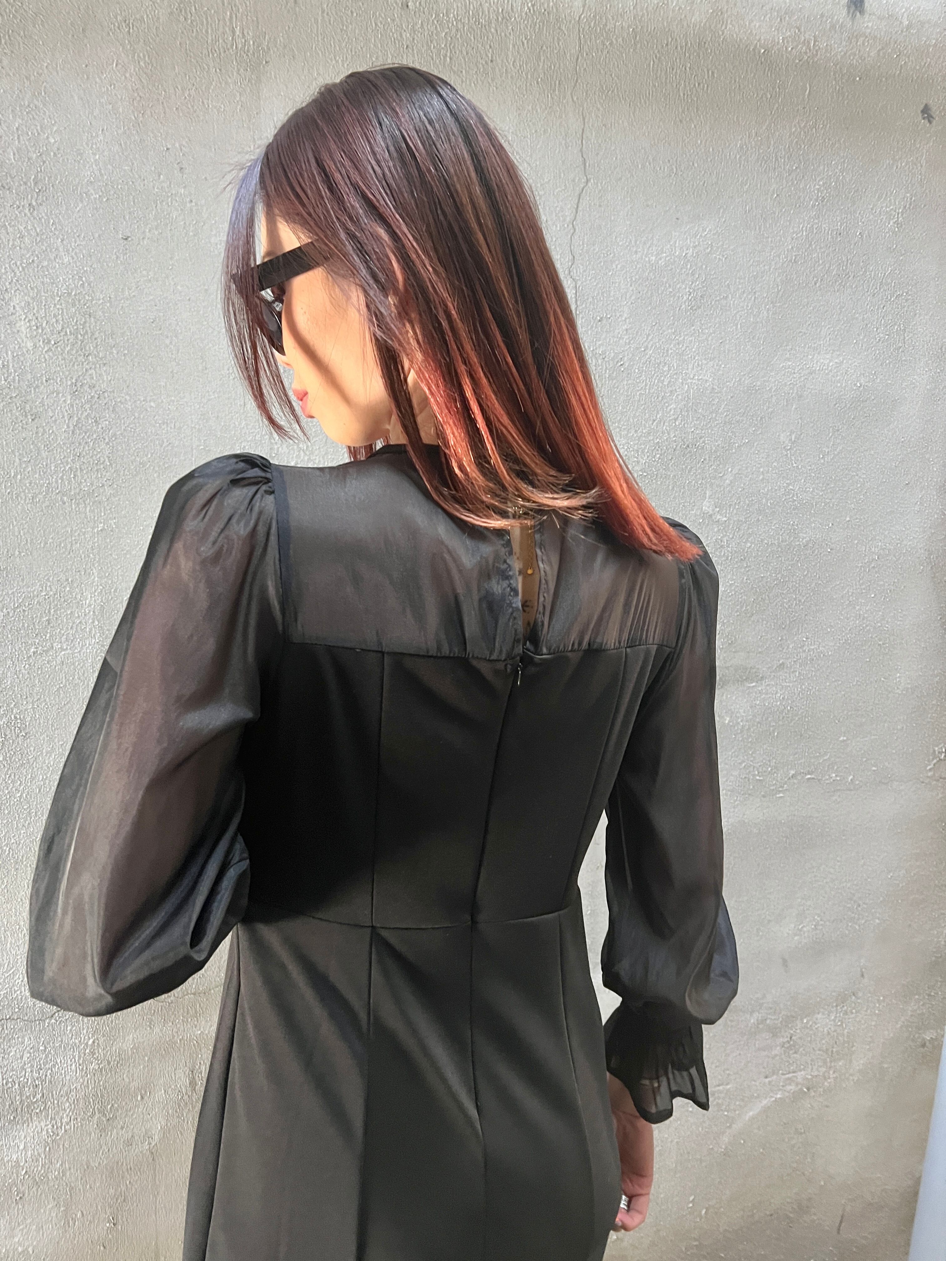 シアーで透け感のあるオーガンジー素材が上品な印象を演出し、女性らしいメリハリのあるシルエットが魅力です☆