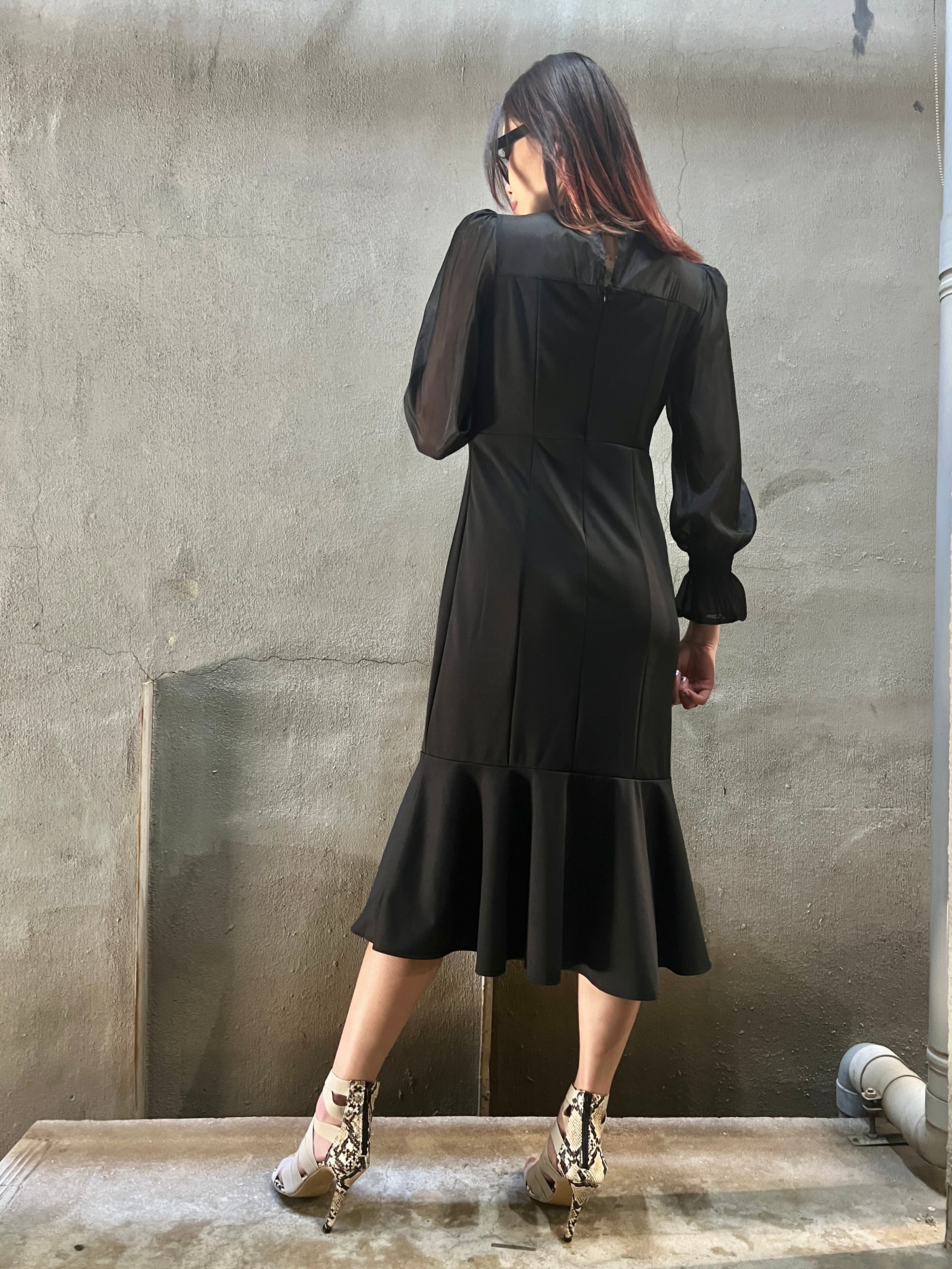 organdy change mermaid silhouette one-piece ワンピース ワンピ ドレス オーガンジー シアー 結婚式 二次会 パーティー