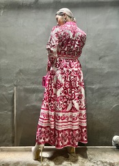 優雅な花柄が女性らしい雰囲気を演出し、ロング丈でスタイルアップ効果も抜群!