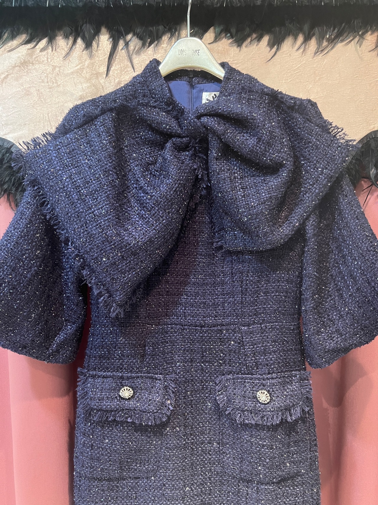 大きなリボンがアクセントのツィード生地のワンピースです!!
