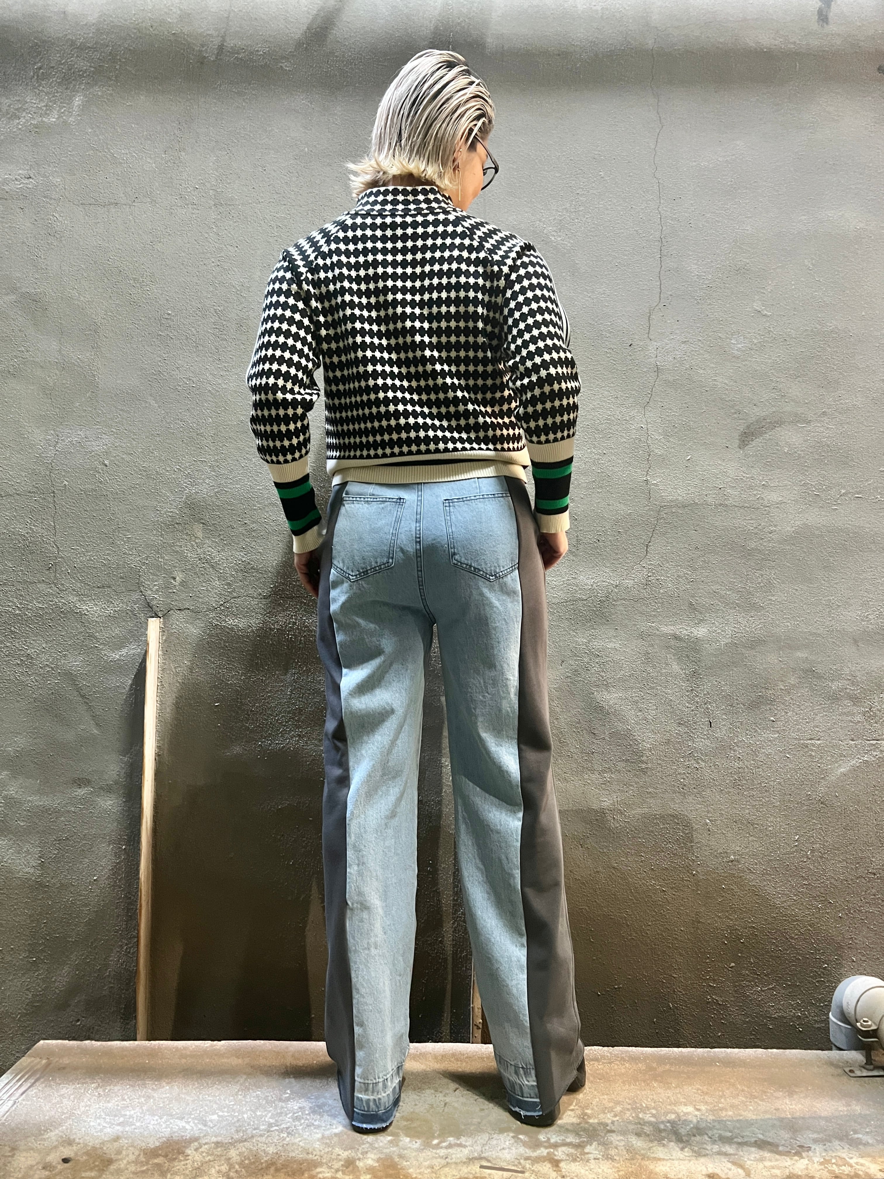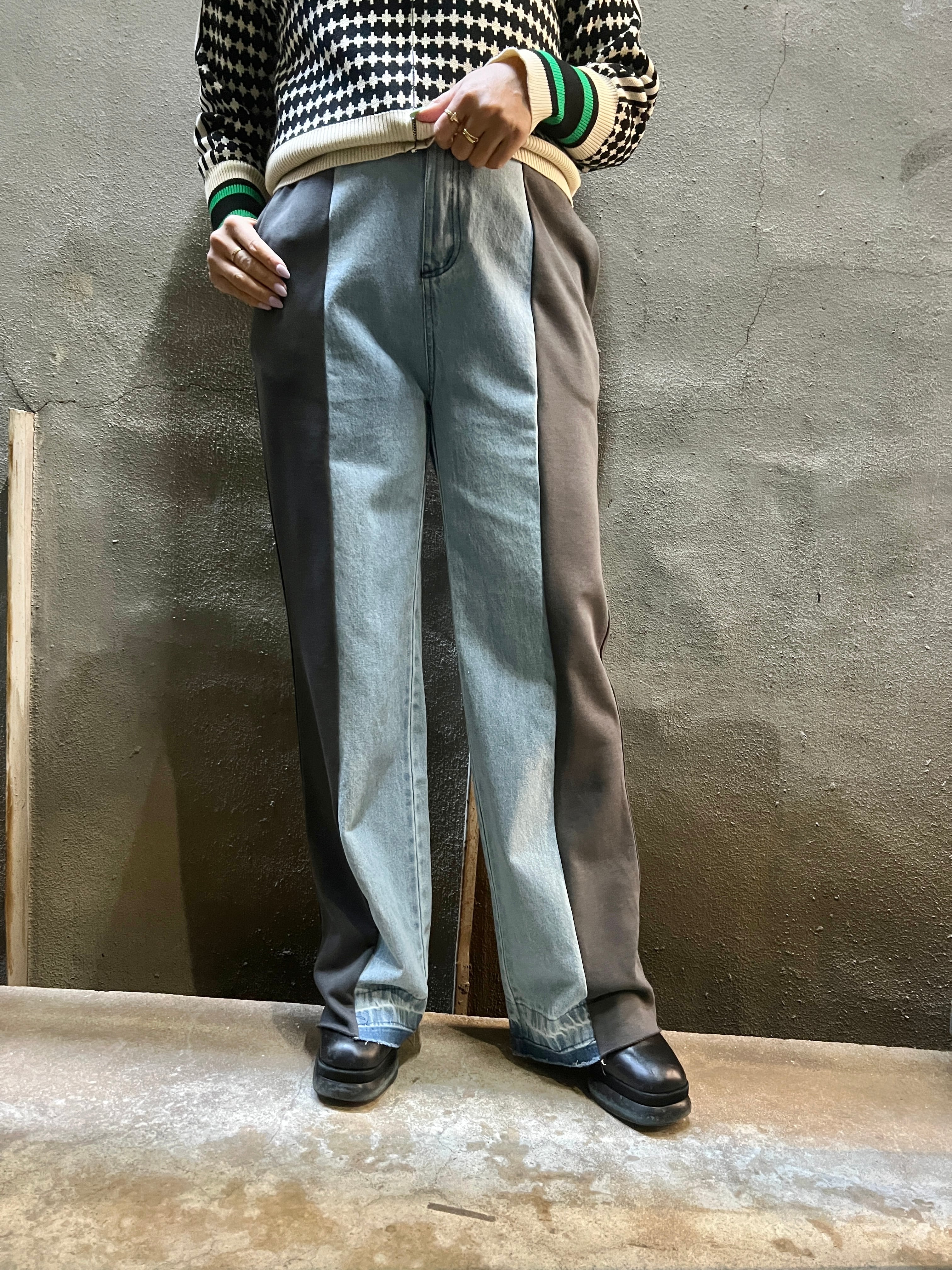 sweat × denim change design pants パンツ デニム 裏毛 スウェット 切替デザイン ワイドパンツ
