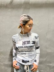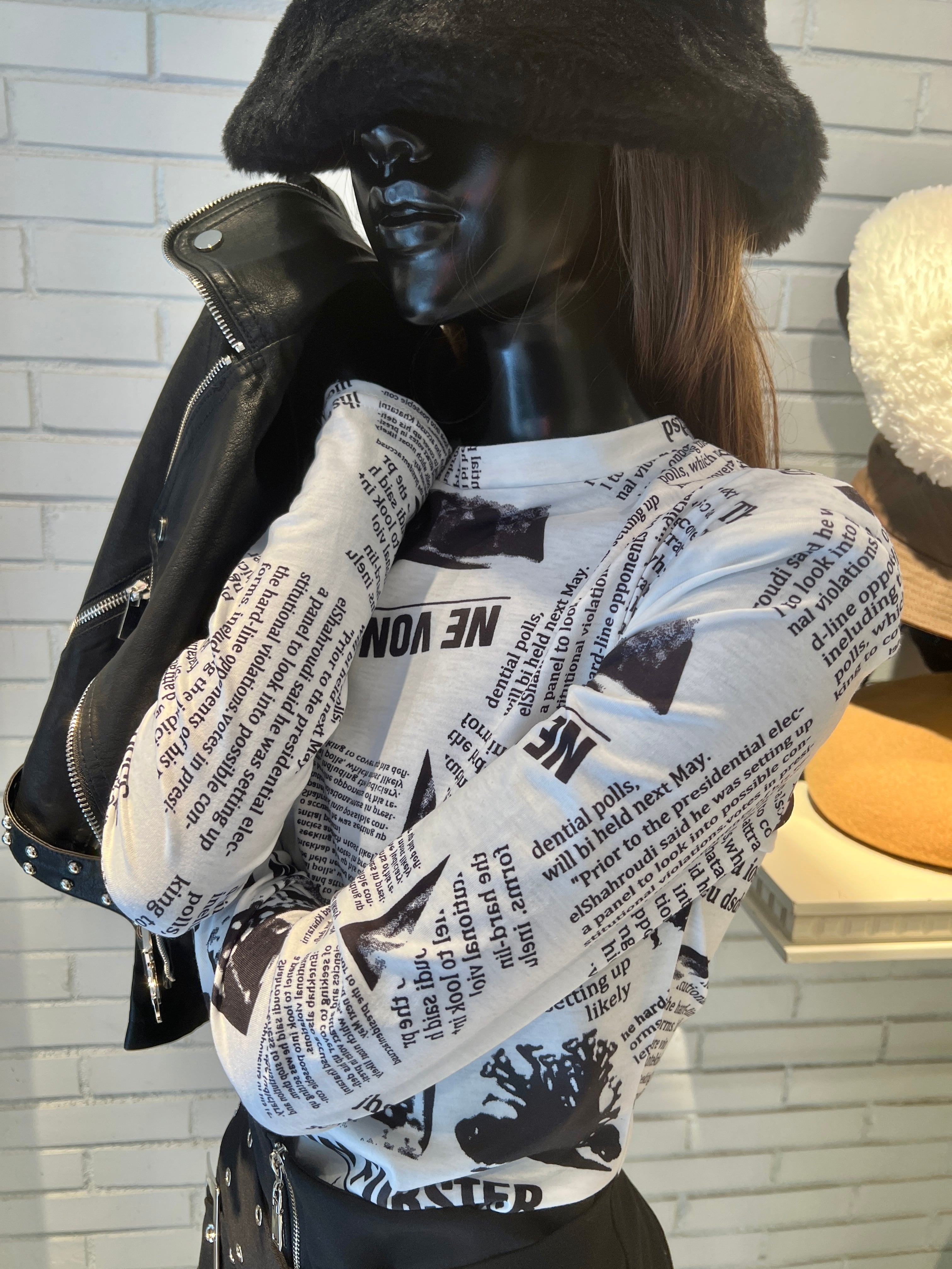 magazine print power shoulder design tops トップス マガジンプリント 白黒 バイカラー パワーショルダー