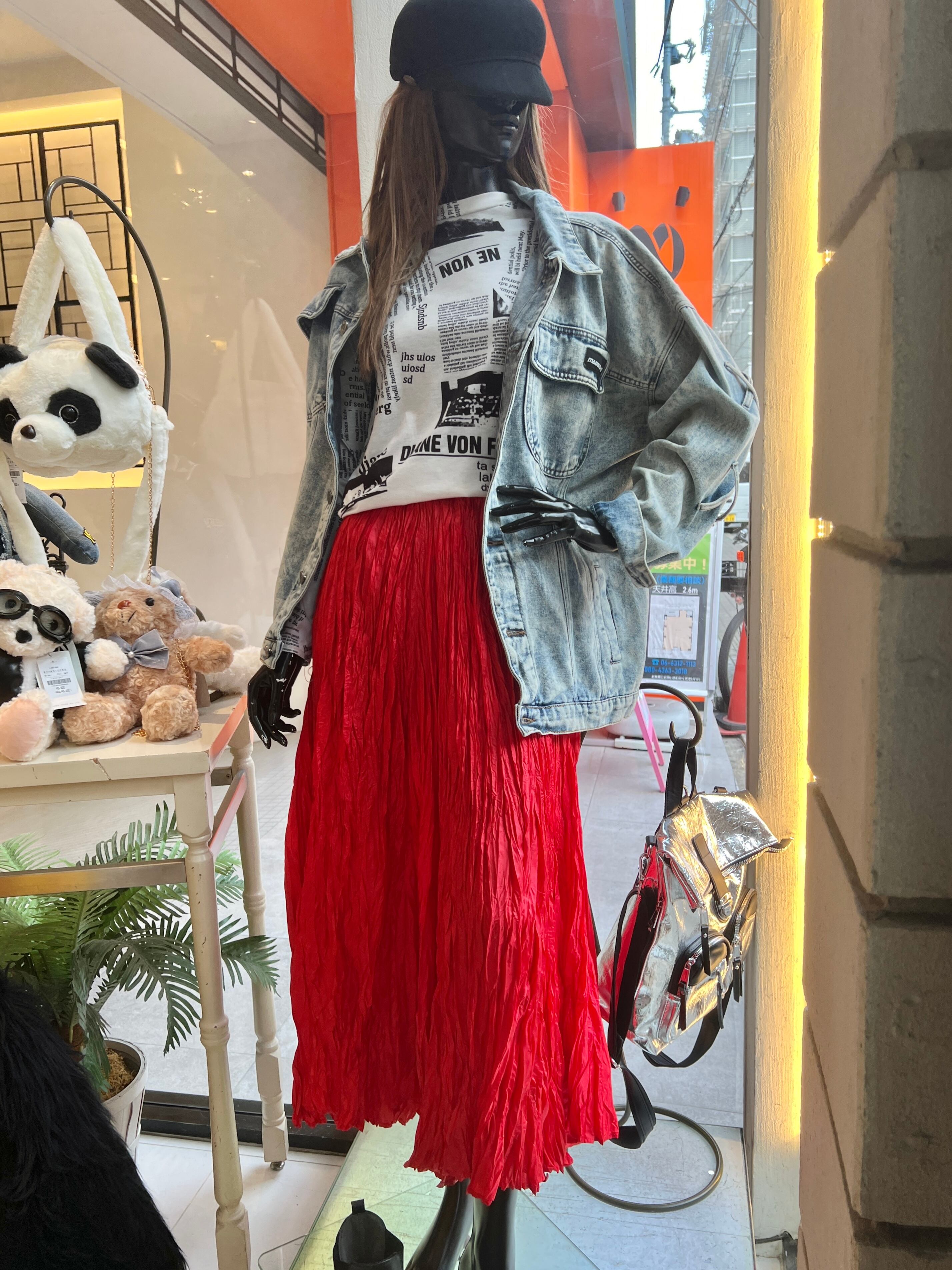crinkle pleats volume gather skirt スカート プリーツ ギャザー ゴムウエスト シワ加工 ロング丈