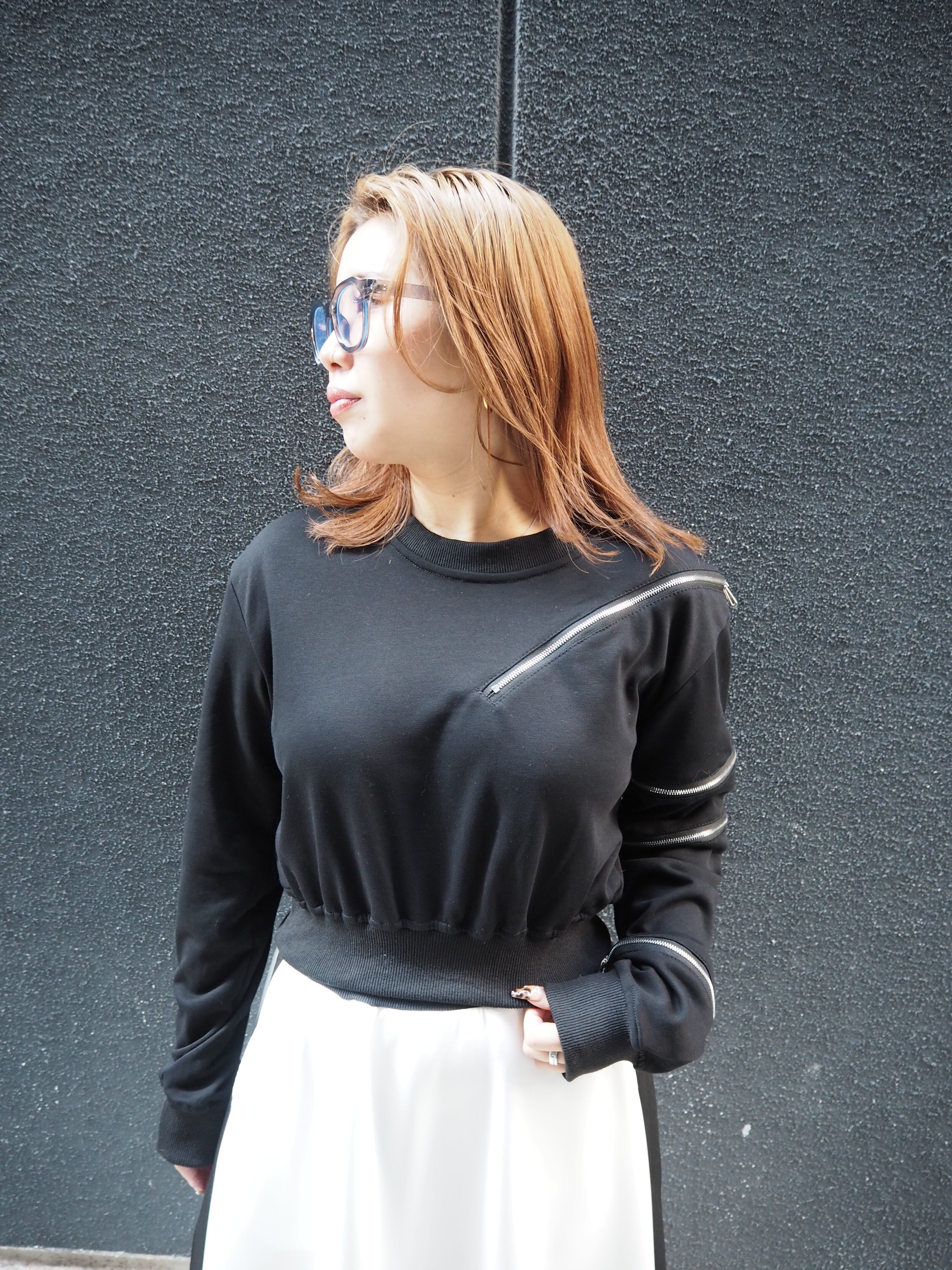 クルーネックのショート丈トップスで、ジッパーアクセントが今っぽさ満点!
