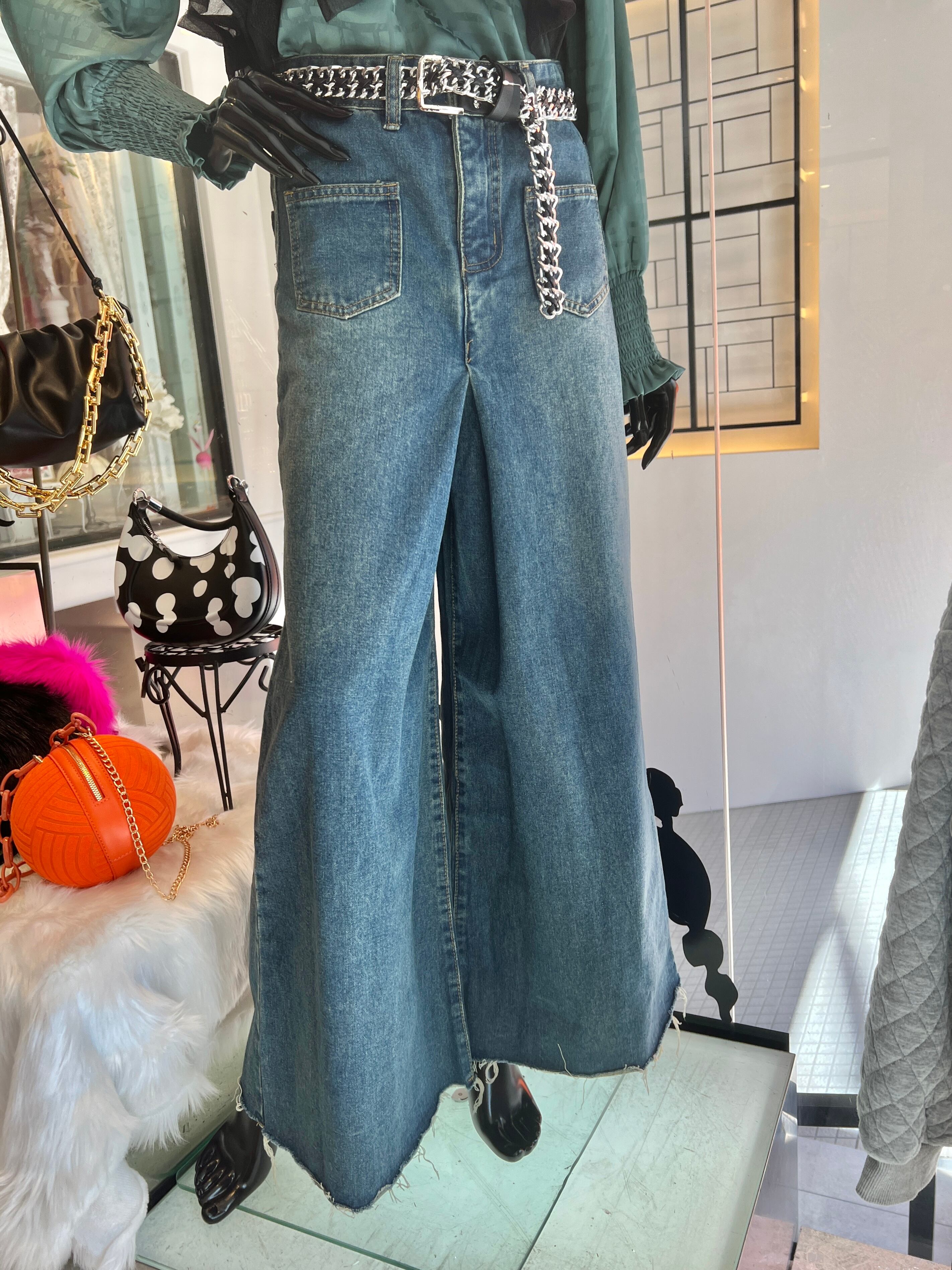 カジュアルな中にも大人の余裕を漂わせるデニムのバギーパンツです。