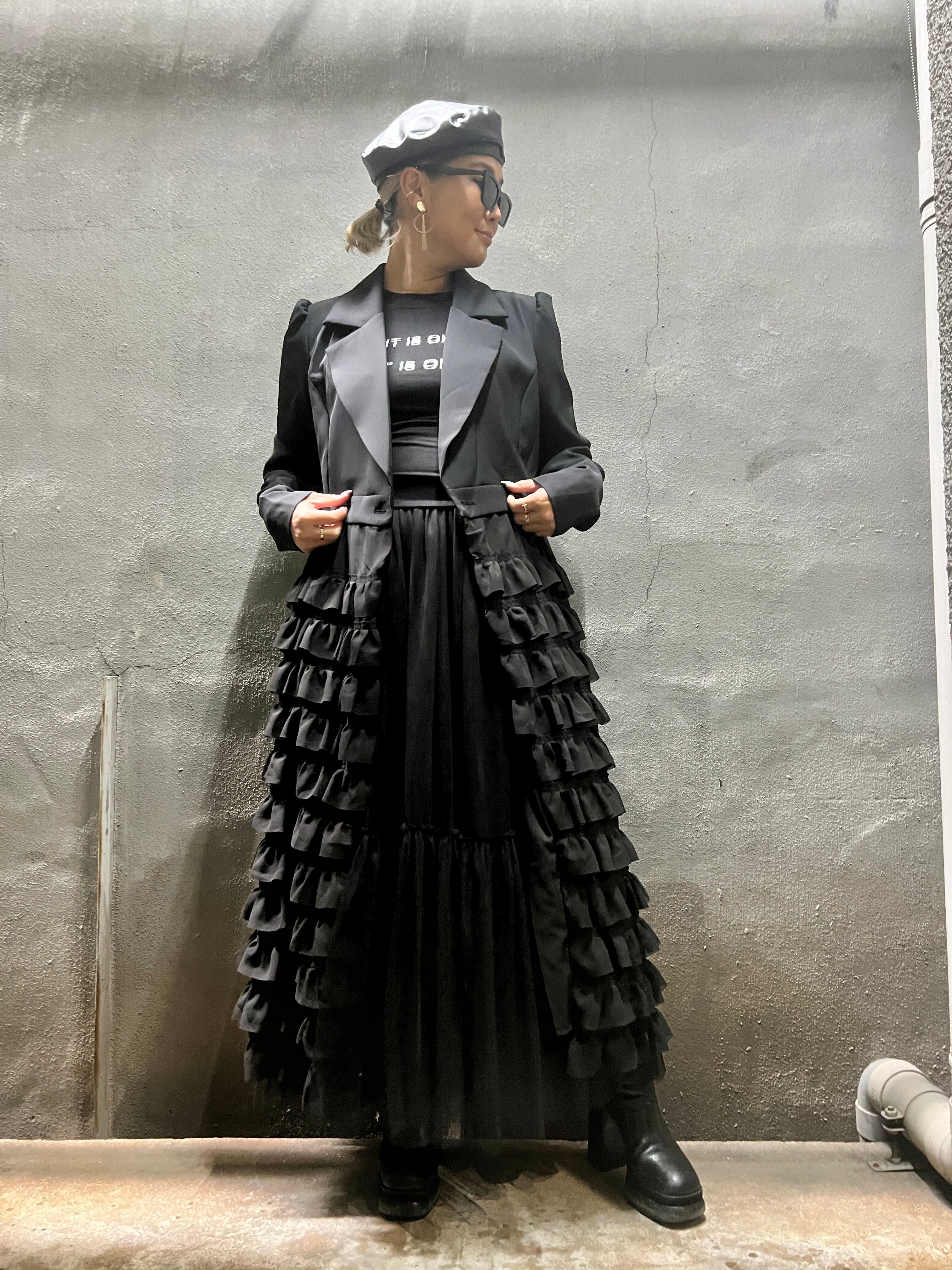 frill change design long jacket ジャケット フリル 切替デザイン ロング ブラック 黒