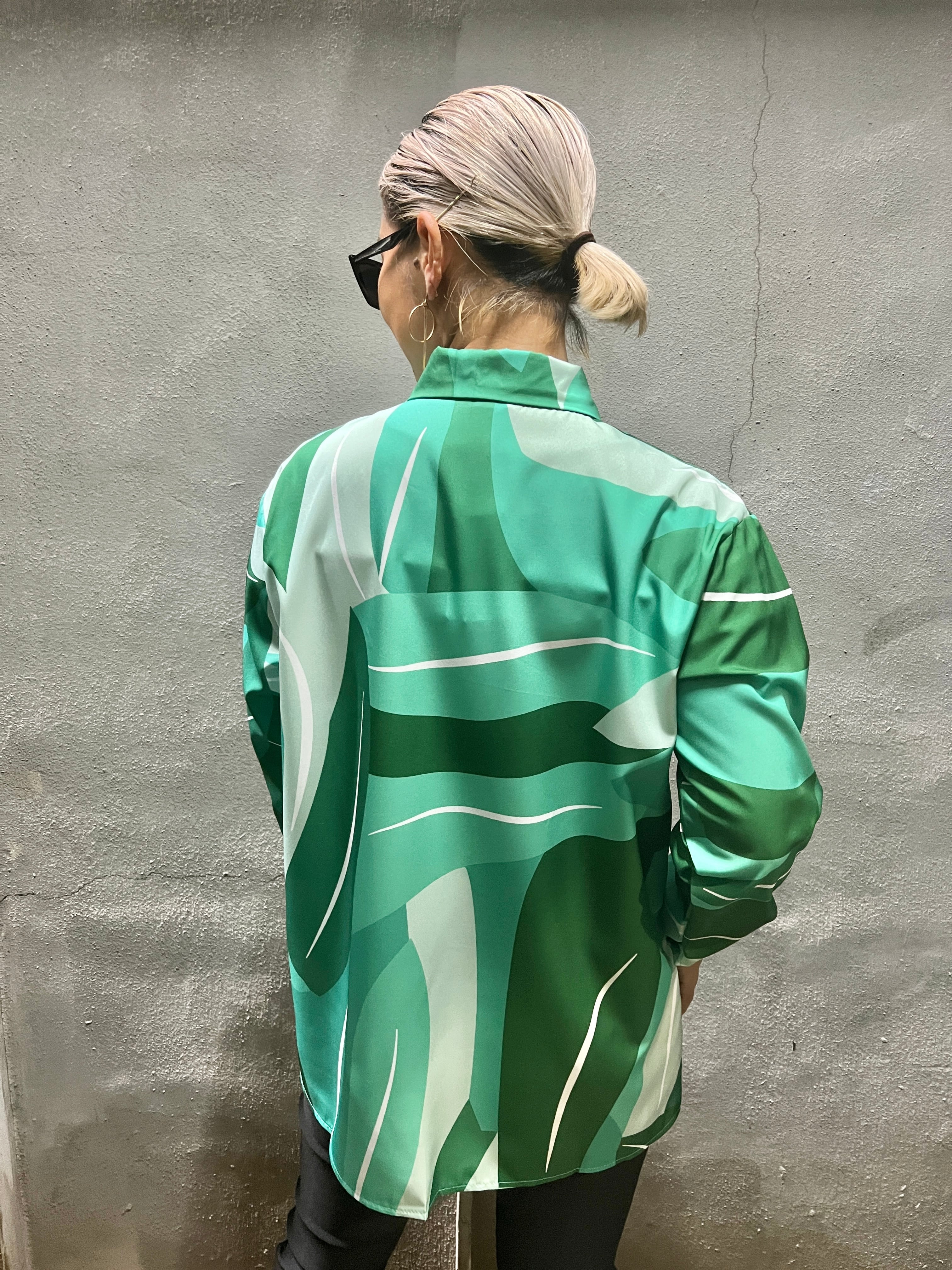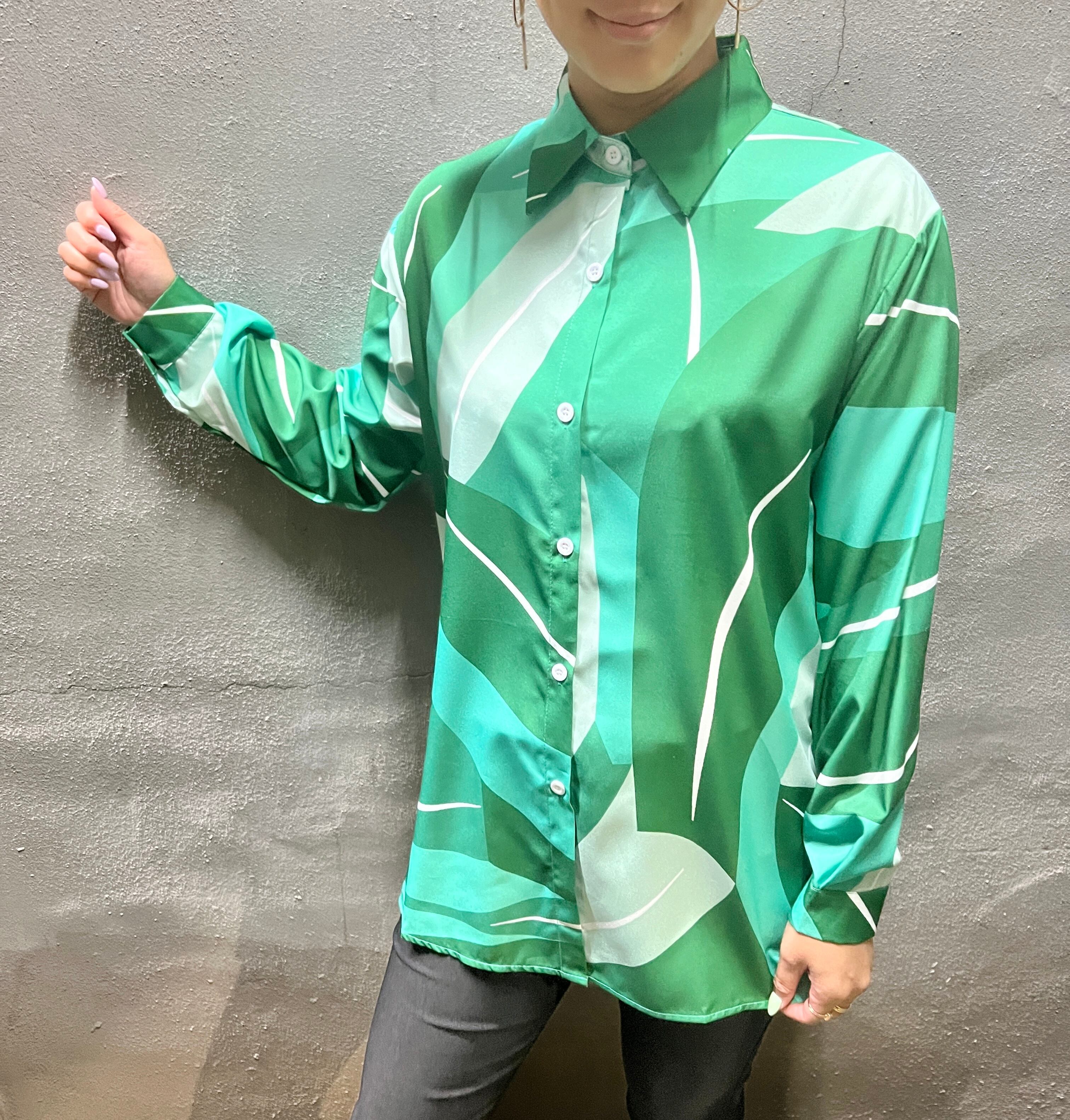 ester print shirt シャツ 柄シャツ ハート グリーン ピンク カラフル