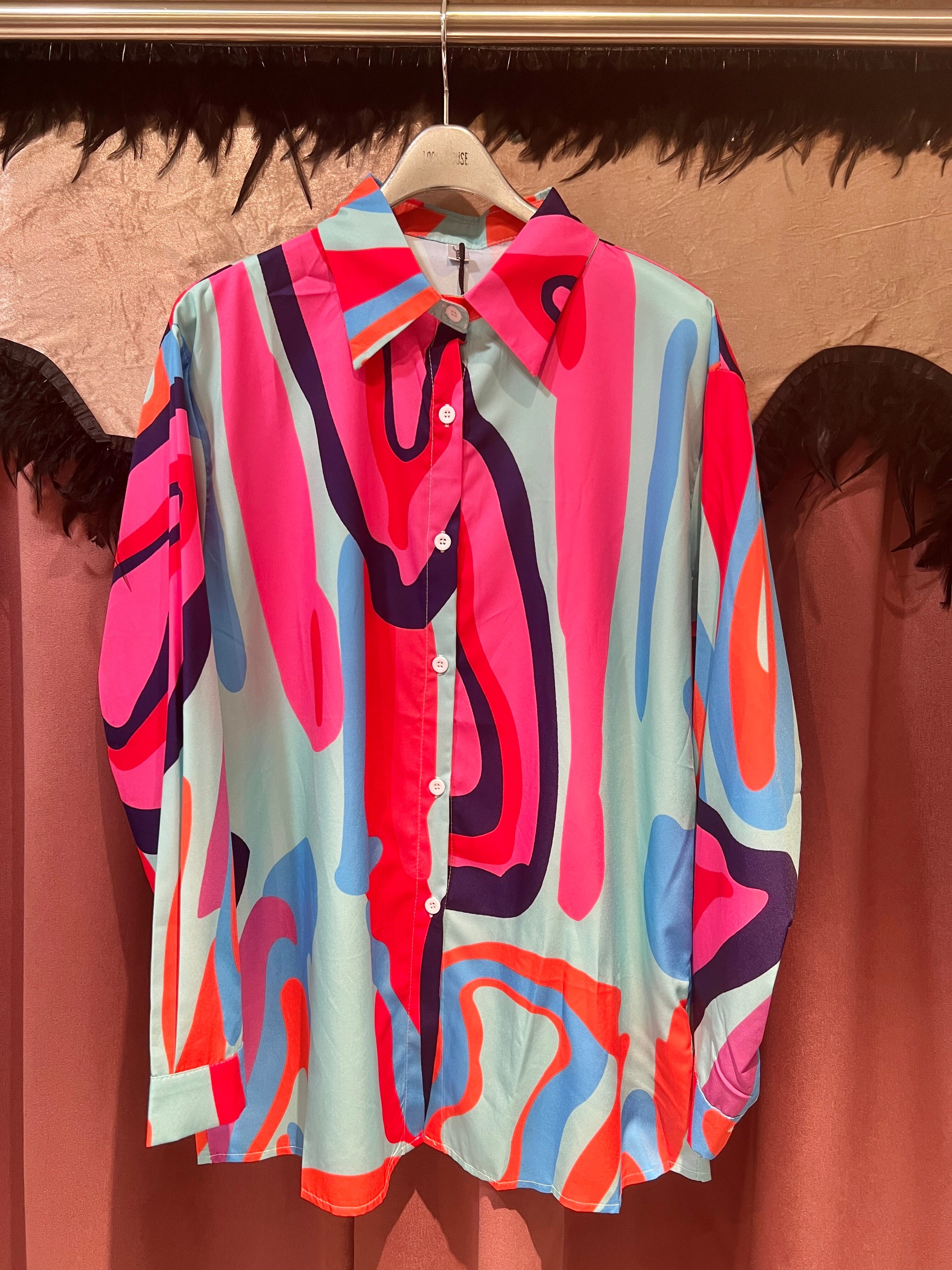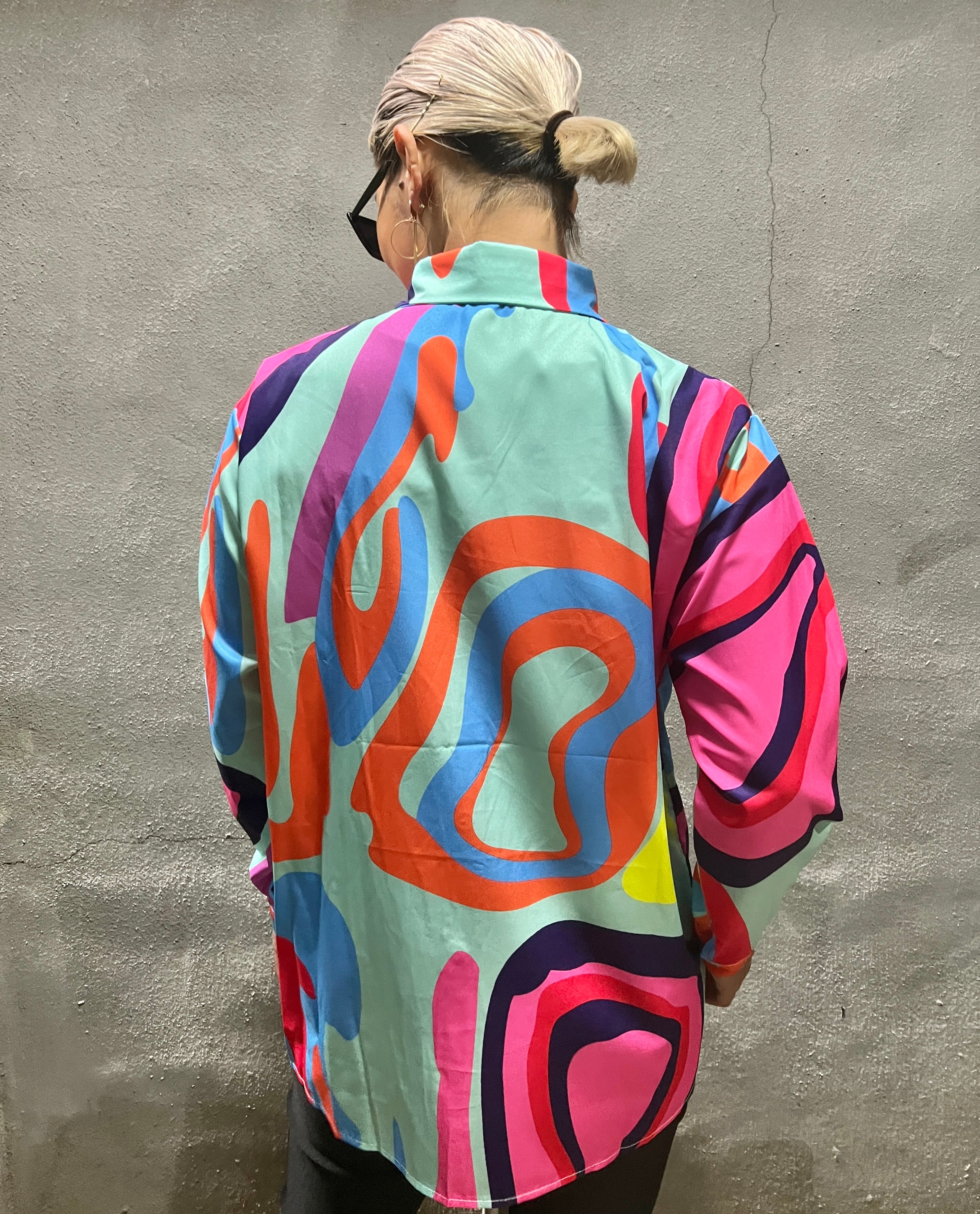 カラフルでポップな雰囲気が漂うデザインシャツ。