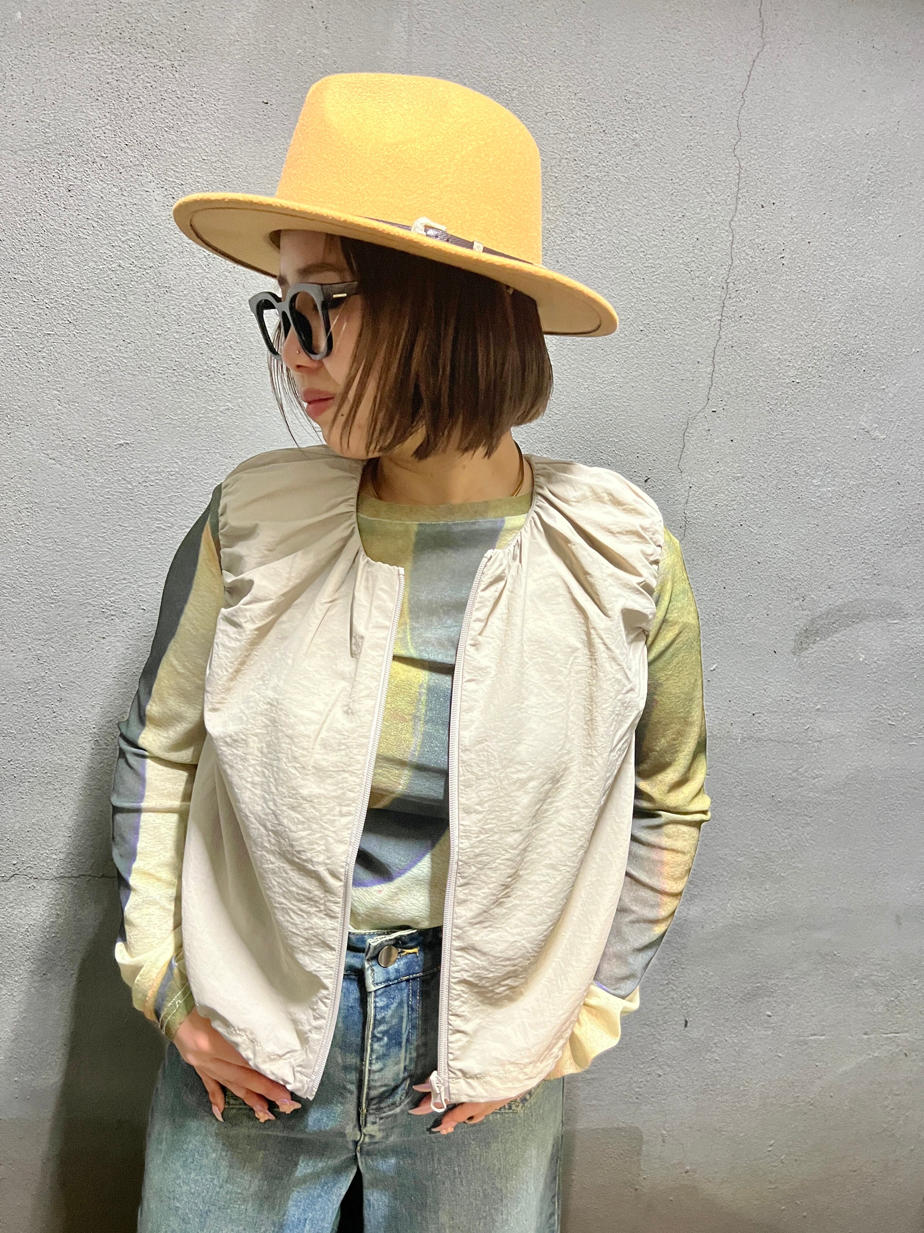 nylon gather tuck × zip short tops トップス ナイロン ギャザー タック ドローコード 重ね着 レイヤード