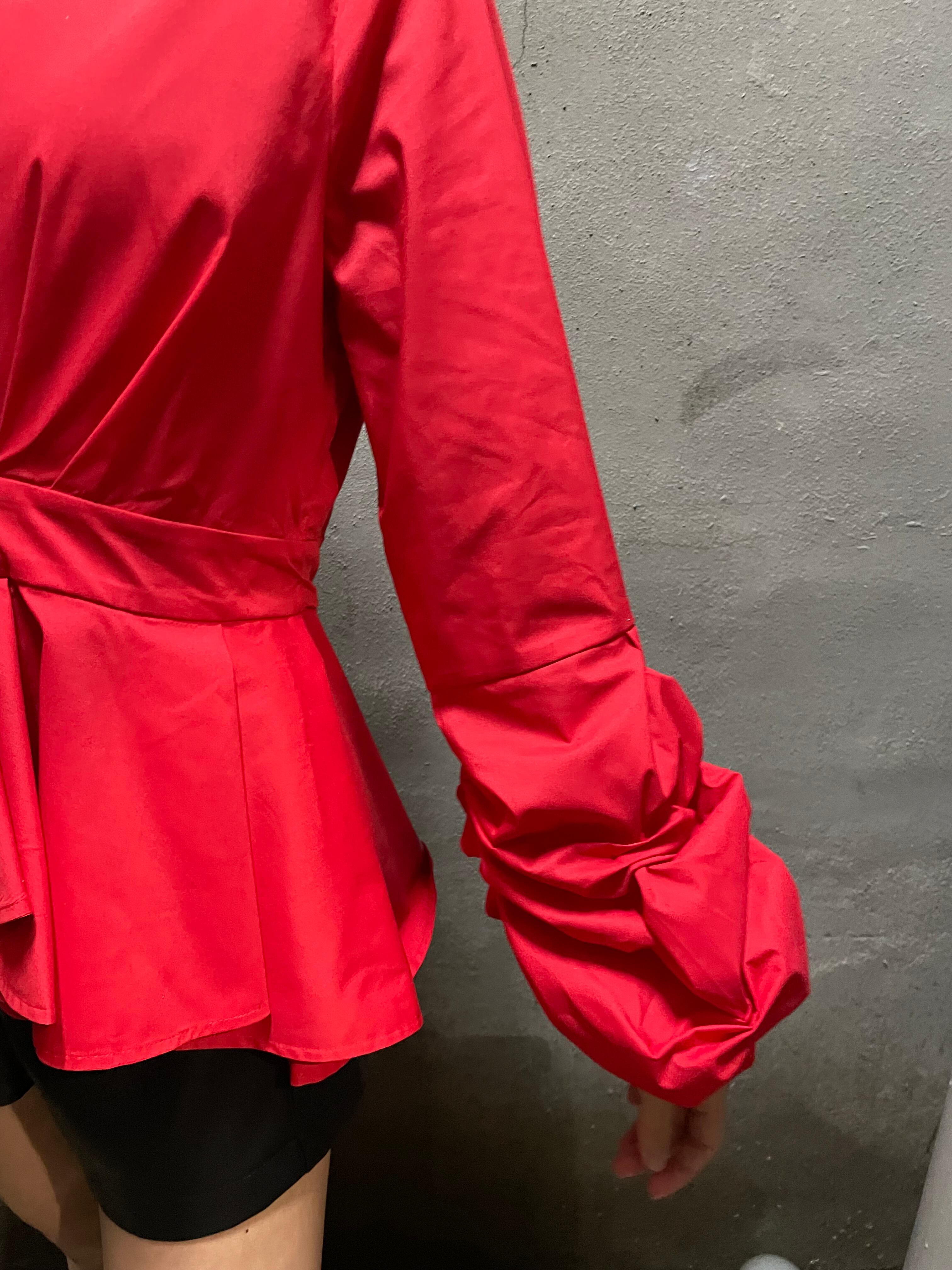 gather balloon sleeve V-neck design tops トップス ギャザー バルーン Vネック デザイントップス フリル