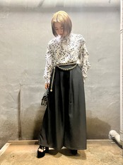 白黒のバイカラーが洗練された印象を与え、フリルデザインの袖が華やかさをプラスする