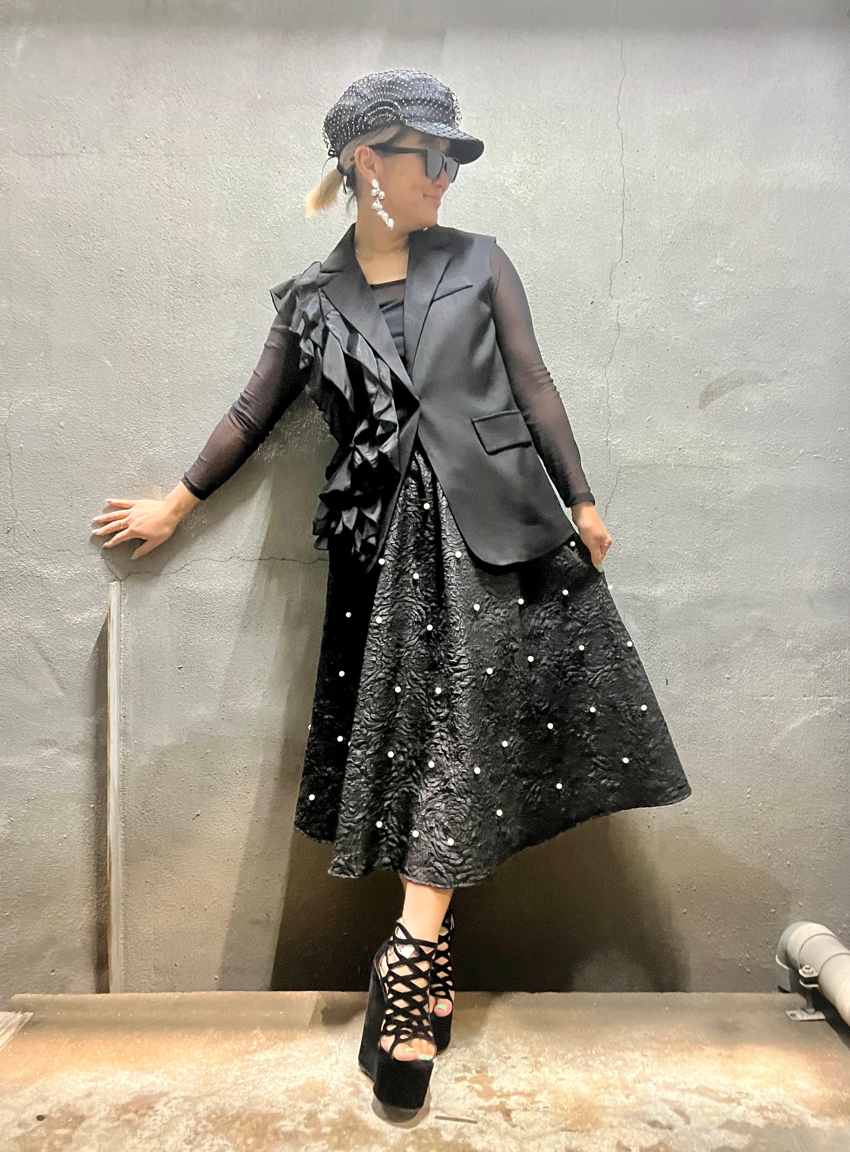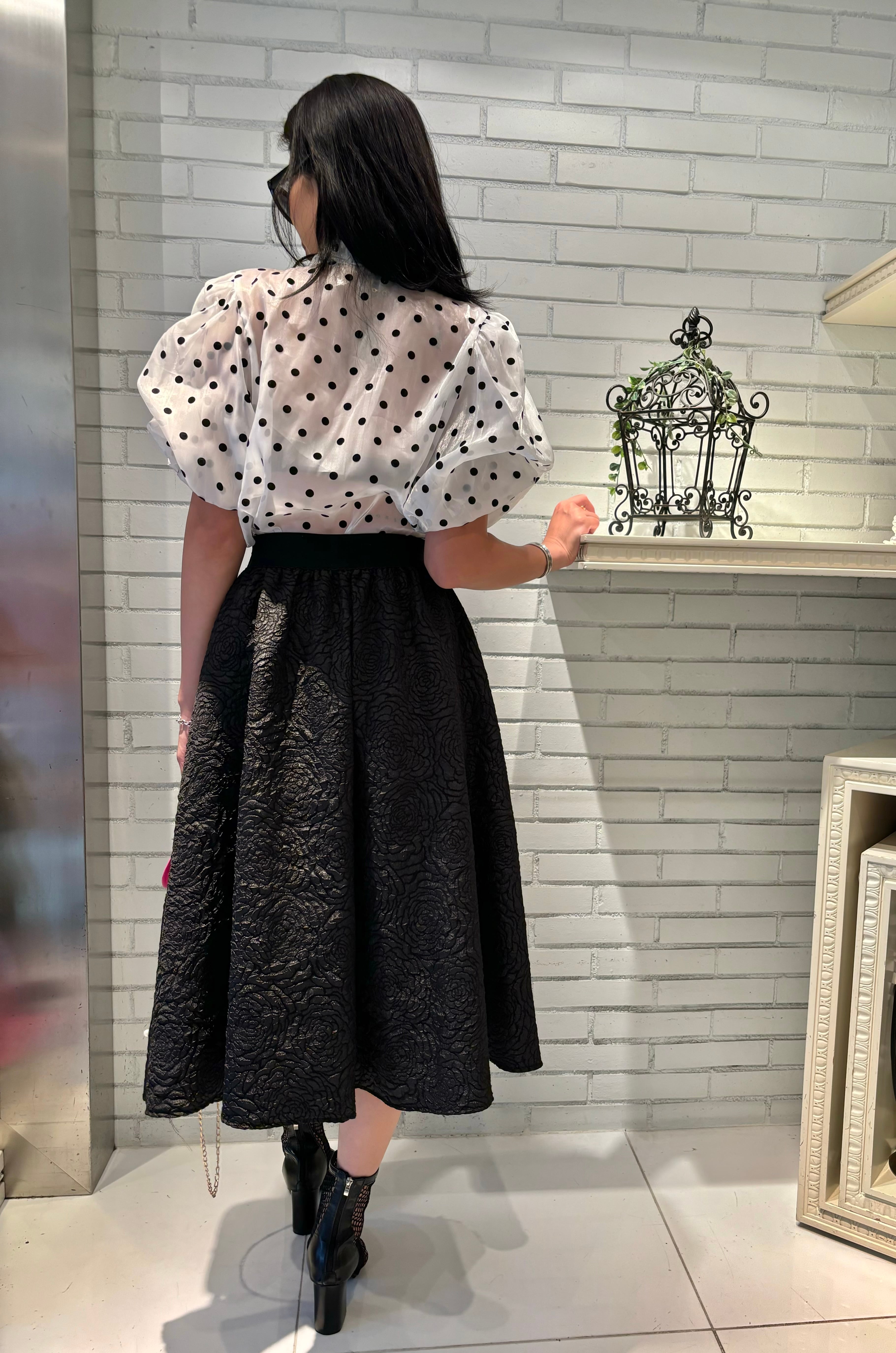 優雅な花模様のジャガードが施された華やかなフレアースカートが登場しました。