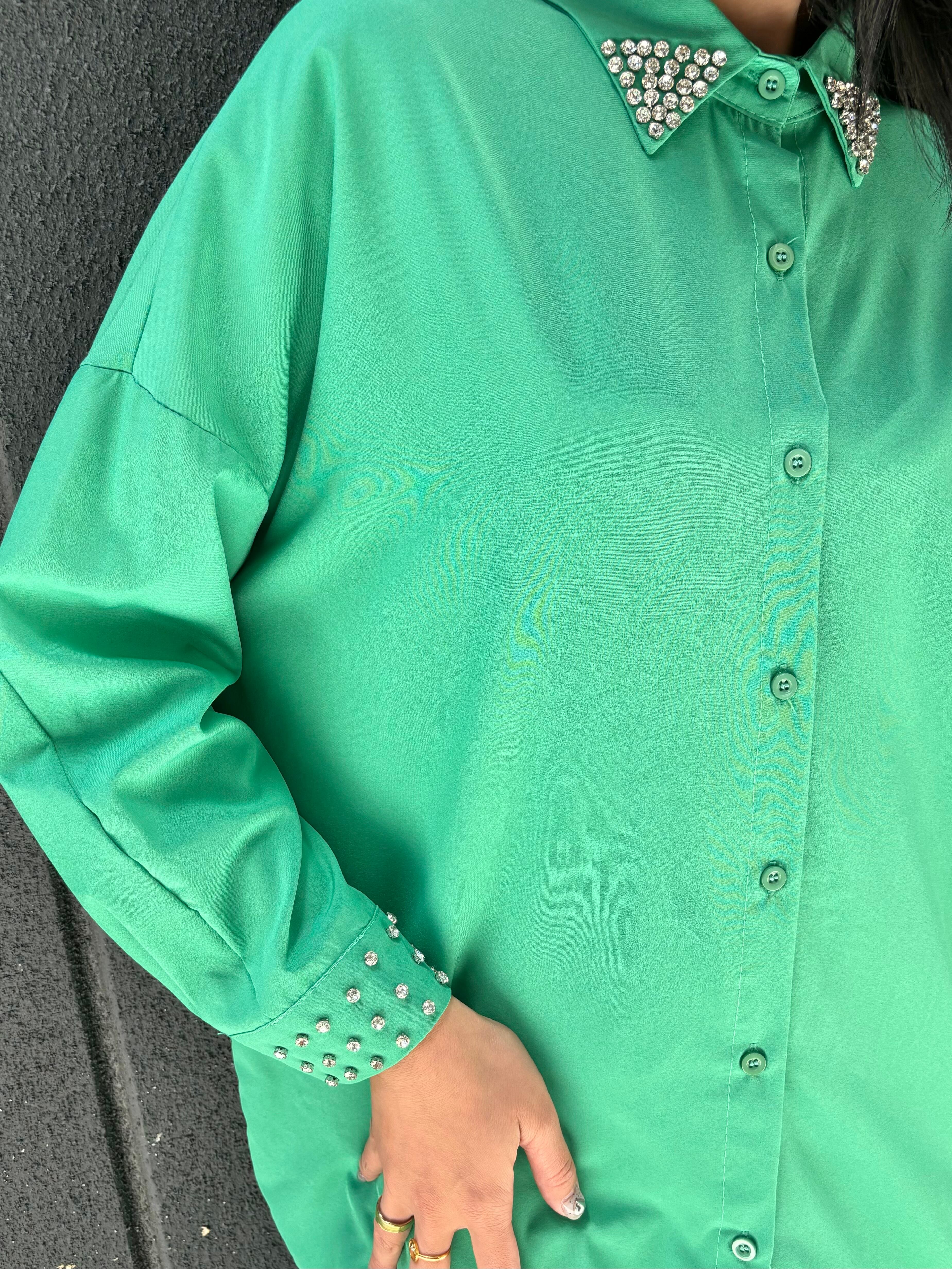 stone point ester design shirt シャツ オーバーサイズ ストーン キラキラ