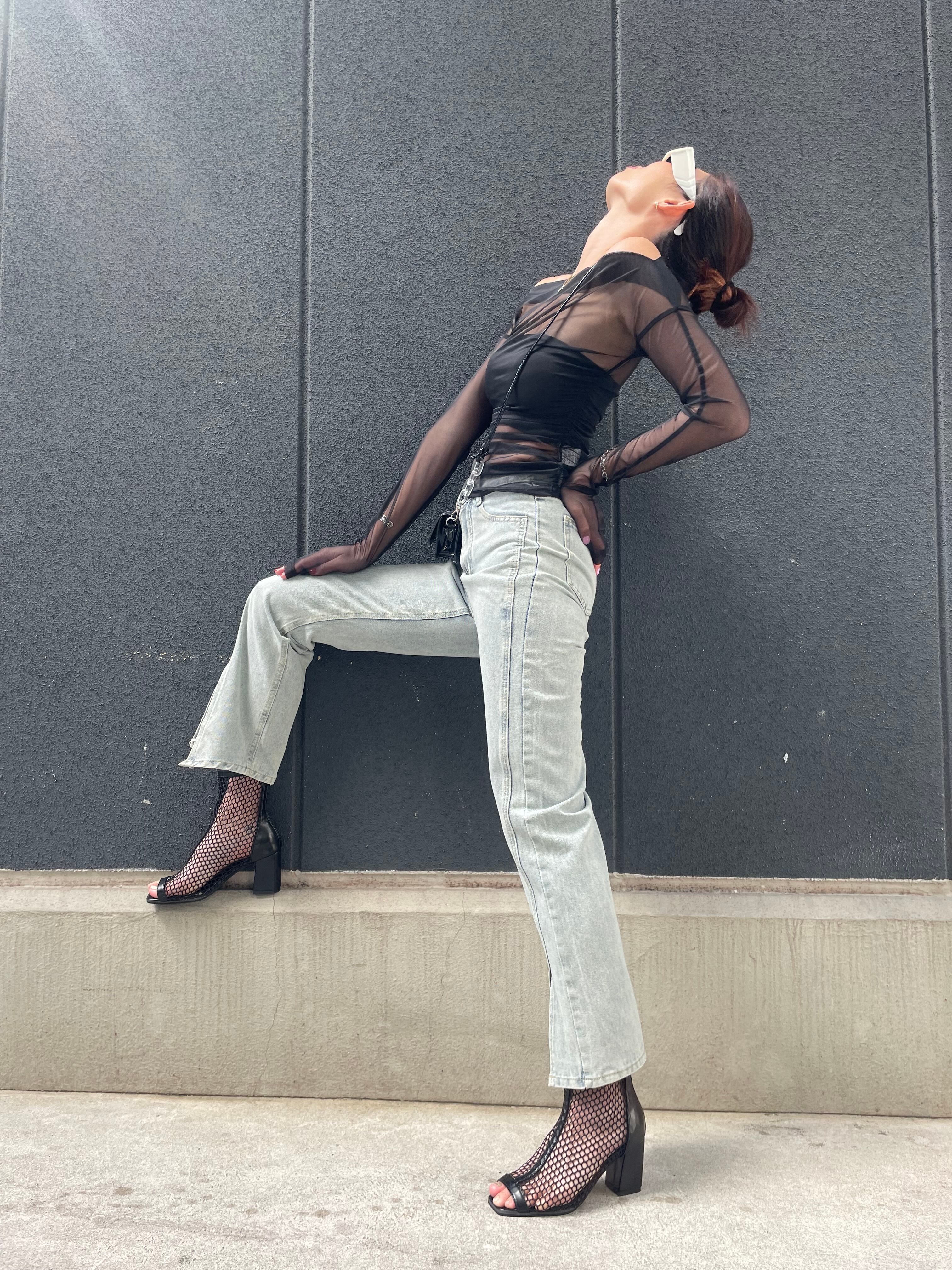 オシャレでセクシーなスタイルを演出できる、ストレッチメッシュオフショルダートップスの2点セットが登場しました!