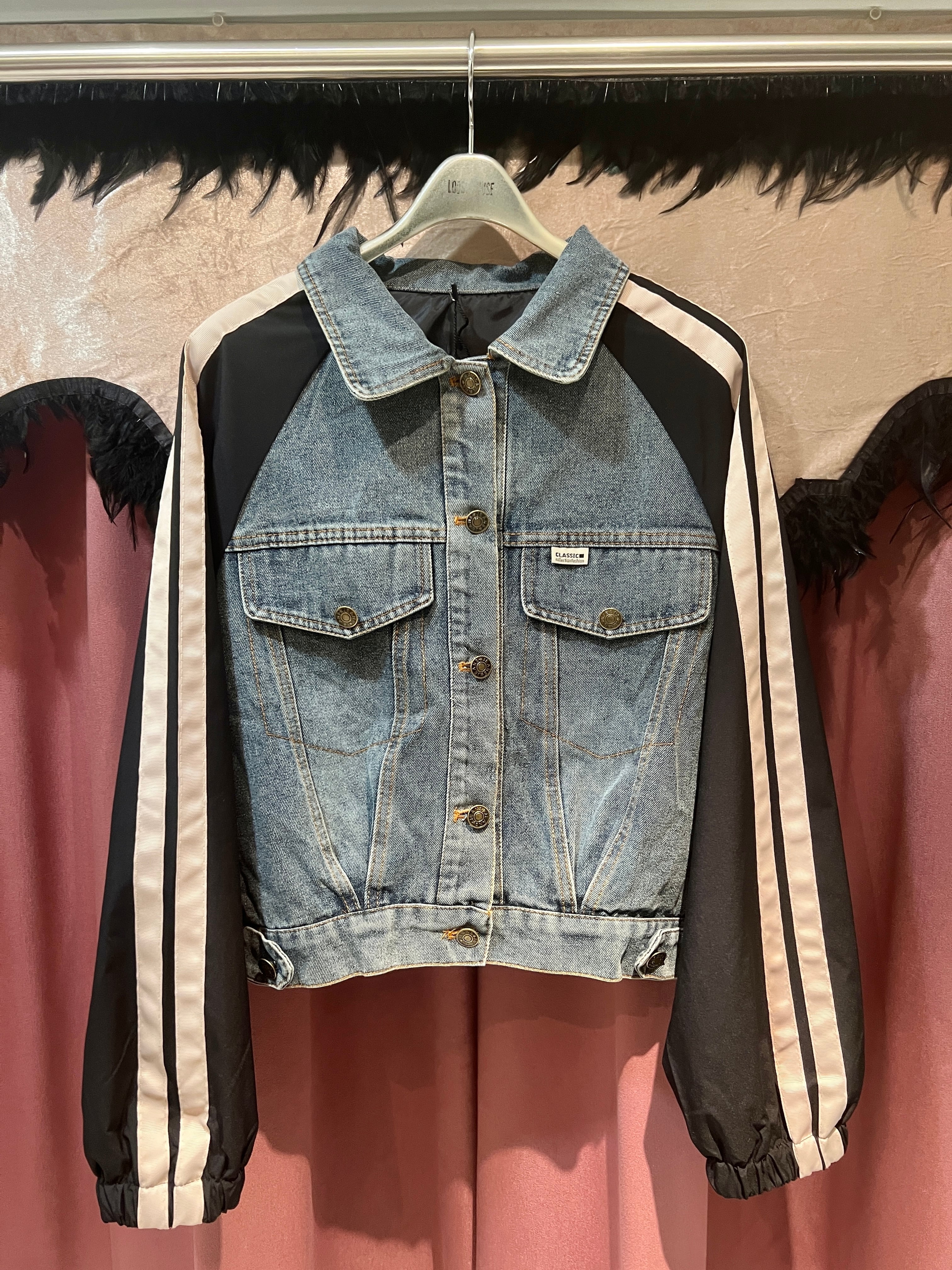 ライン入りでスタイリッシュな印象を与える異素材切替デザインのデニムジャケットが登場しました!