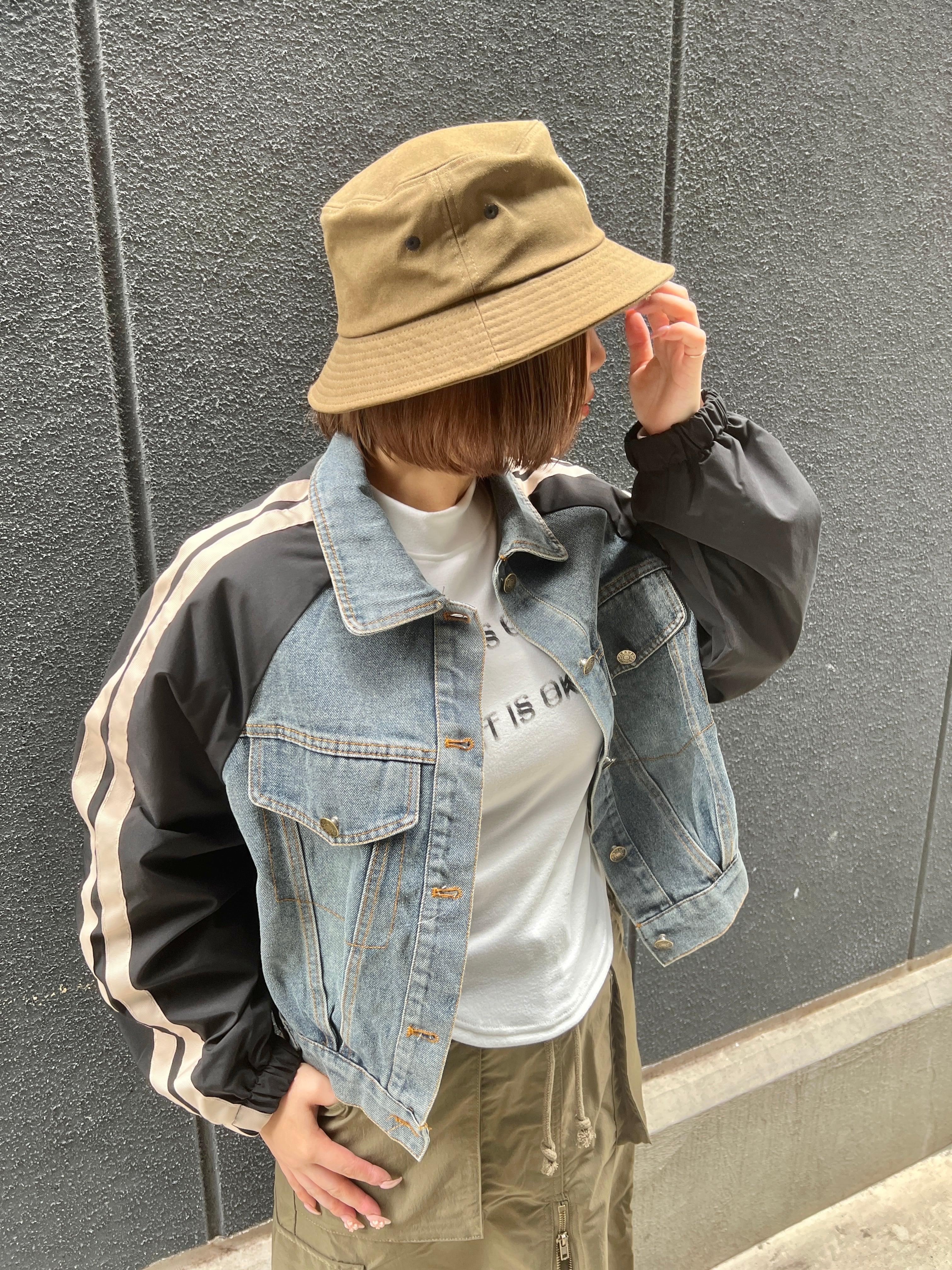 different fabrics mix design denim jacket ジャケット デニム 異素材 切替デザイン ライン入り