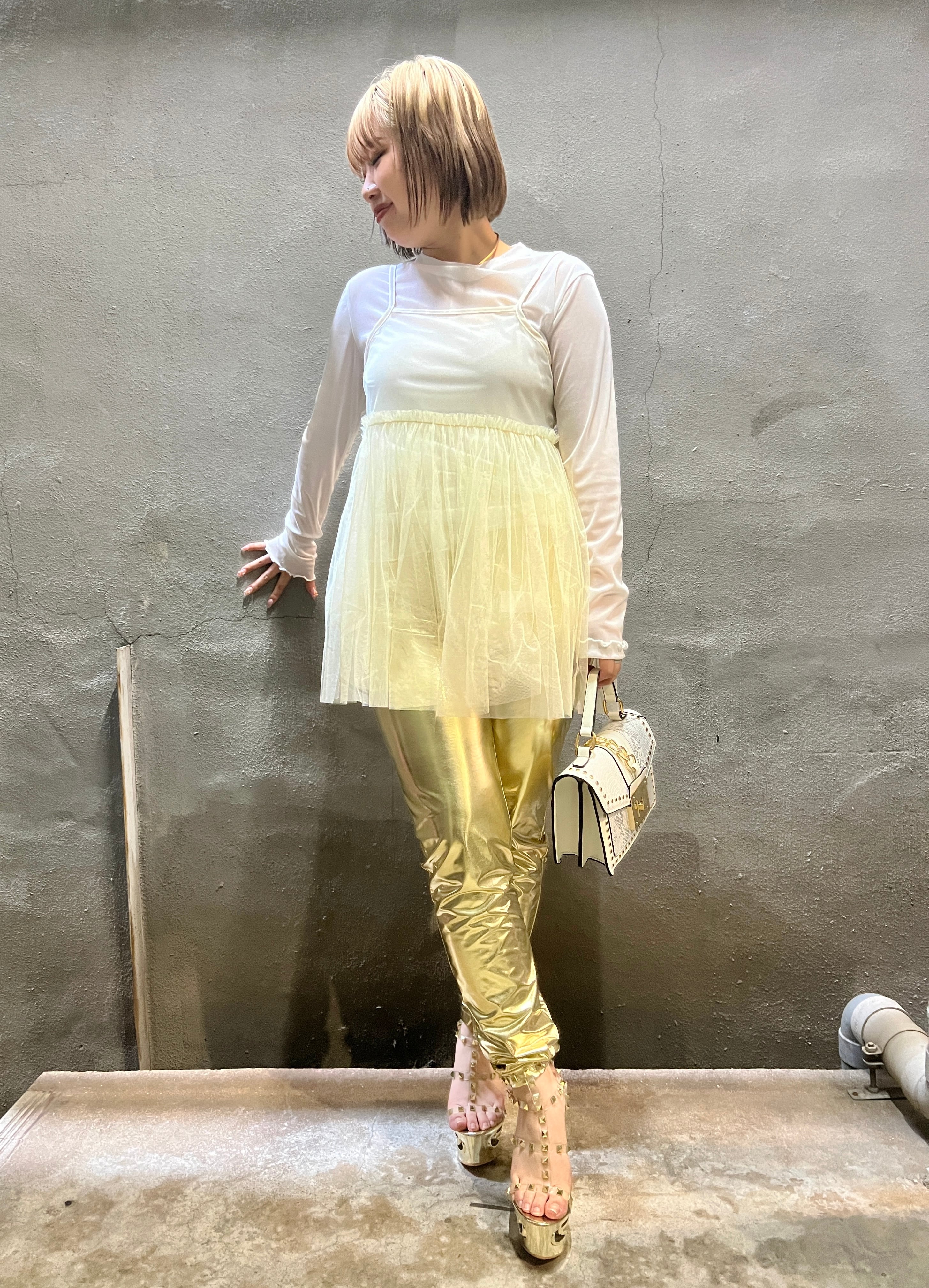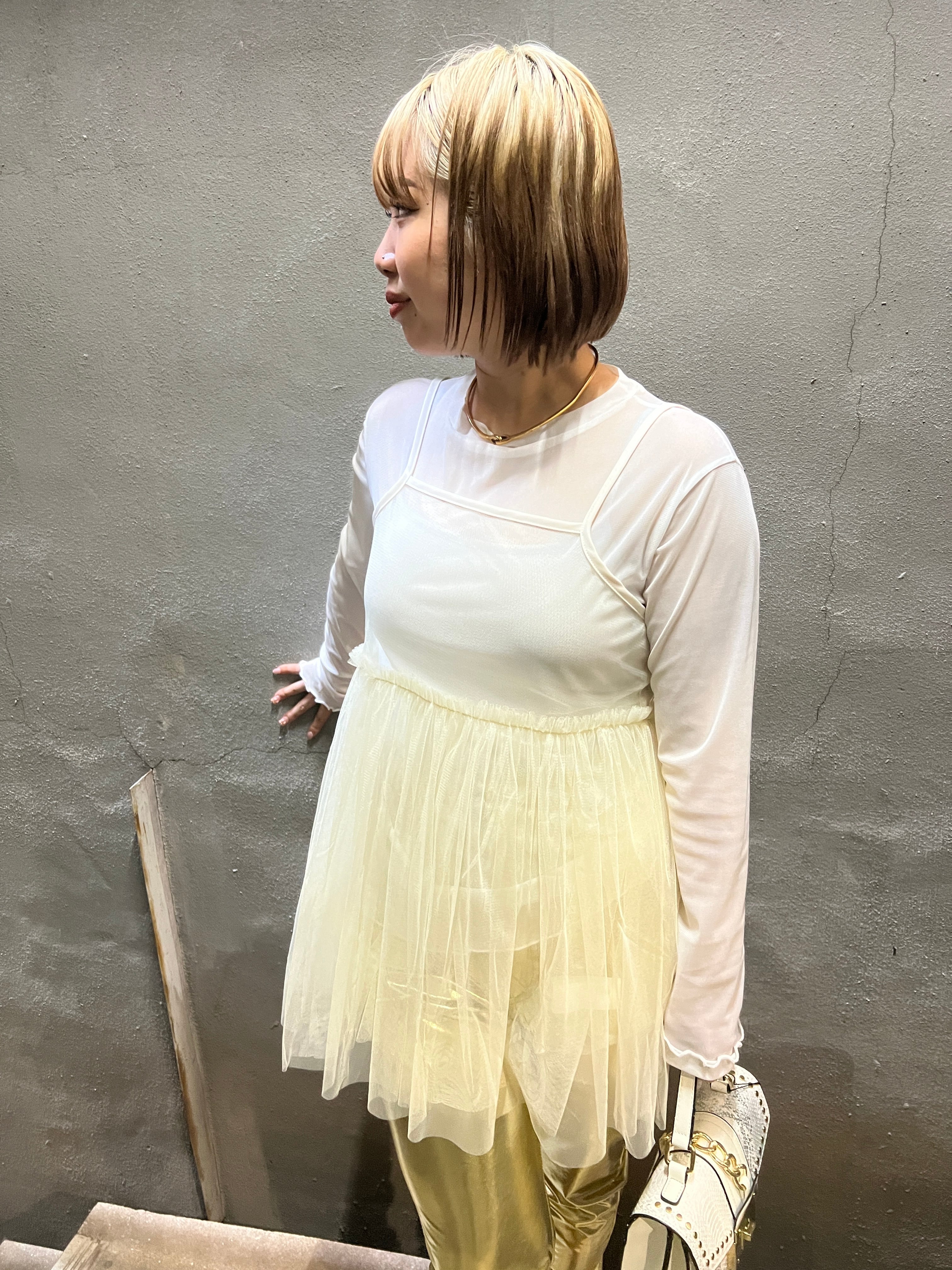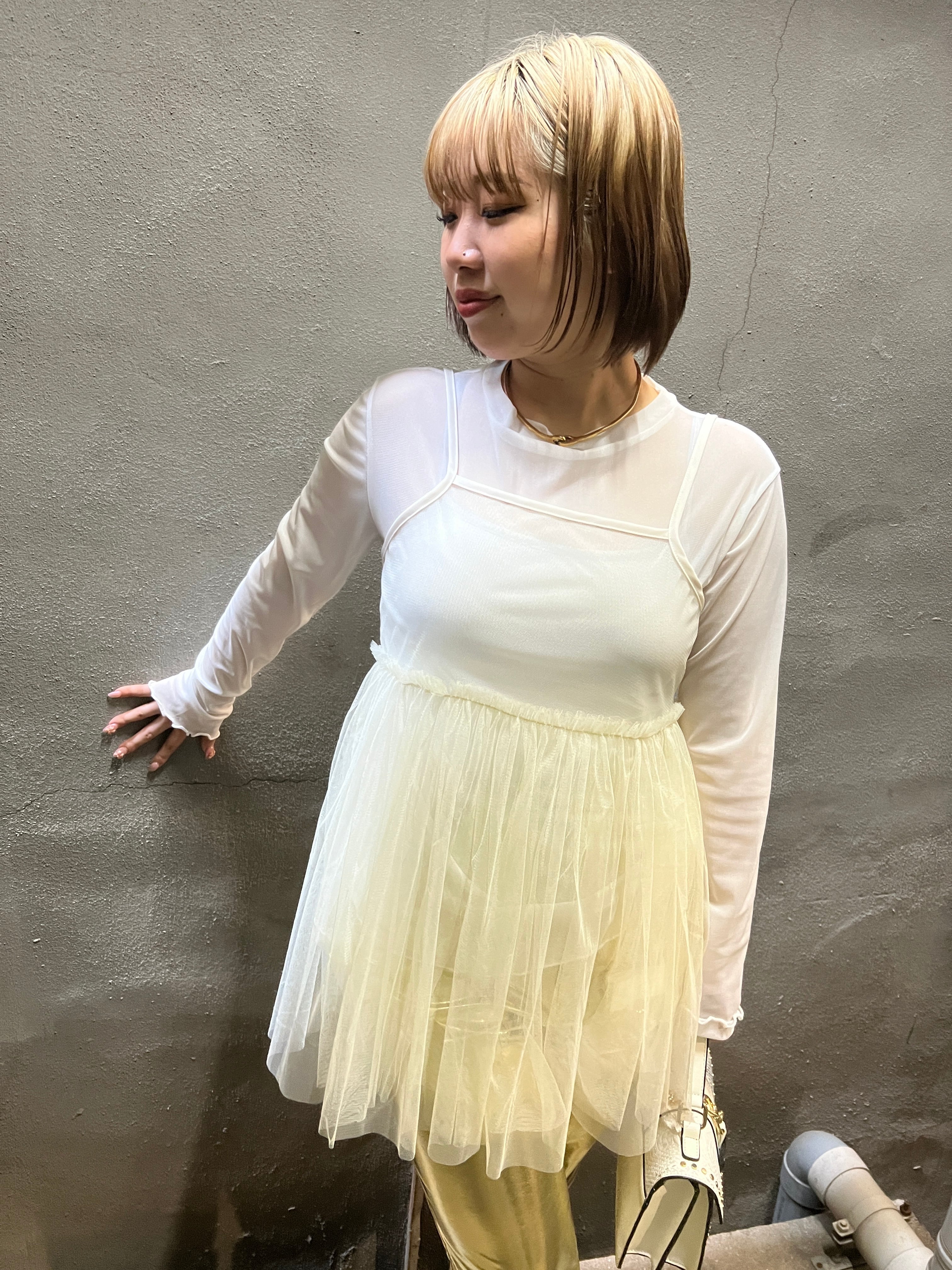 tulle baby doll gather design camisole キャミソール キャミ チュール ギャザー ベビードール 重ね着 レイヤード