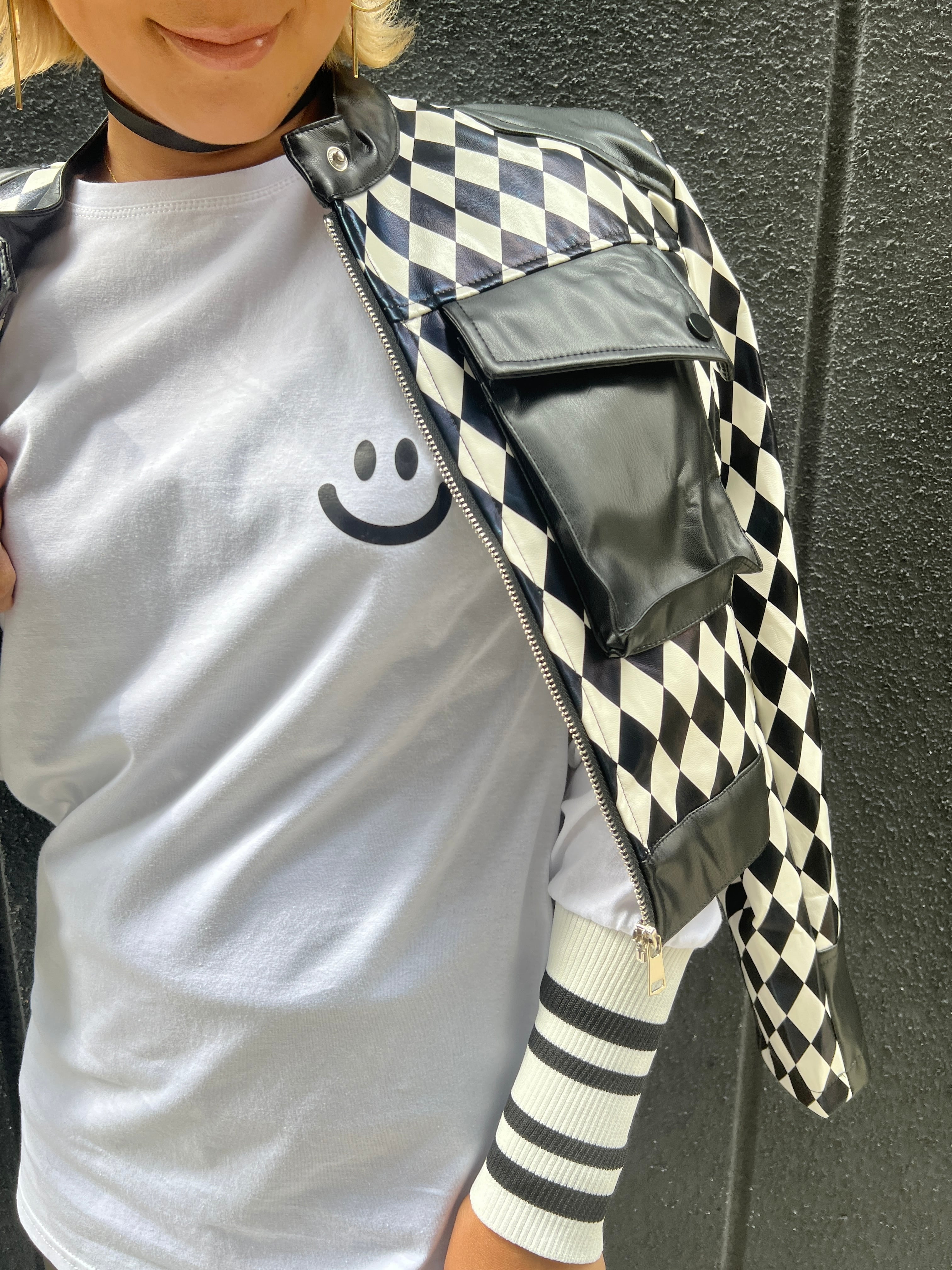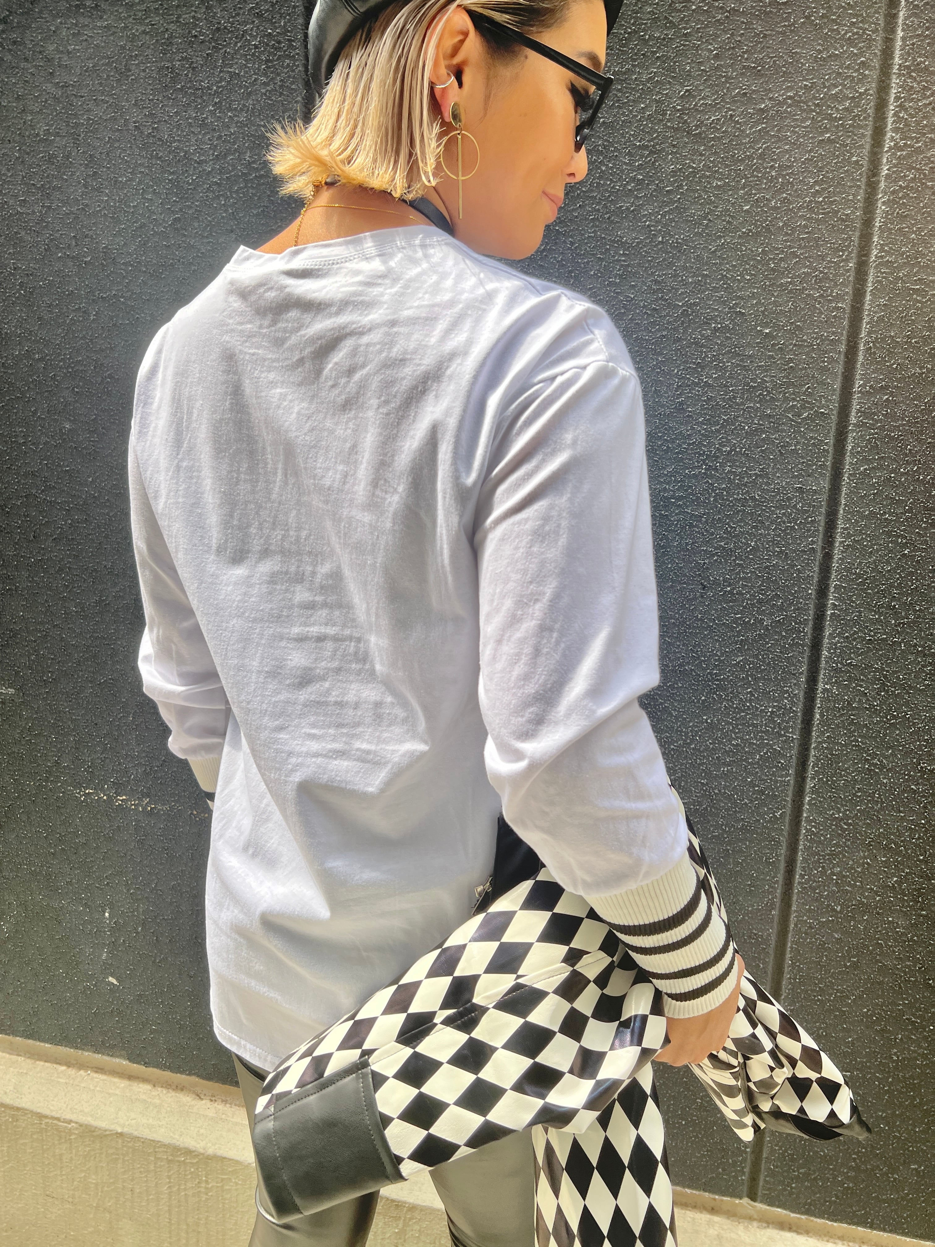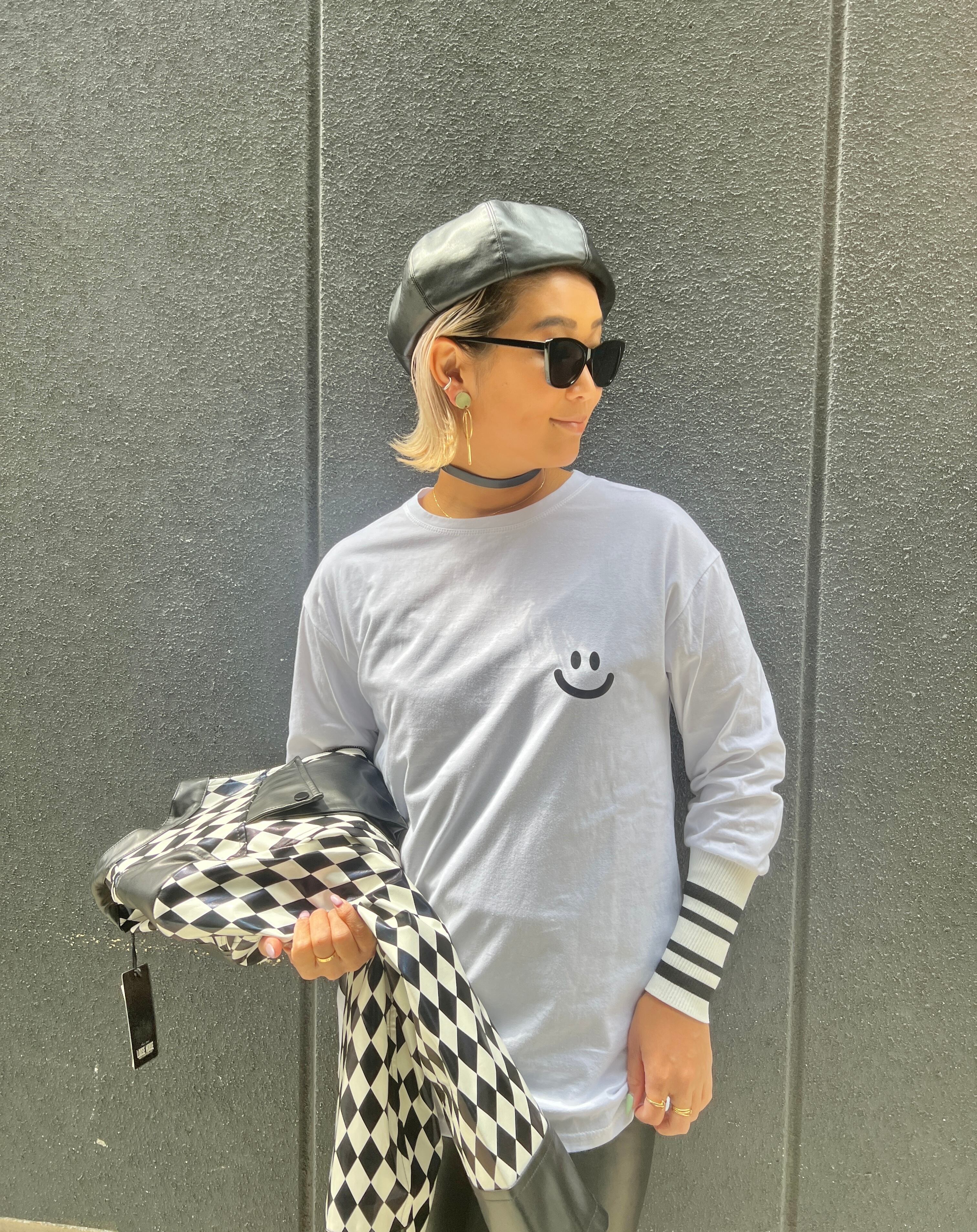 smiley print rib design tops トップス ロングスリーブ ロンT スマイリー にこちゃん 白黒 バイカラー カジュアル