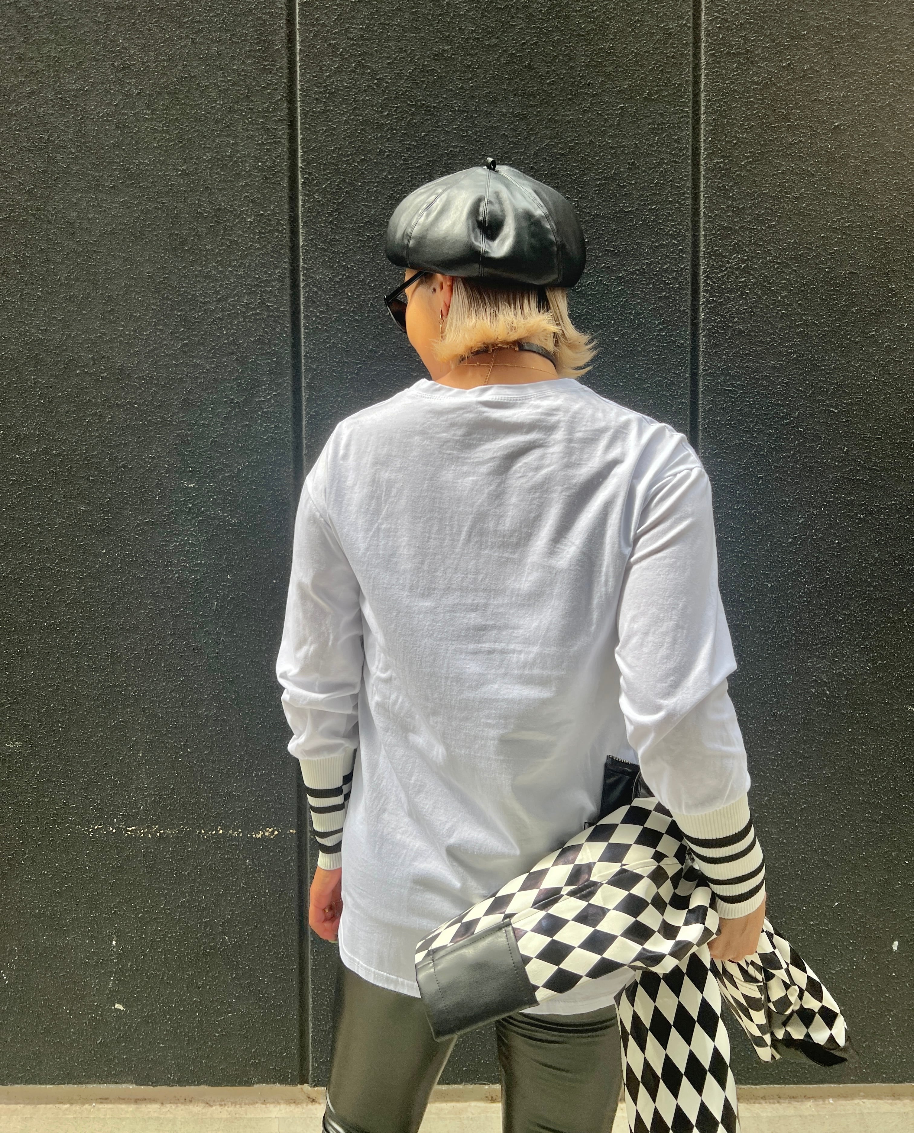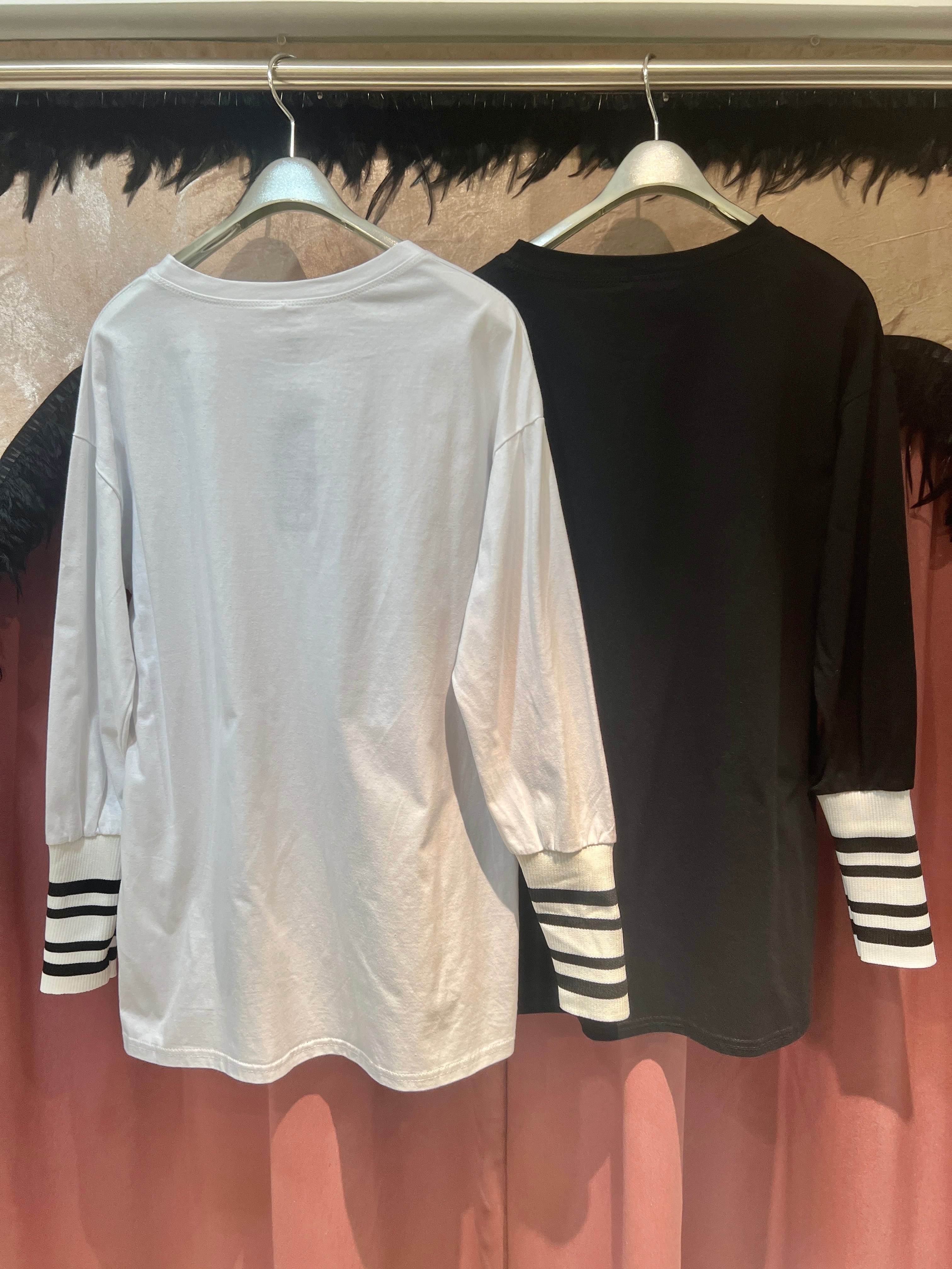 白黒のバイカラーになった袖口のリブがアクセント♪