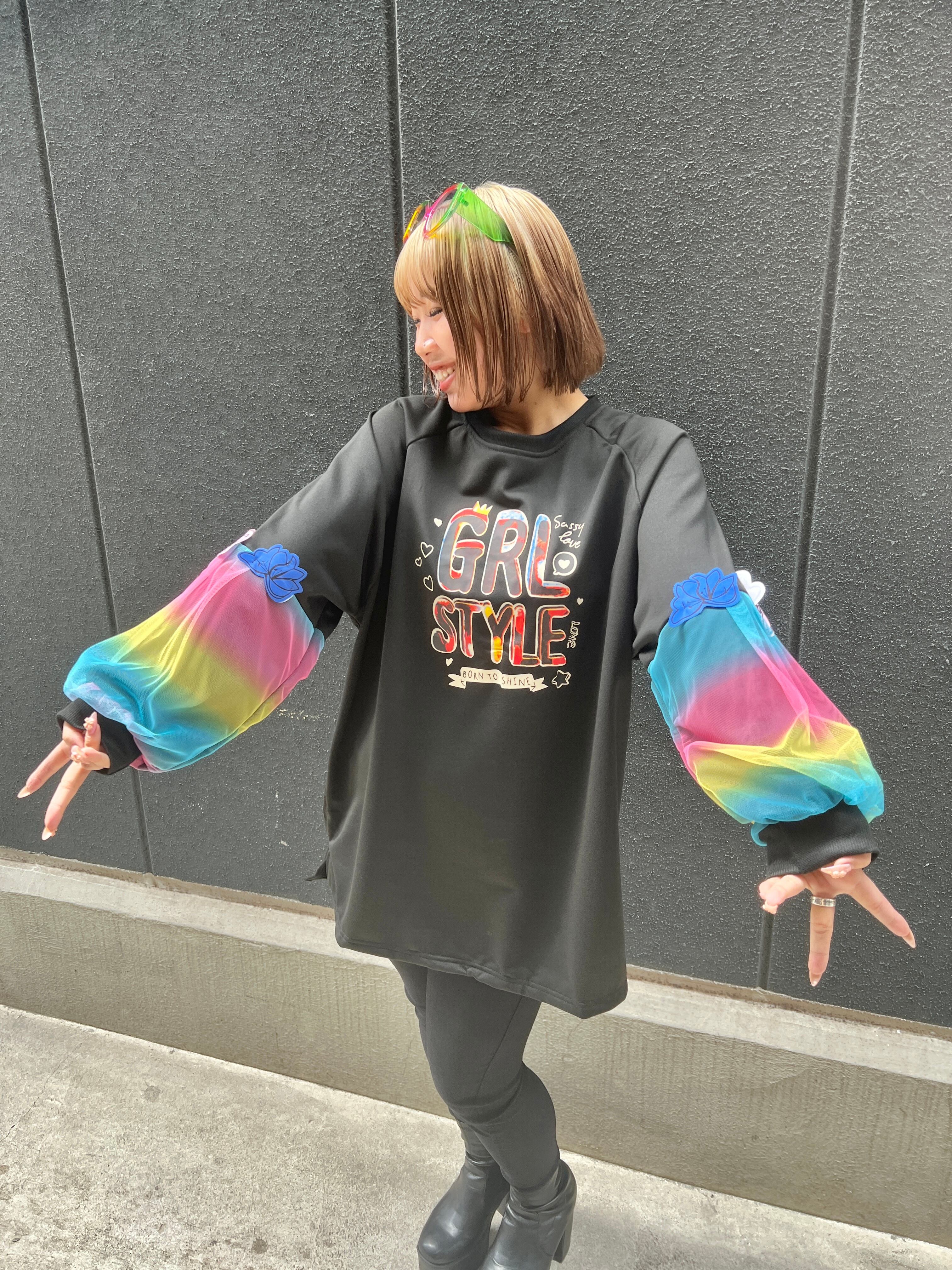 colorful tulle sleeve design one-piece ワンピース ワンピ チュール デザインスリーブ カラフル プリント