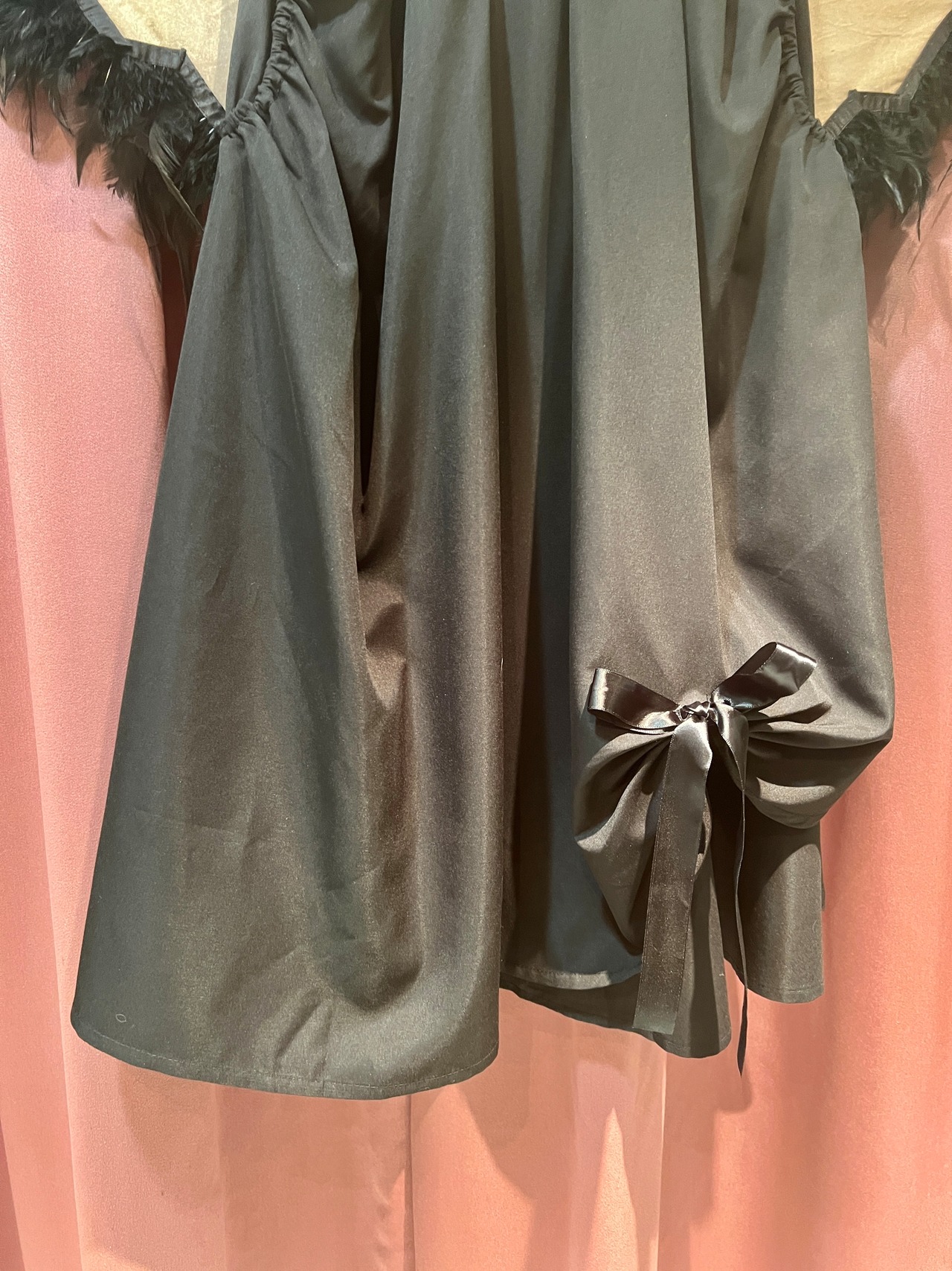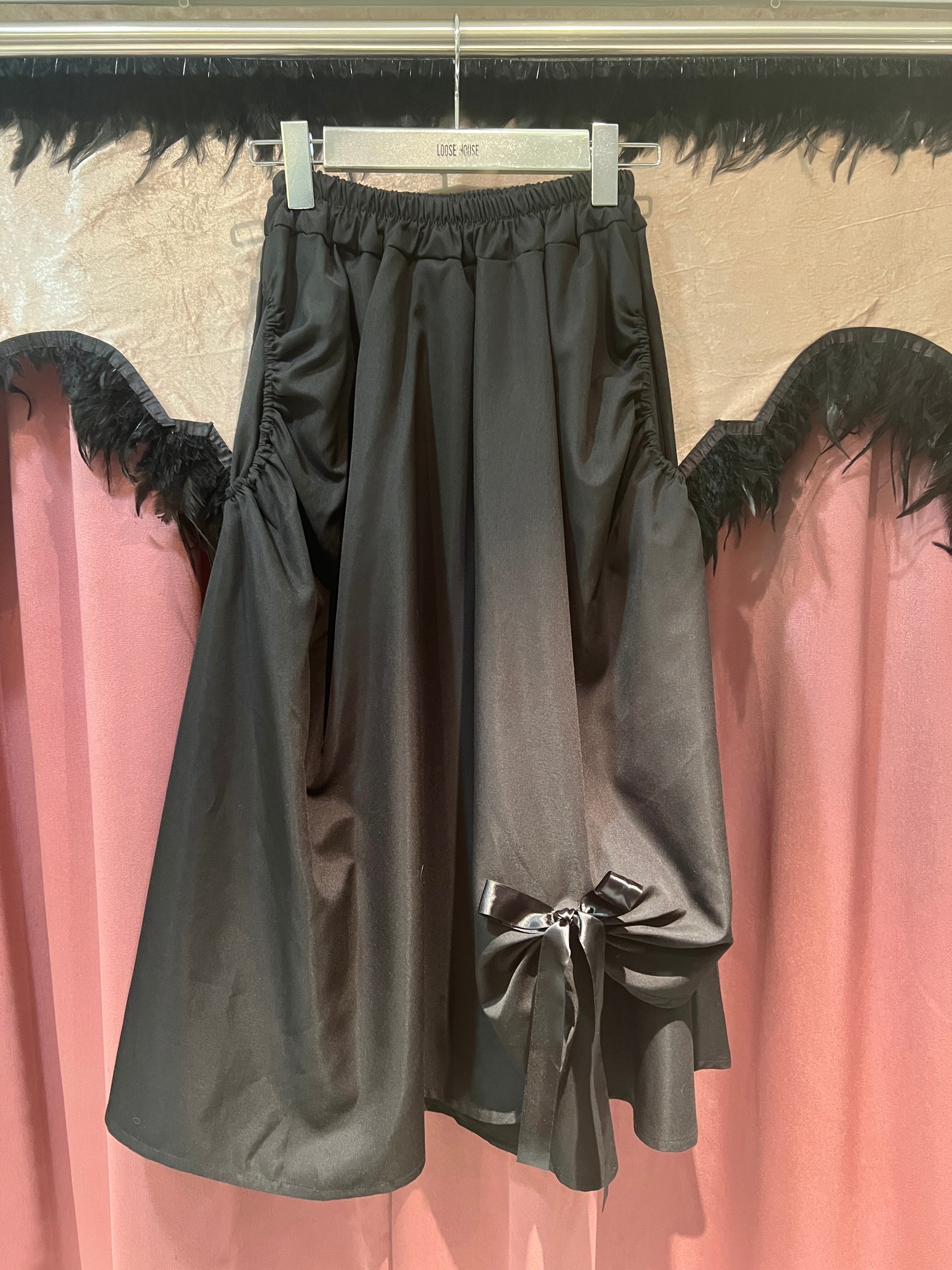 gather pocket × ribbon design skirt スカート ギャザー リボン ポケット ゴムウエスト ブラック 黒