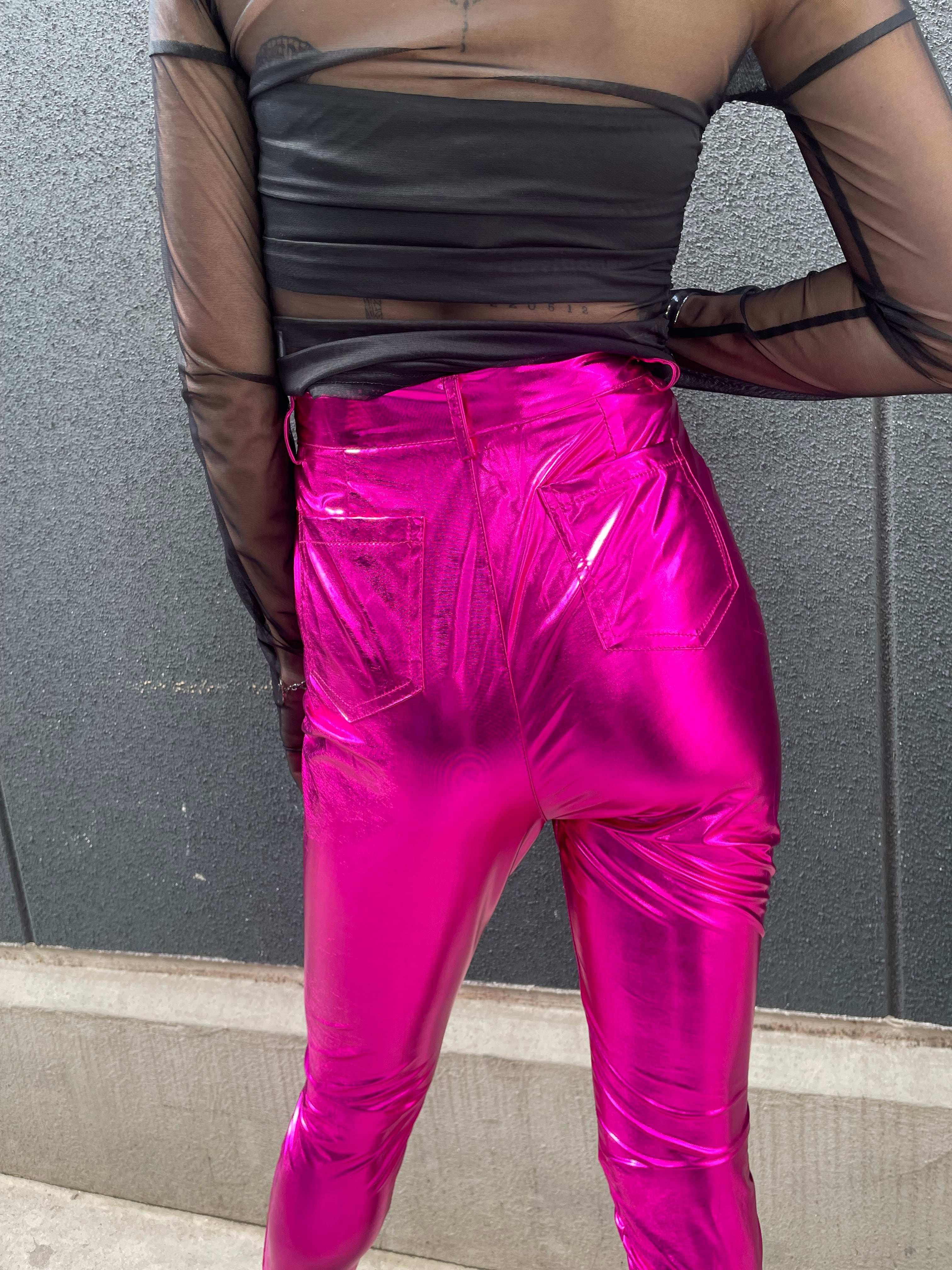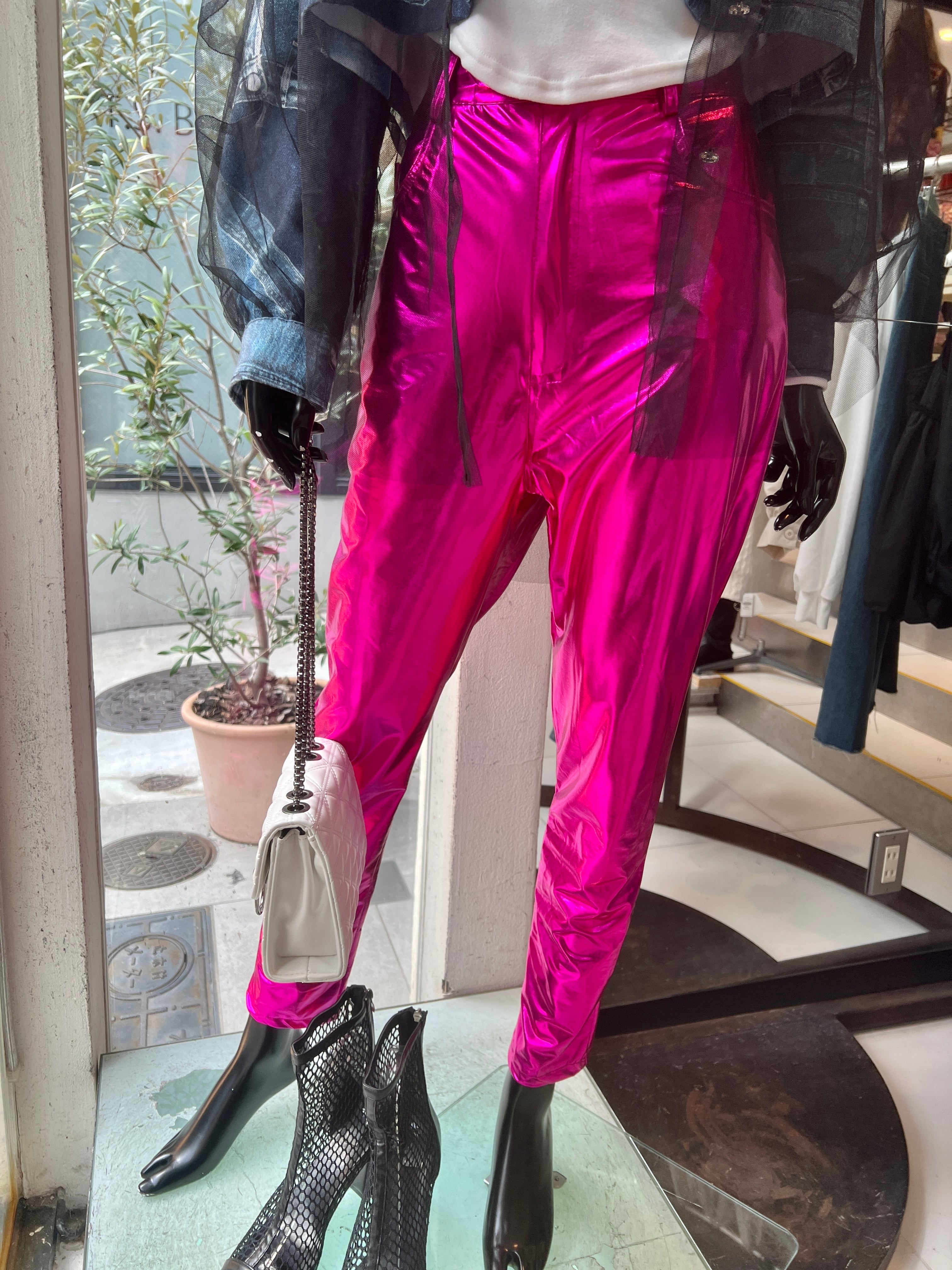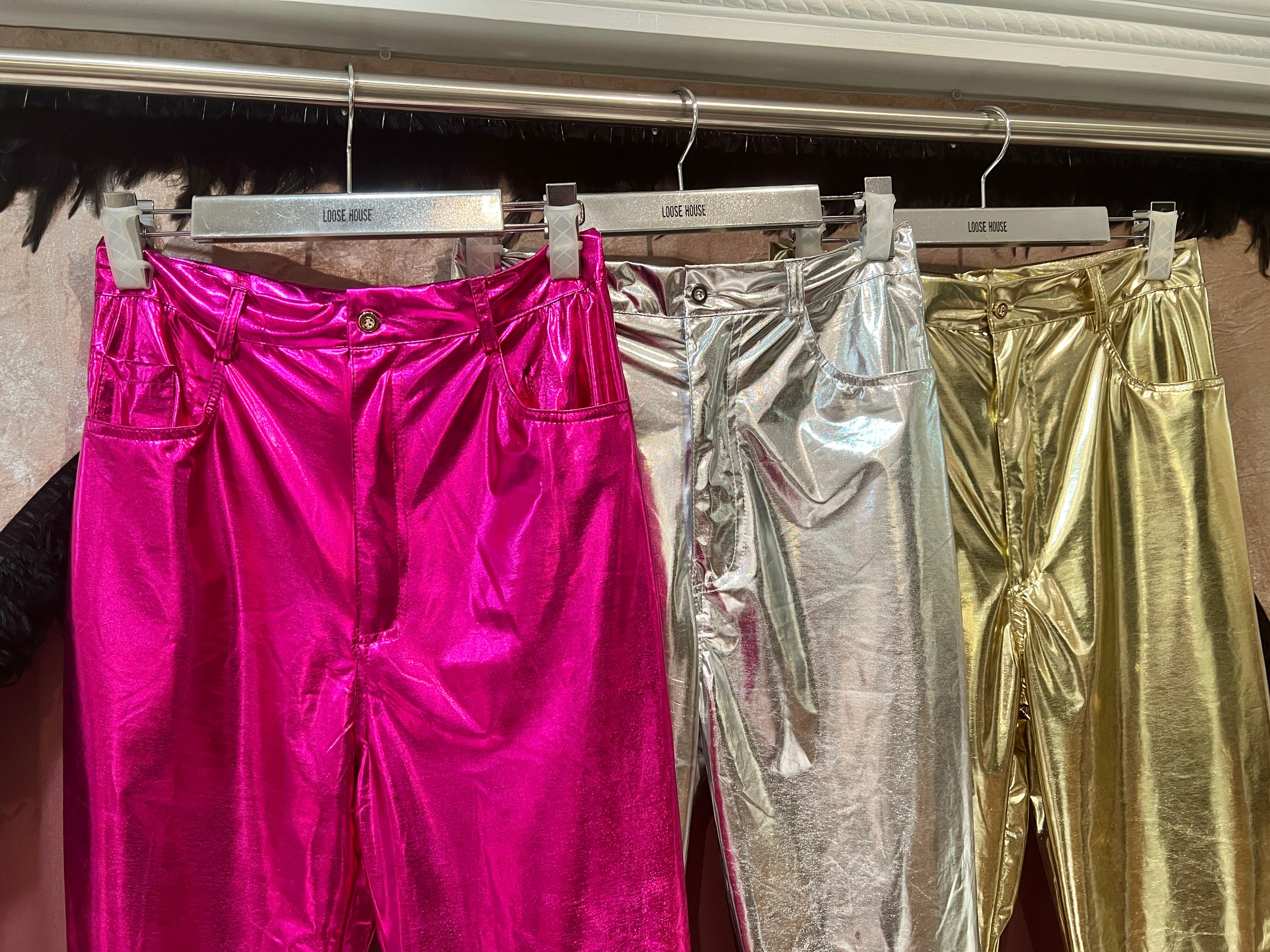 キラキラと輝くこのメタリックパンツは、あなたの着こなしに華やかさをプラスしてくれること間違いなし♡自信を持って輝きたい方におすすめのアイテムです♡