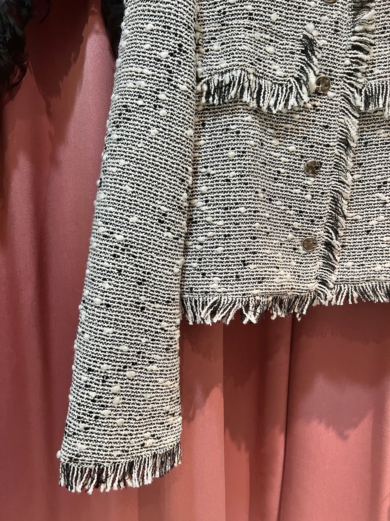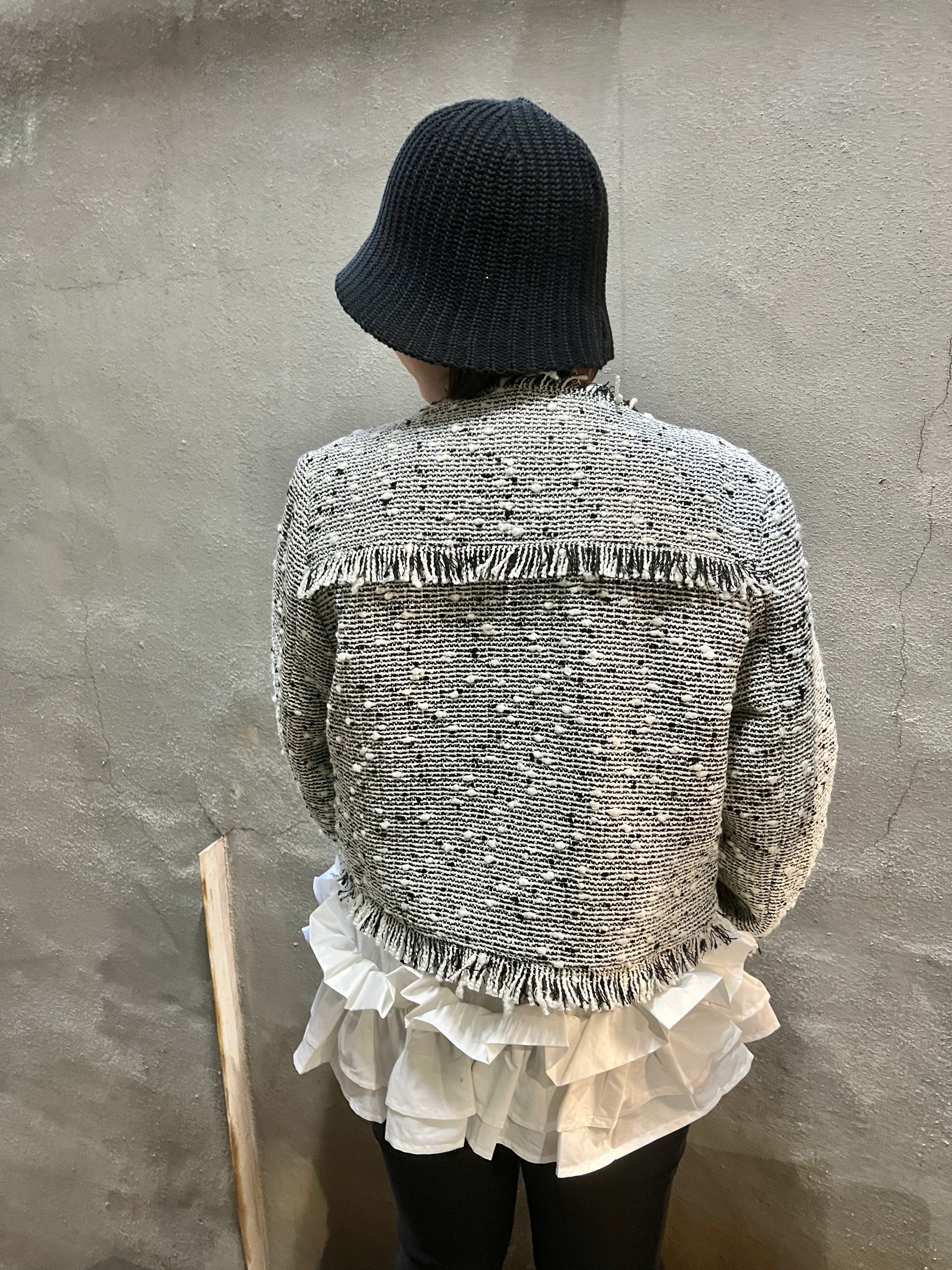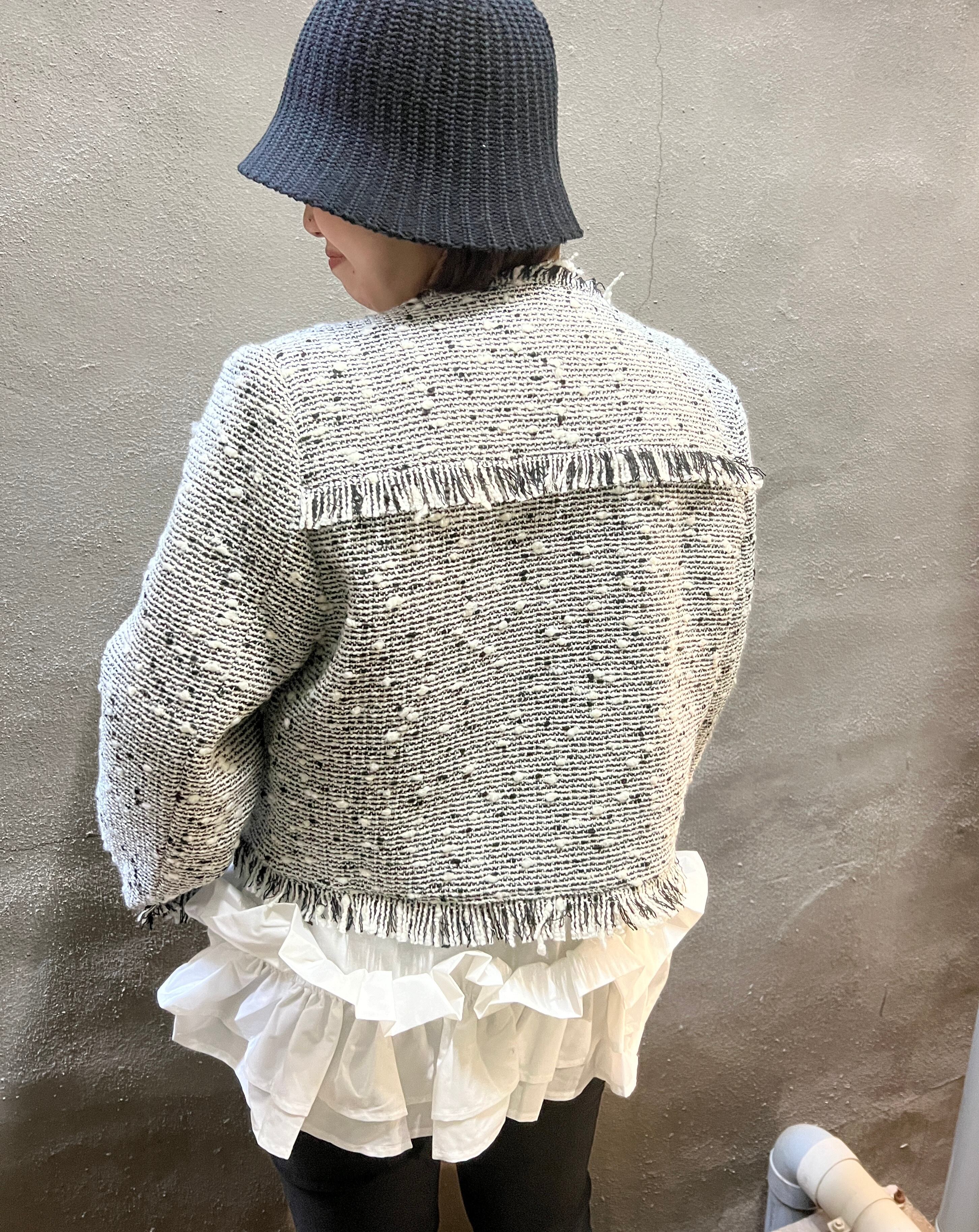 tweed fringe hem design jacket ジャケット ツィード フリンジ きれいめ
