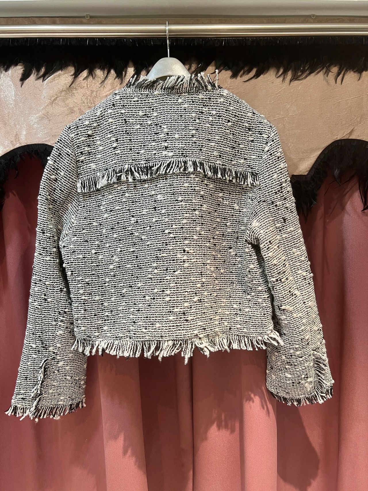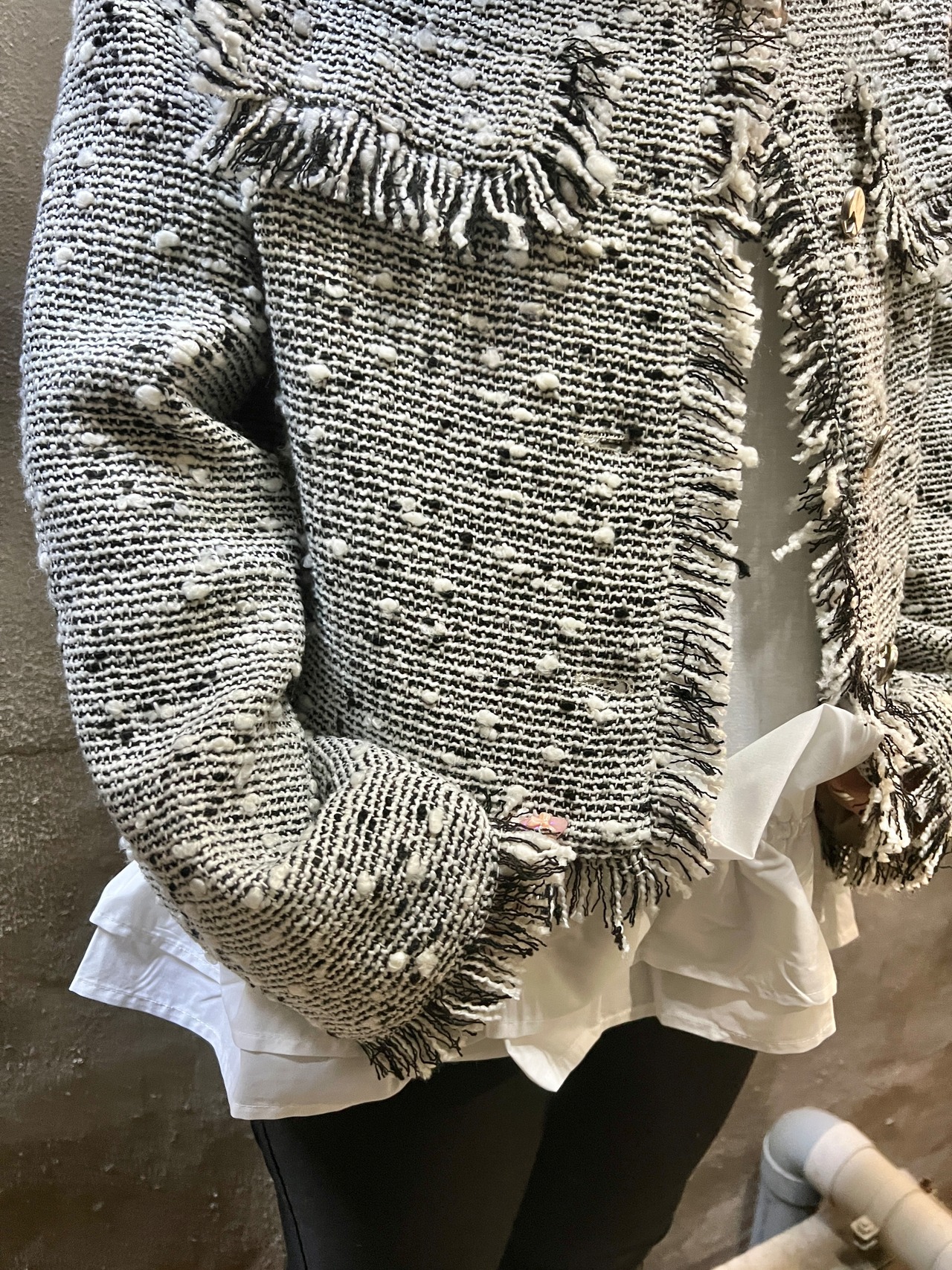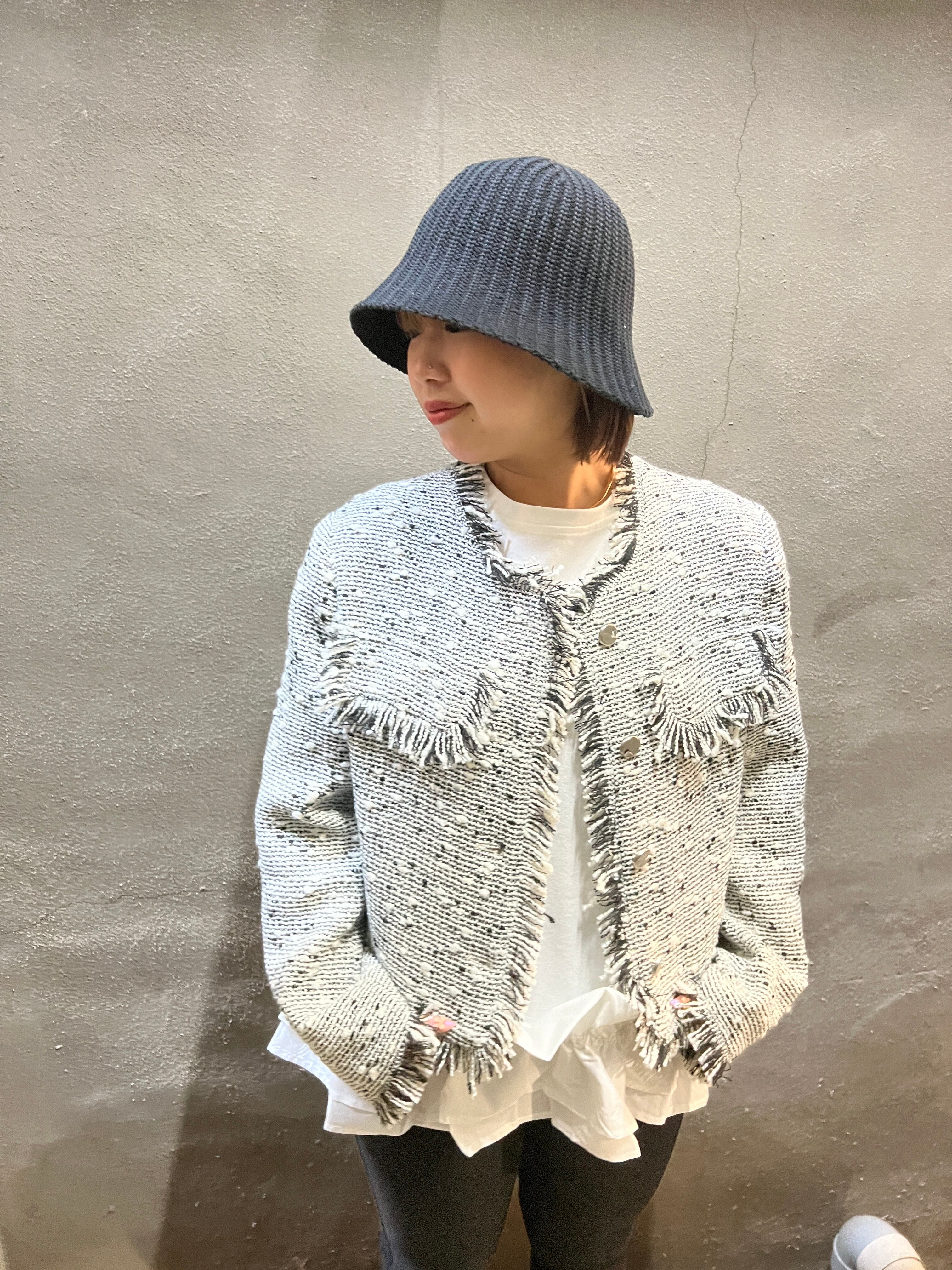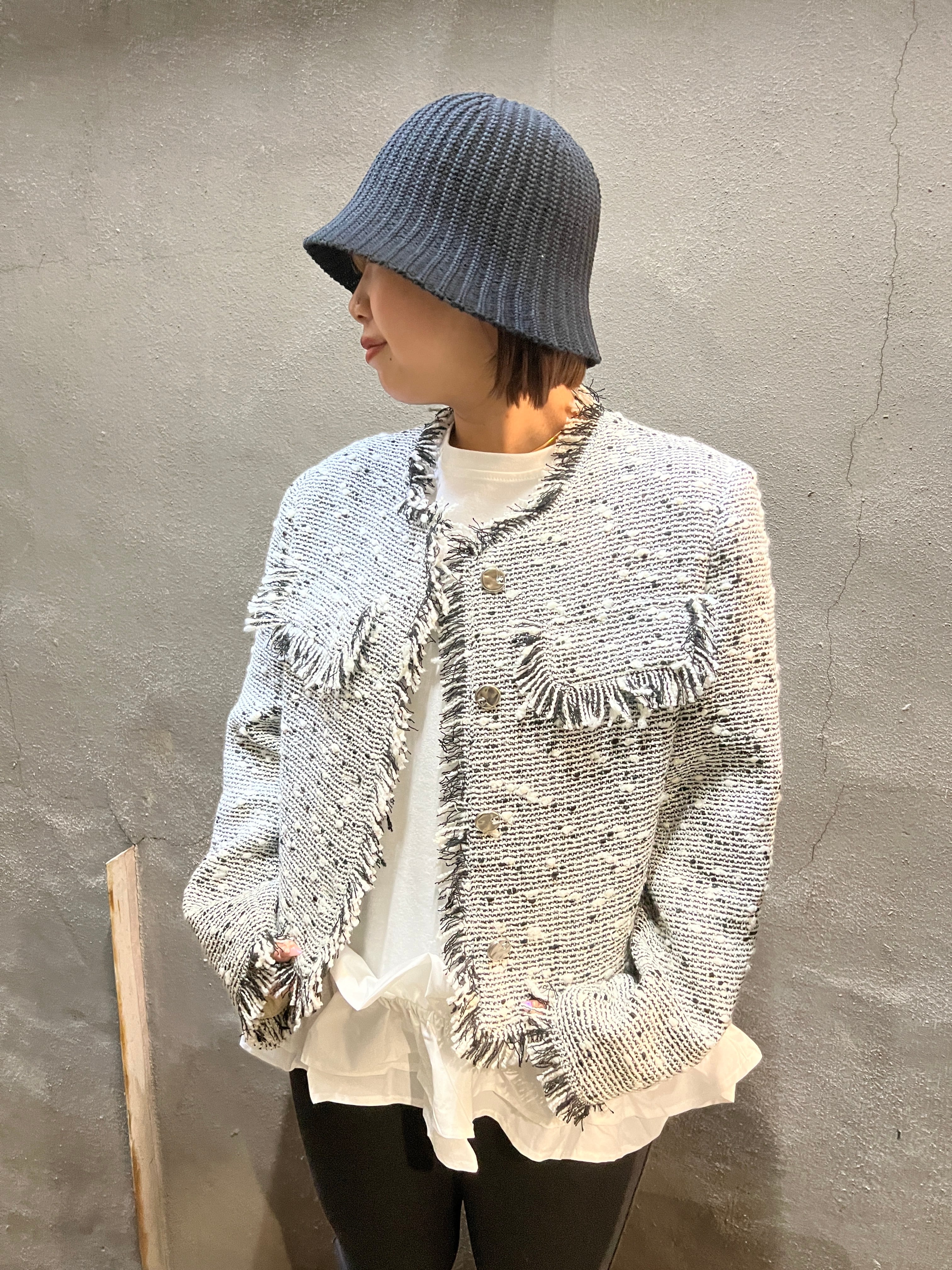 tweed fringe hem design jacket ジャケット ツィード フリンジ きれいめ
