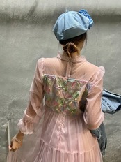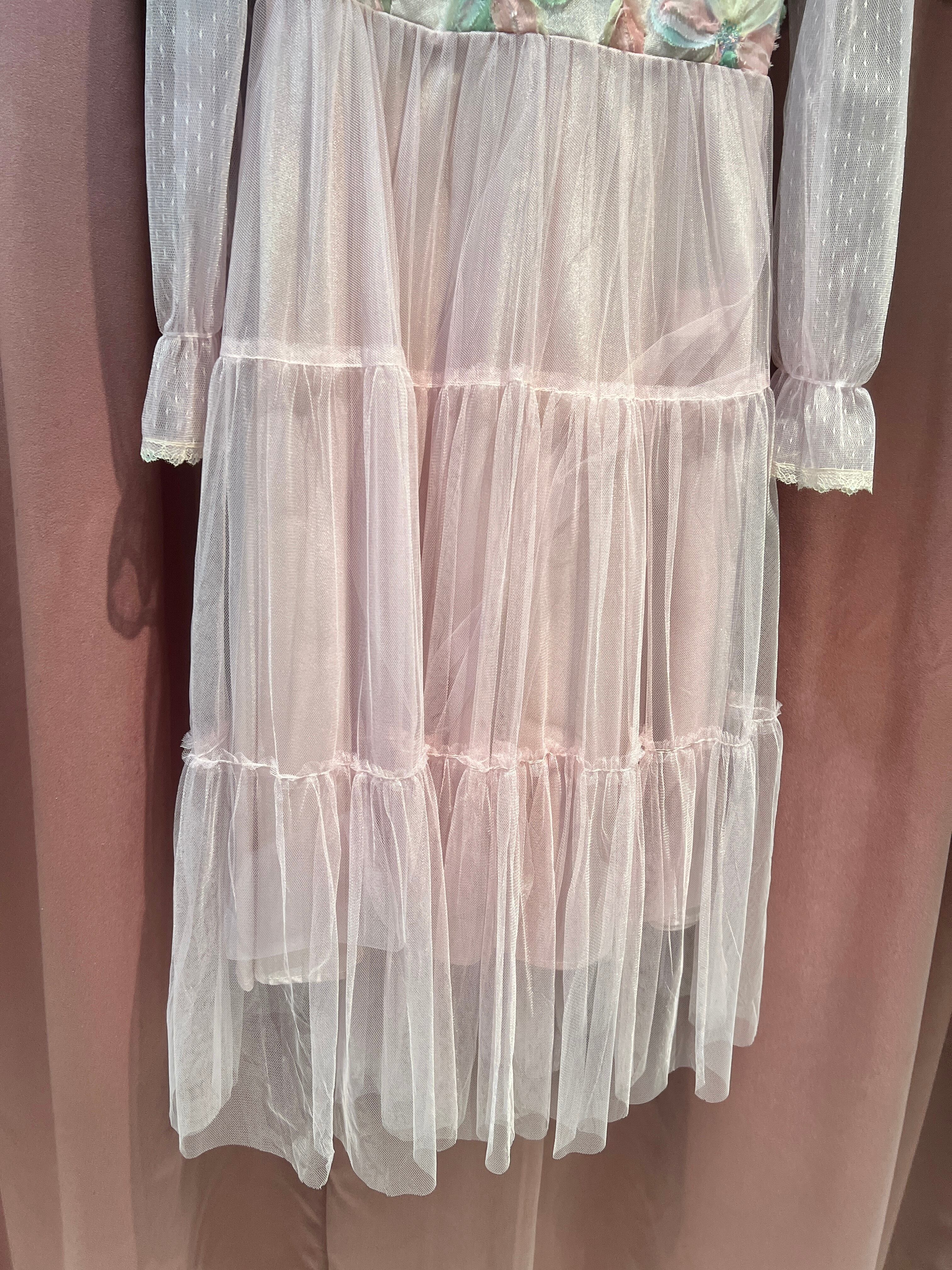 tulle flower embroidery design one-piece ワンピース ワンピ チュール 花 刺繍 ピンク 春