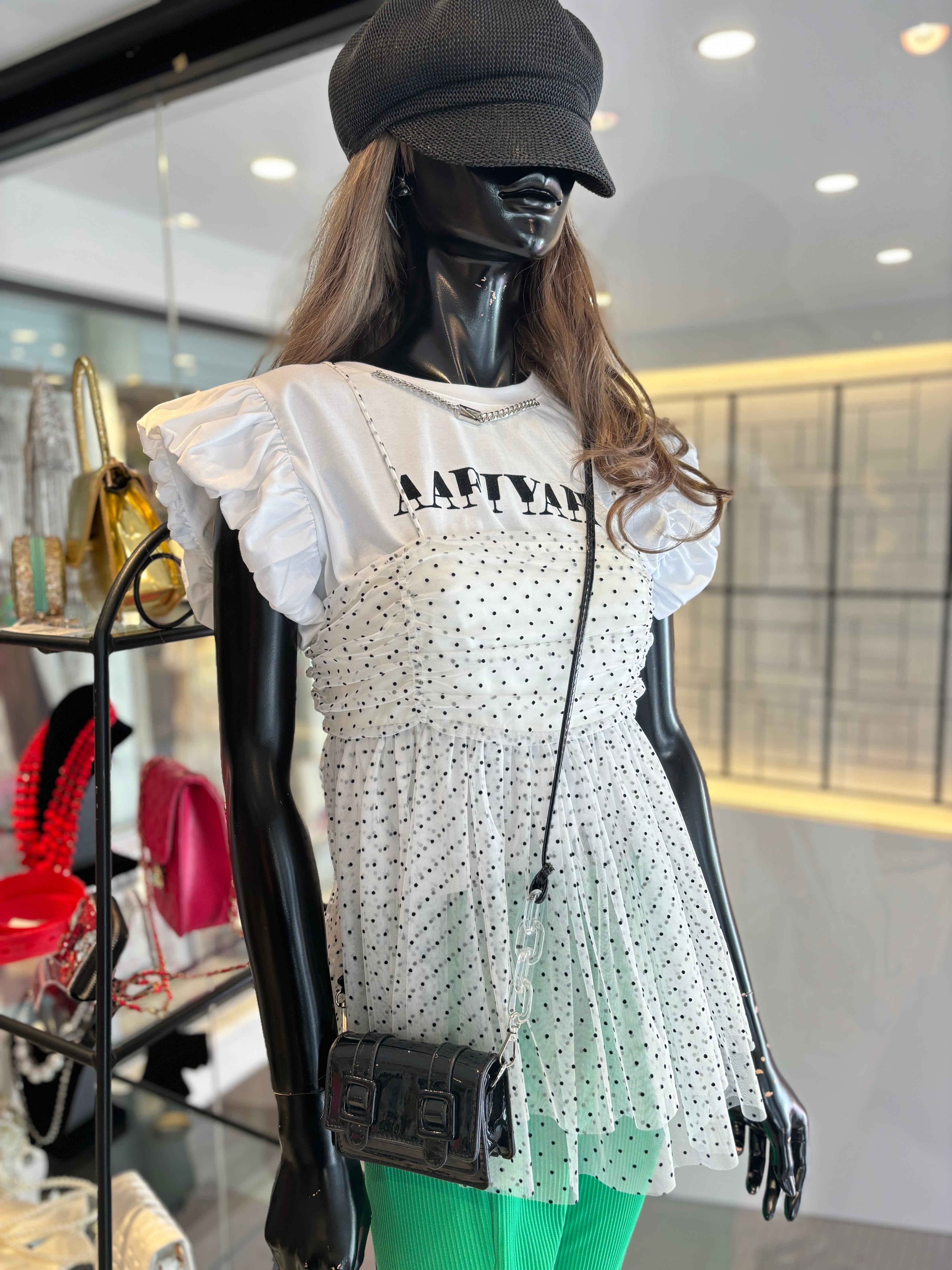 ドット柄の可愛らしいチュールキャミソールが登場しました。
