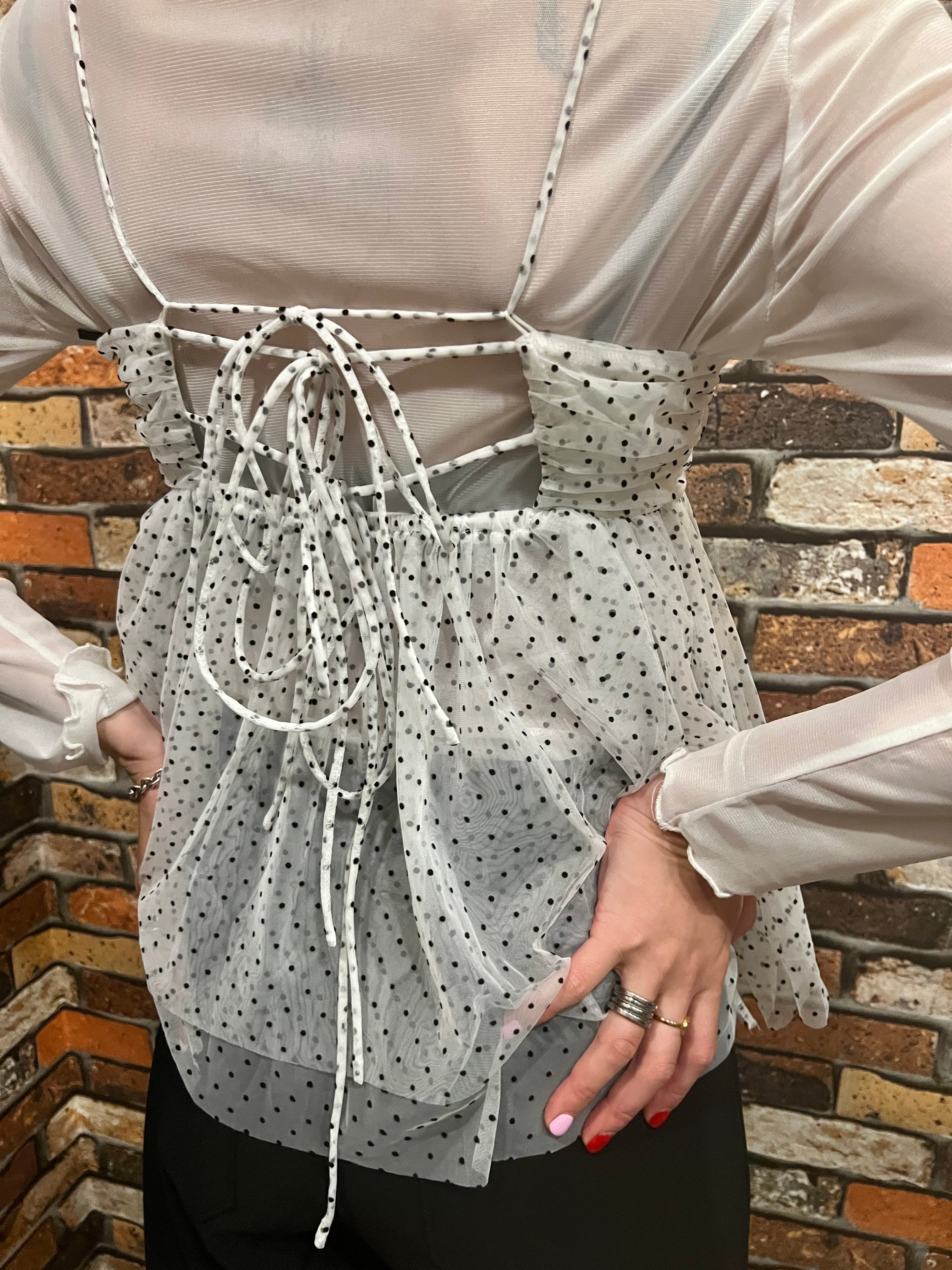 mini dot tulle camisole キャミソール ドット チュール バックデザイン 重ね着 レイヤード