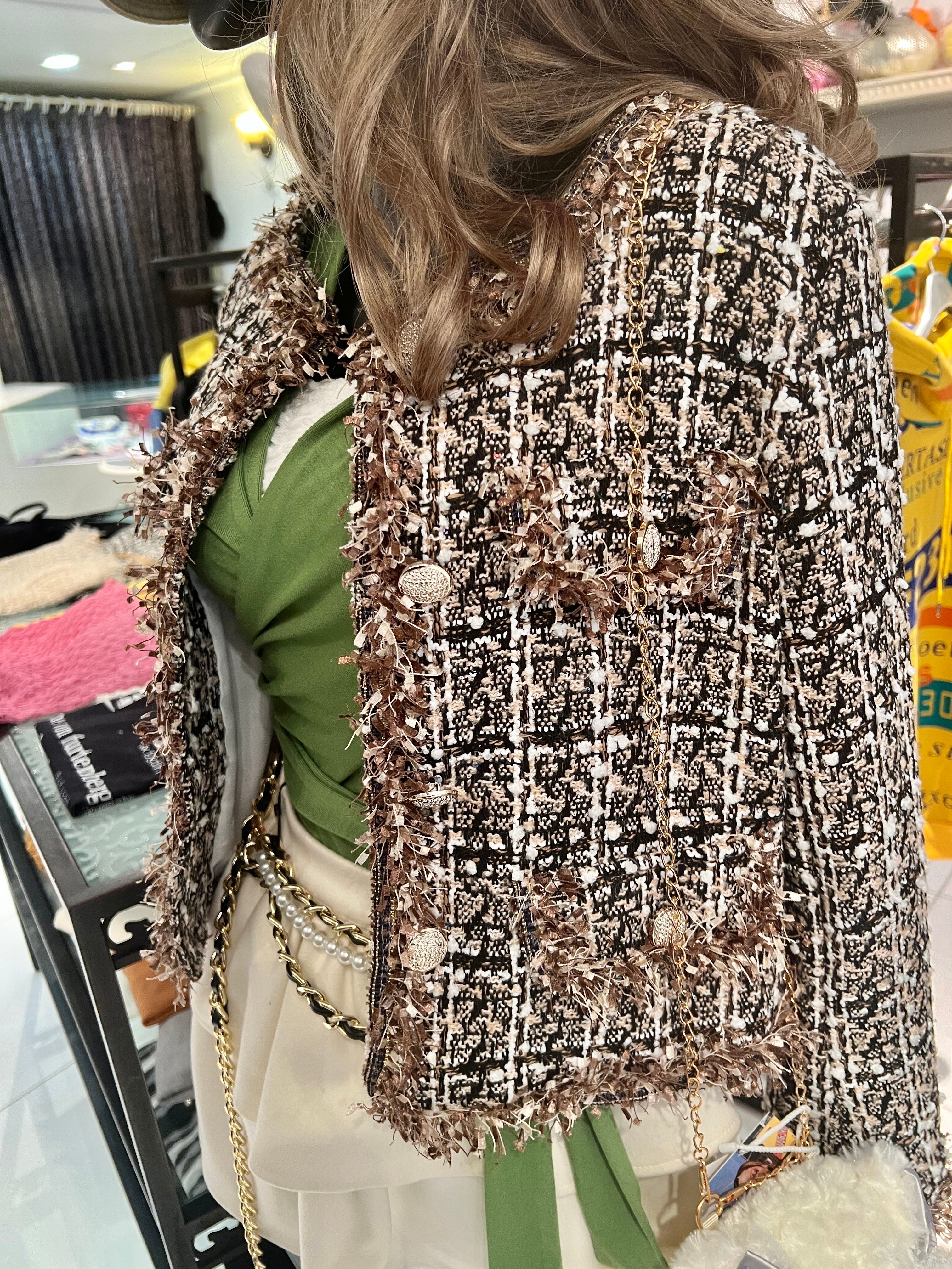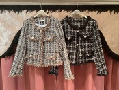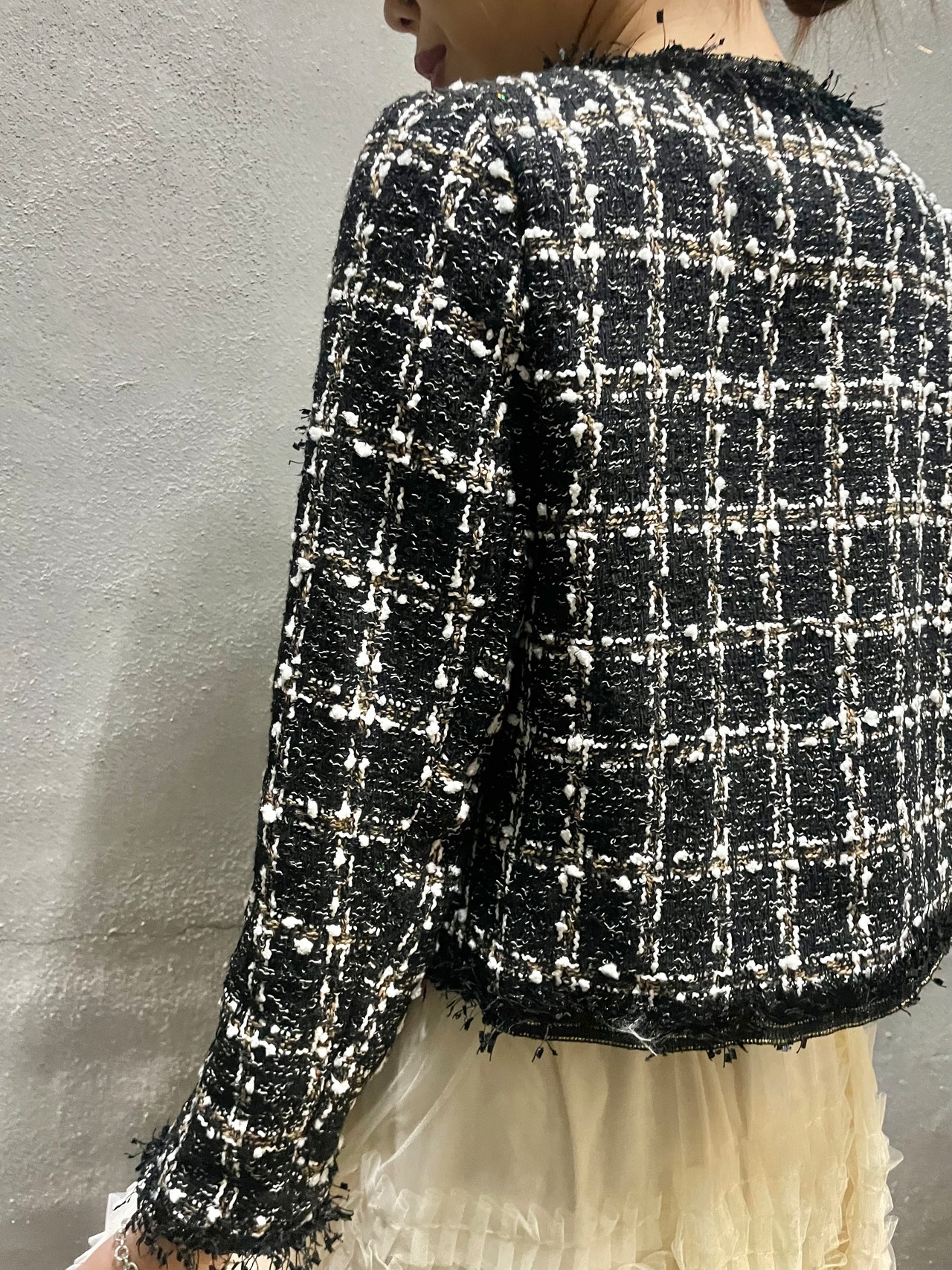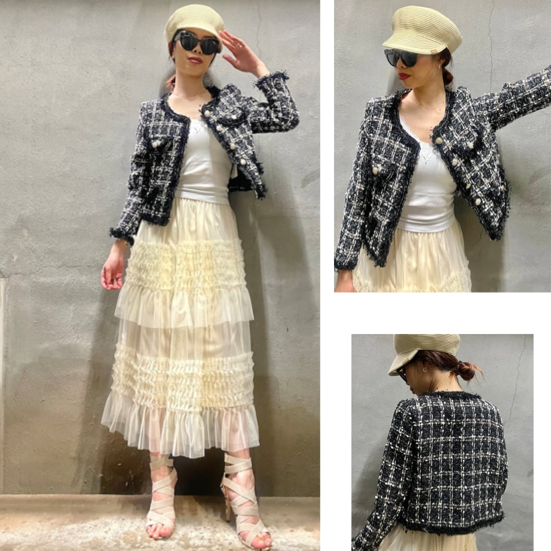 tweed × gold button C-neck design jacket ジャケット ツィード Cネック 金ボタン きれいめ 春アウター