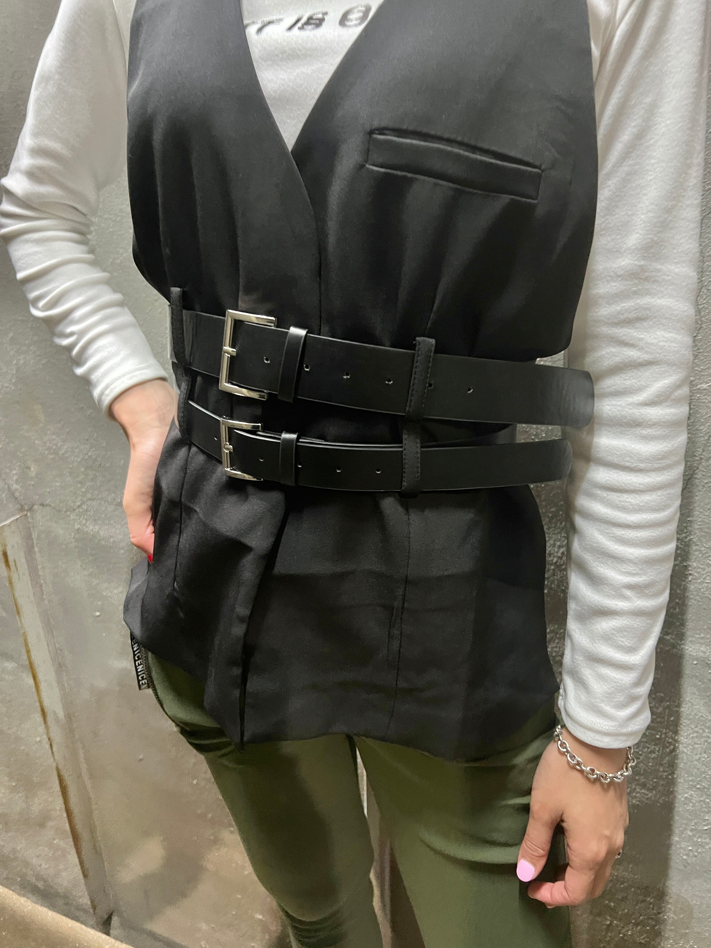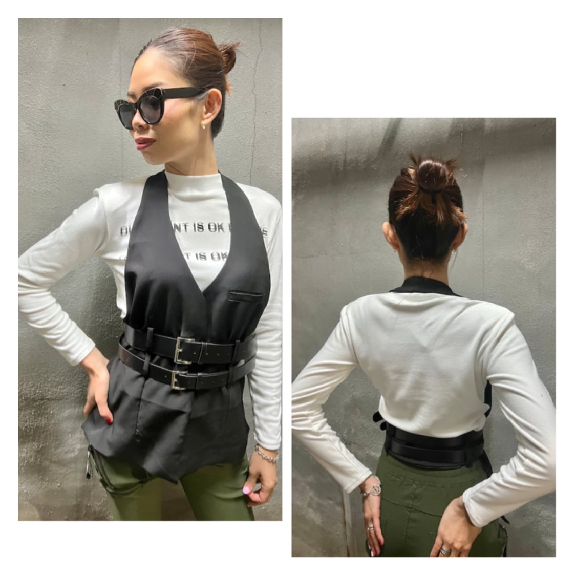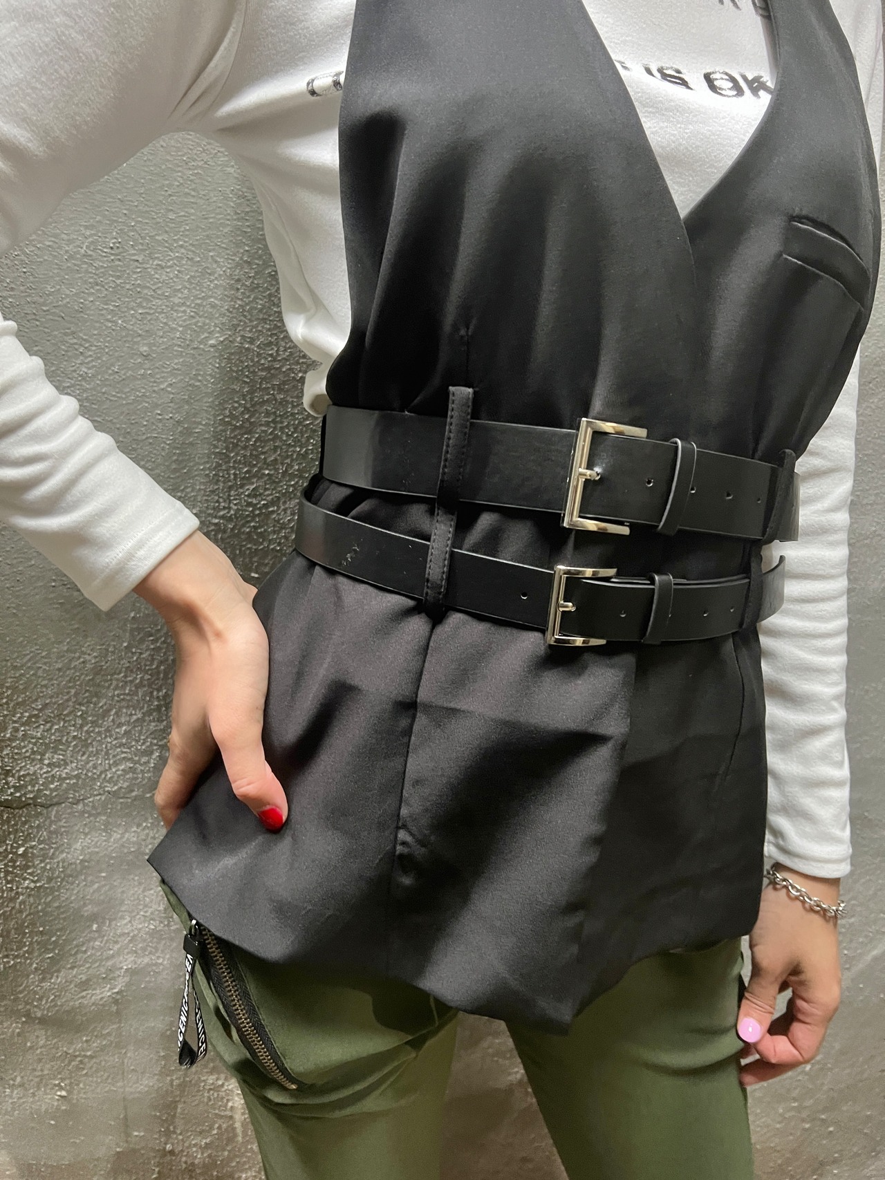 【再入荷】2belt holder neck design vest ベスト デザインベスト ホルターネック ベルト ブラック 黒