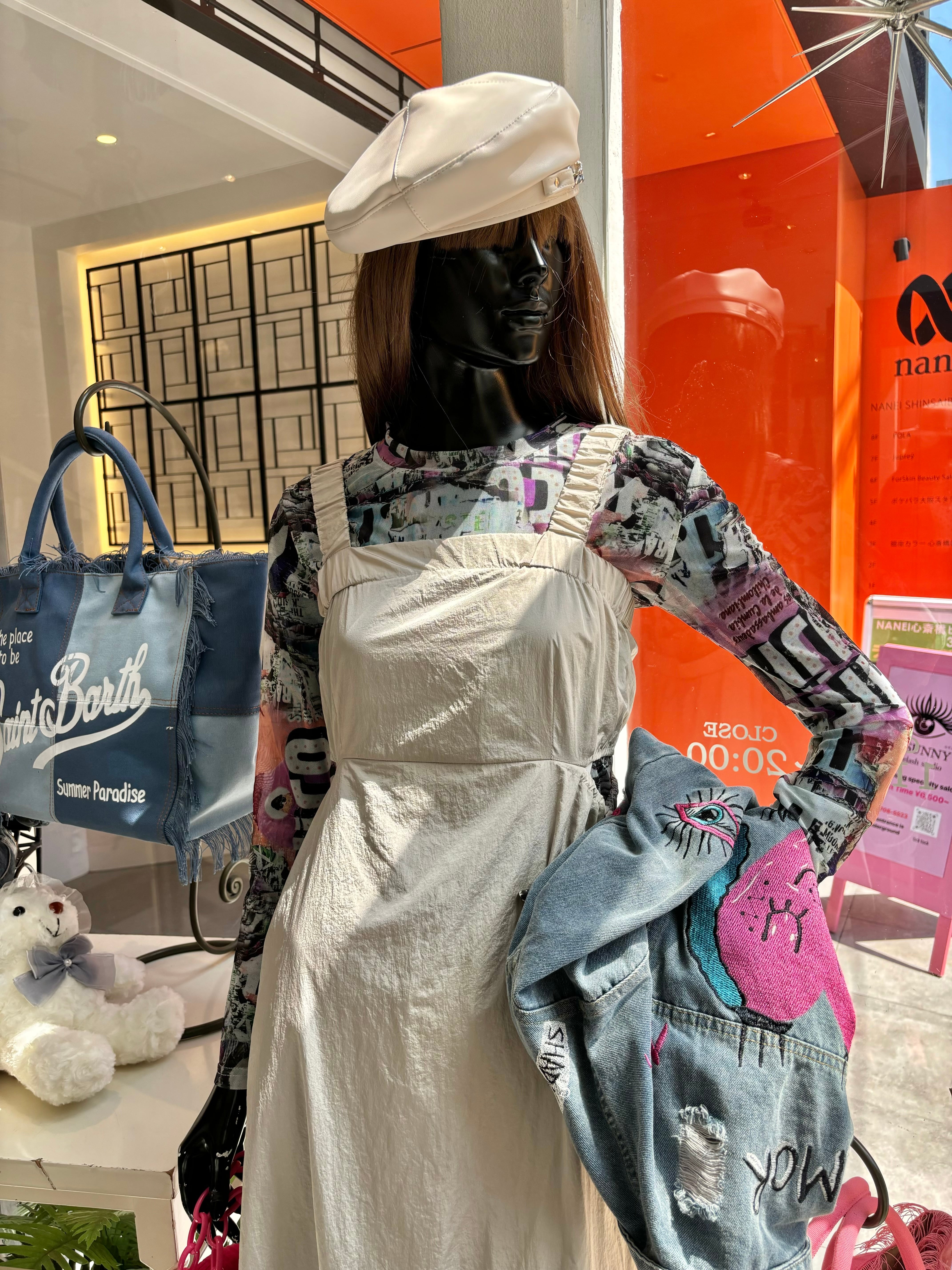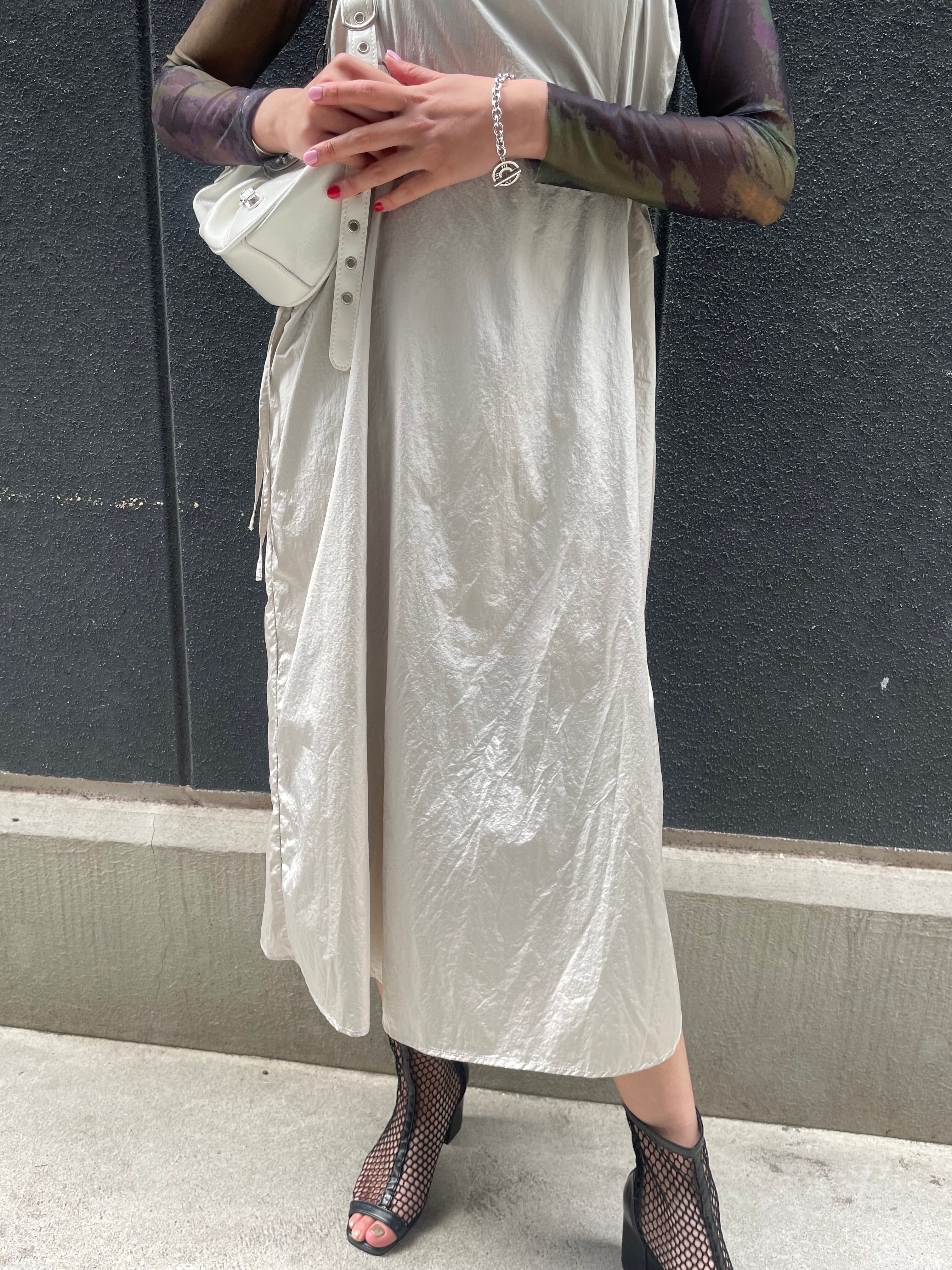 side open nylon design cami one-piece ワンピース ワンピ ナイロン サイドオープン ロング 重ね着