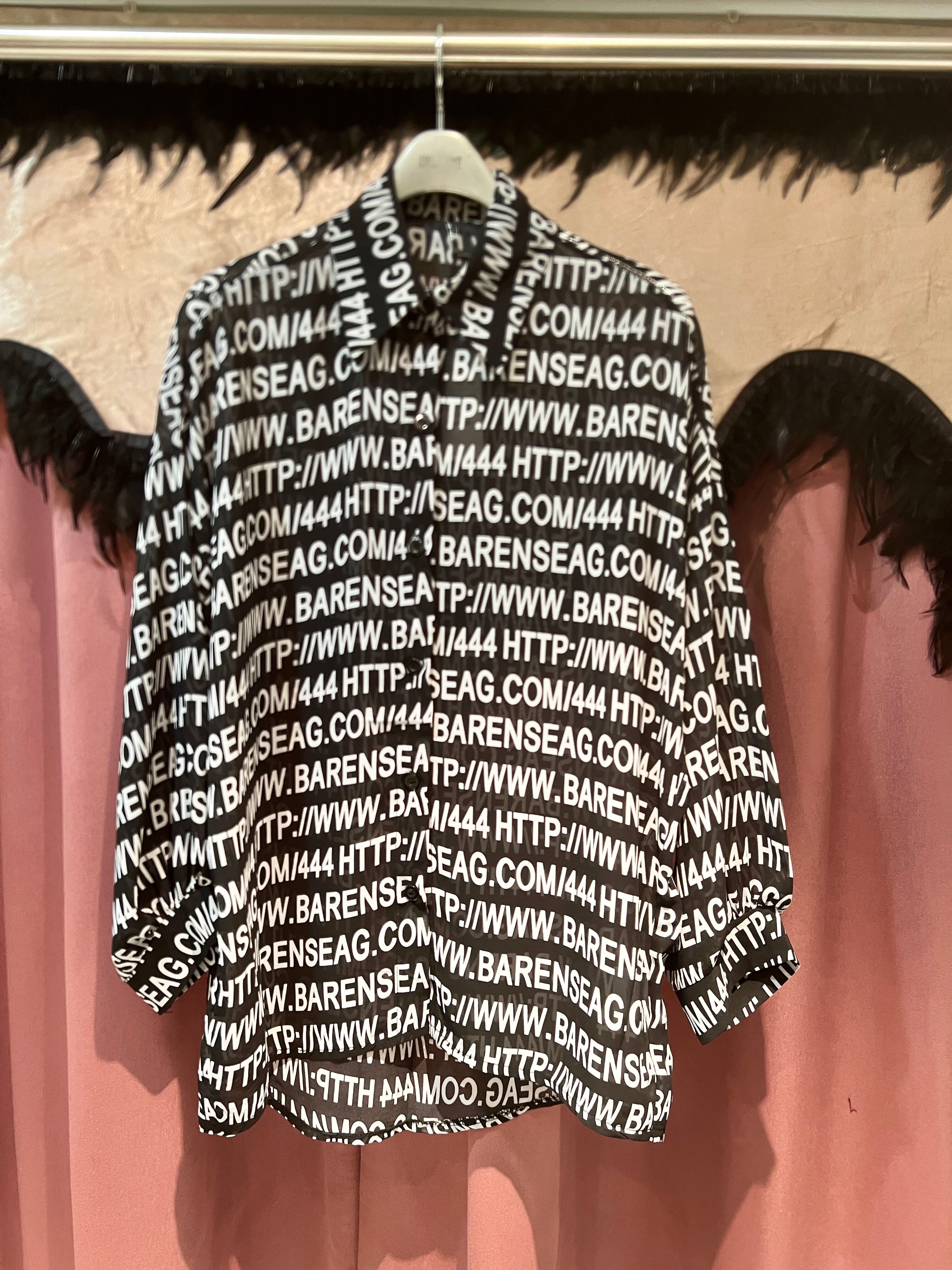 bi-color text print chiffon shirt シャツ シフォン シースルー テキストプリント 白黒 バイカラー