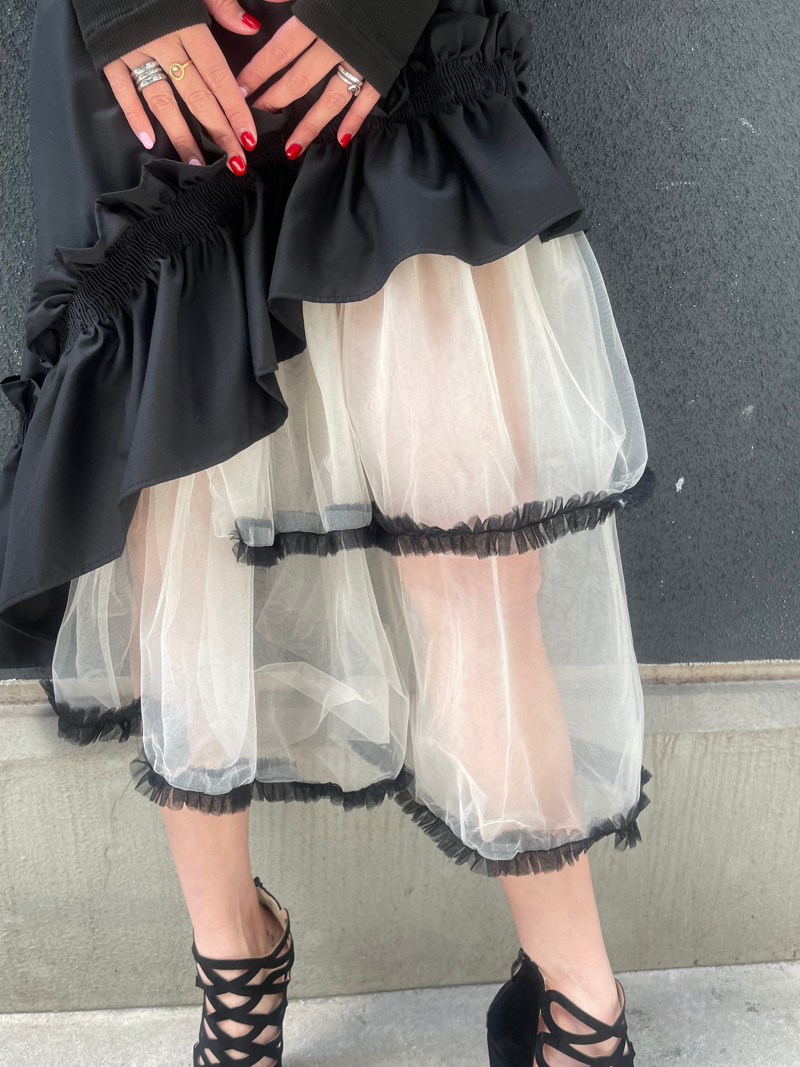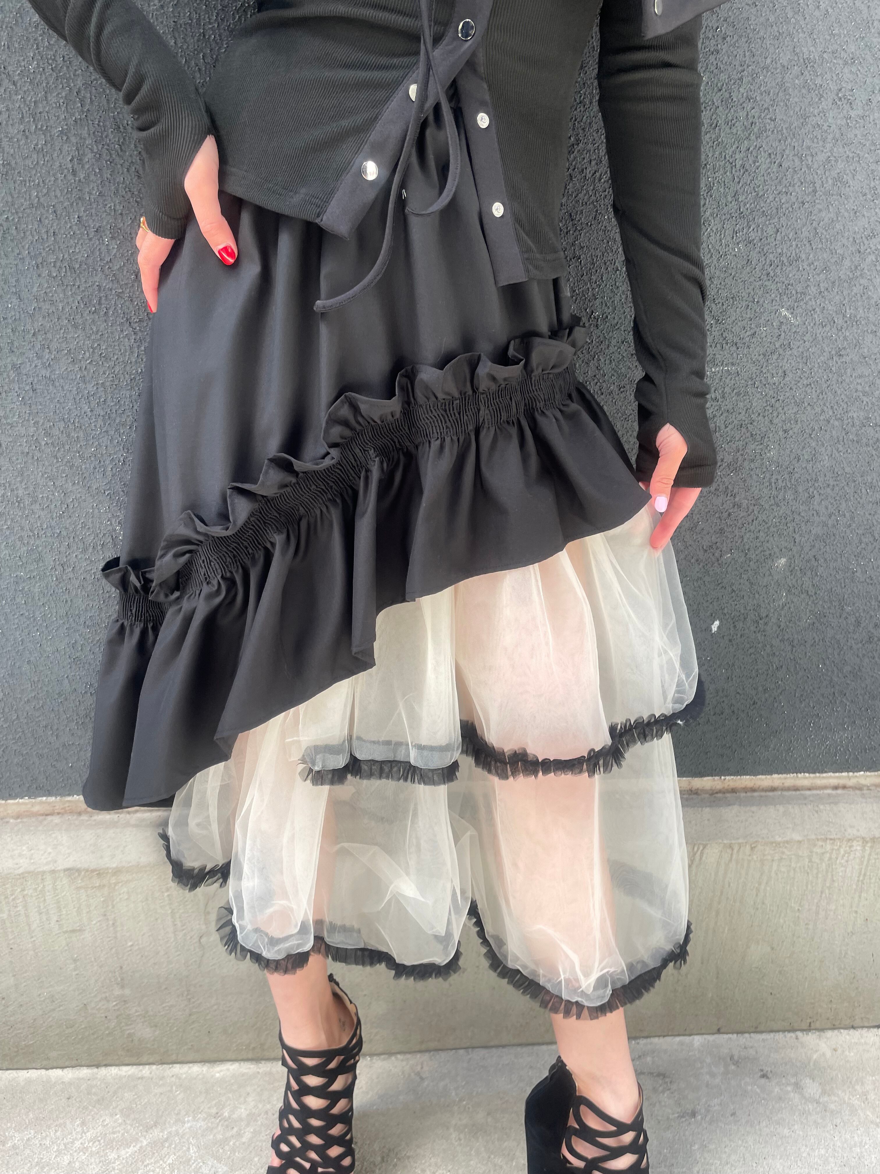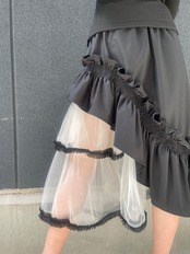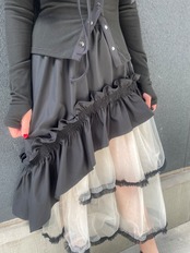 asymmetry frill × bi-color design skirt スカート フリル 切替デザイン アシンメトリー ゴムウエスト