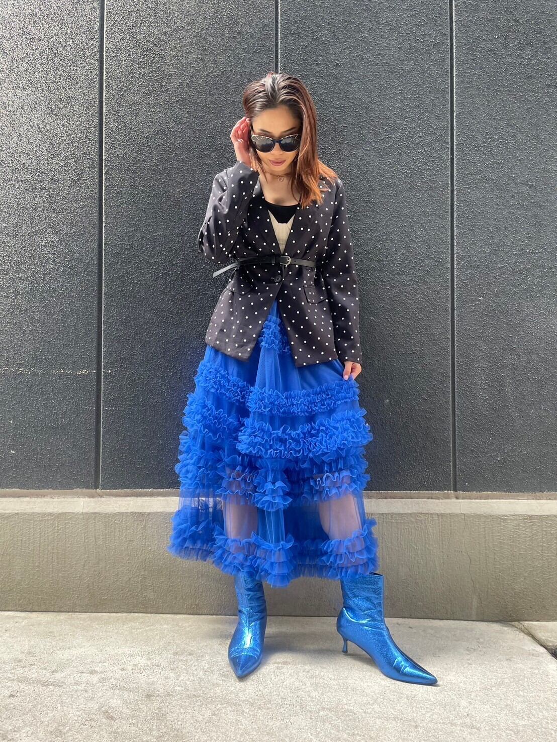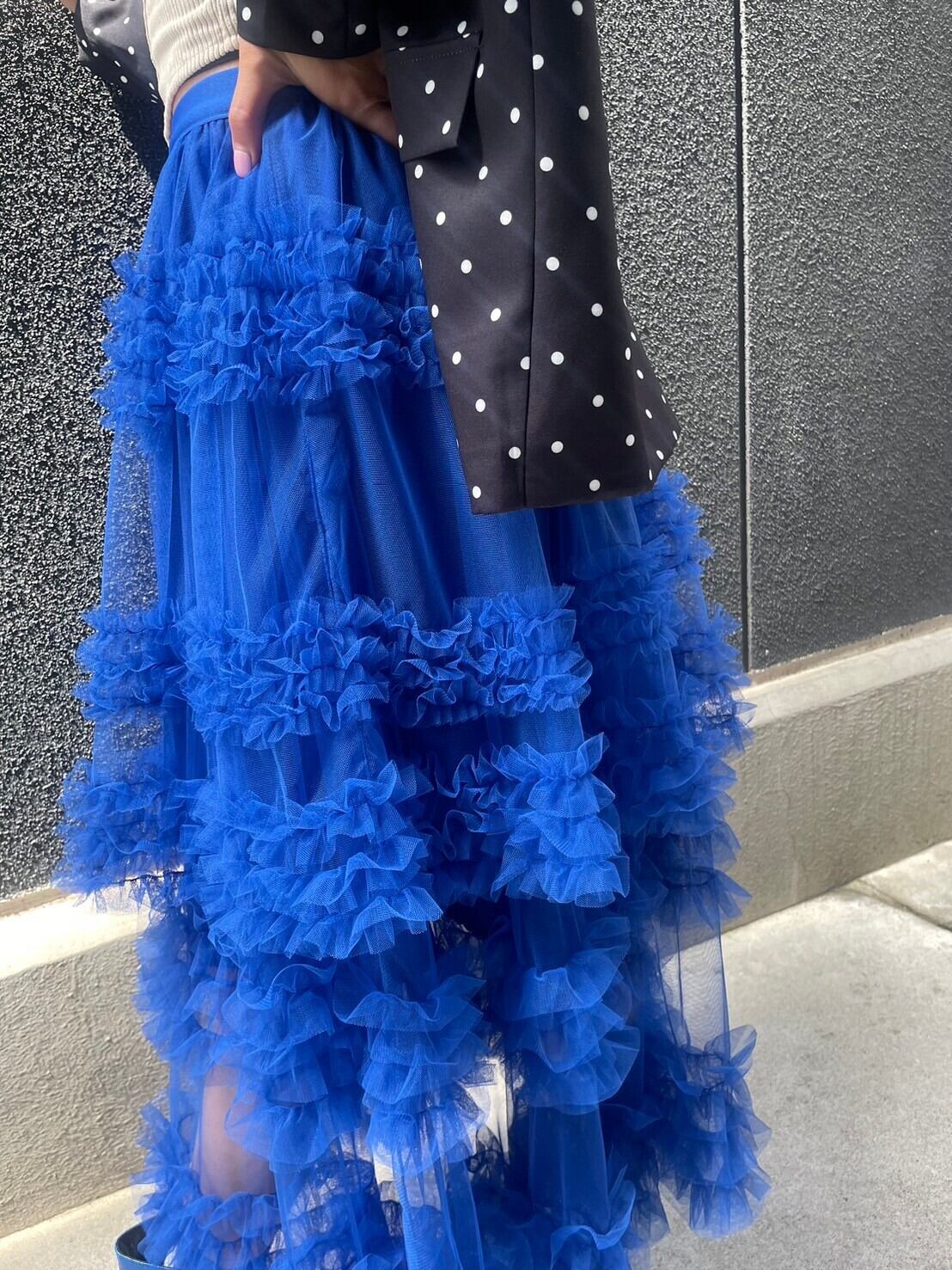 フェミニンで可愛らしいスタイルに仕上げる、チュールフリルスカート♡
